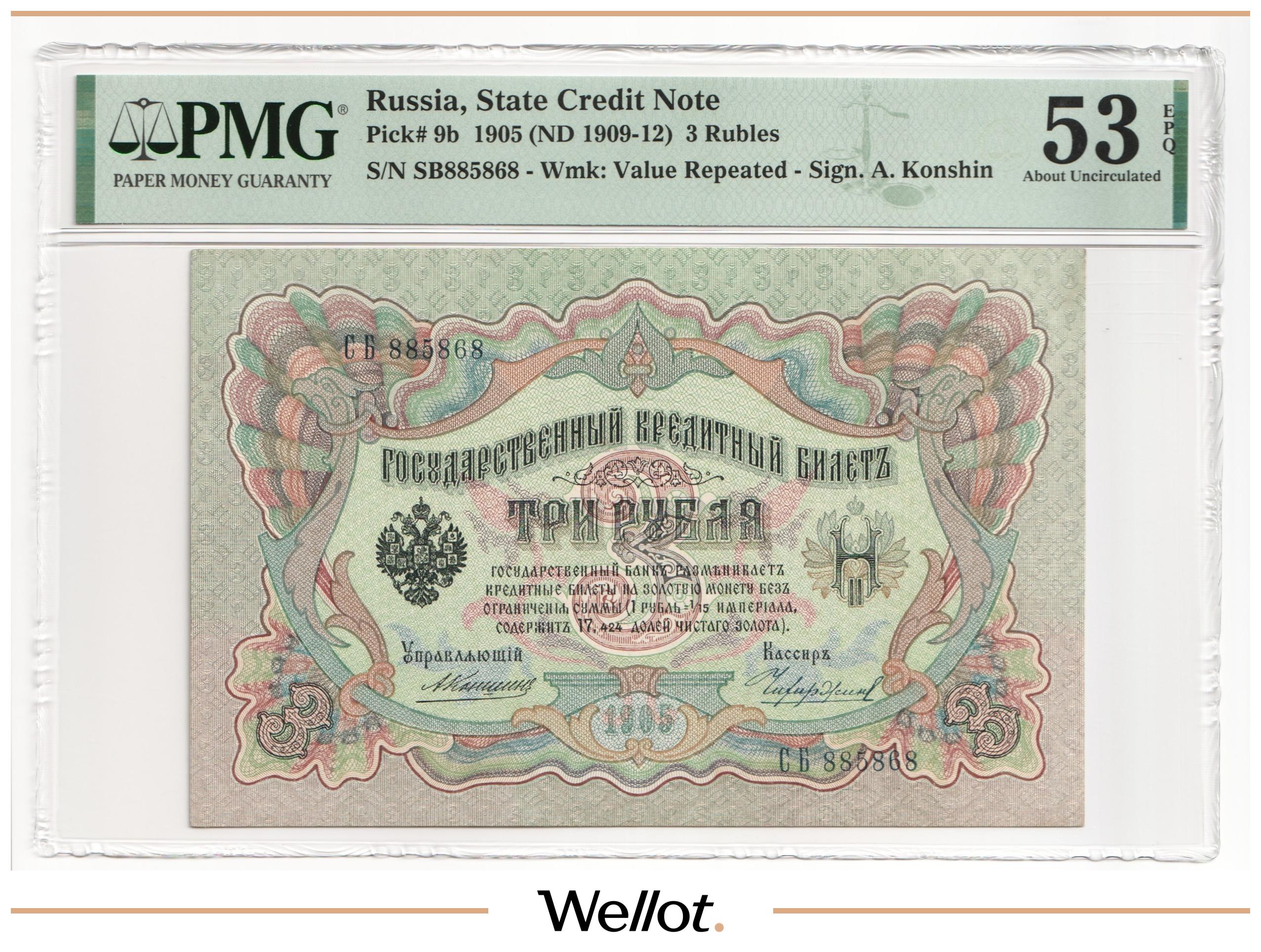 3 Рубля 1905 Российская Империя PMG 53 EPQ AUNC
