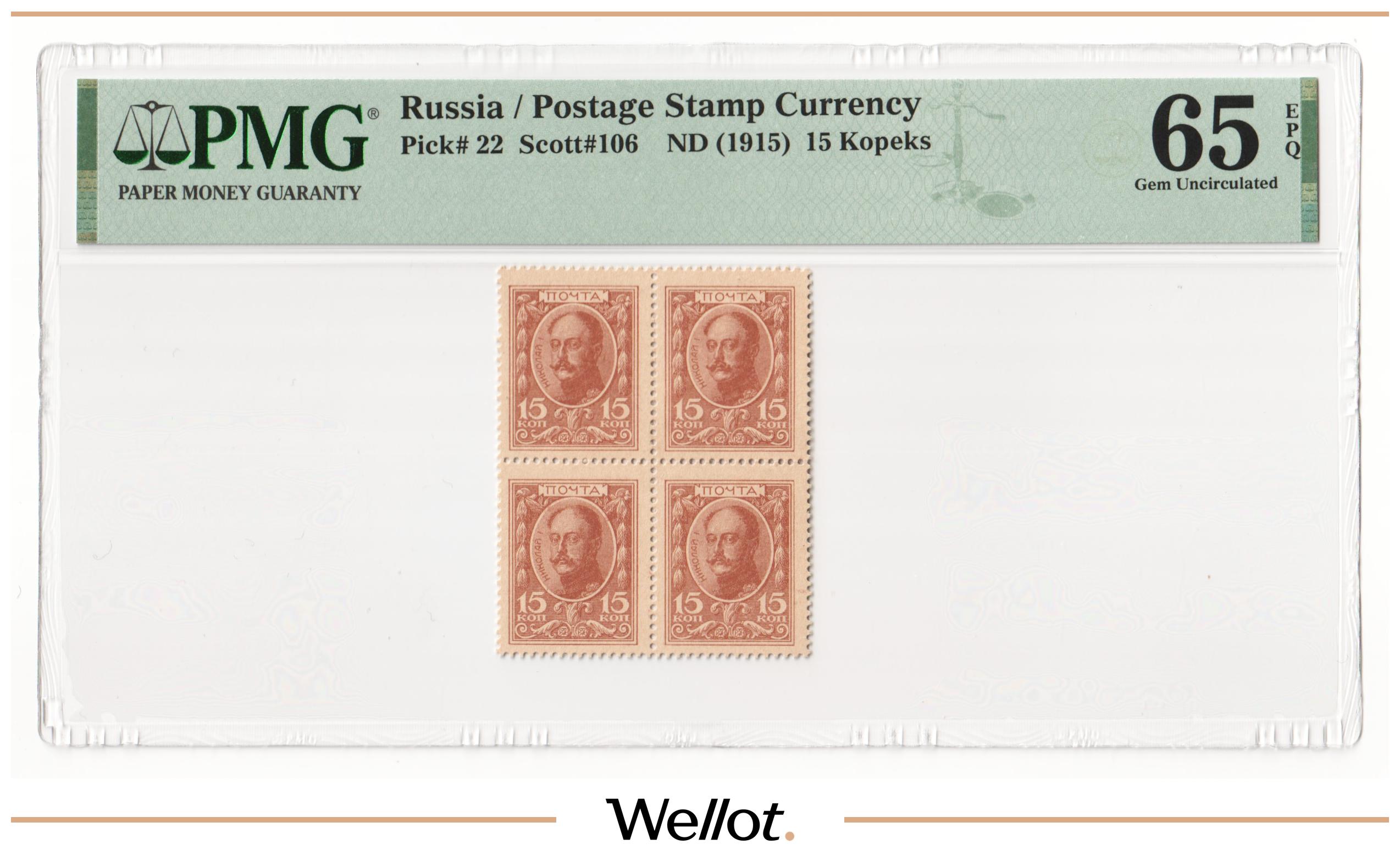 15 Копеек ND (1915) Российская Империя Квартблок PMG 65 EPQ UNC