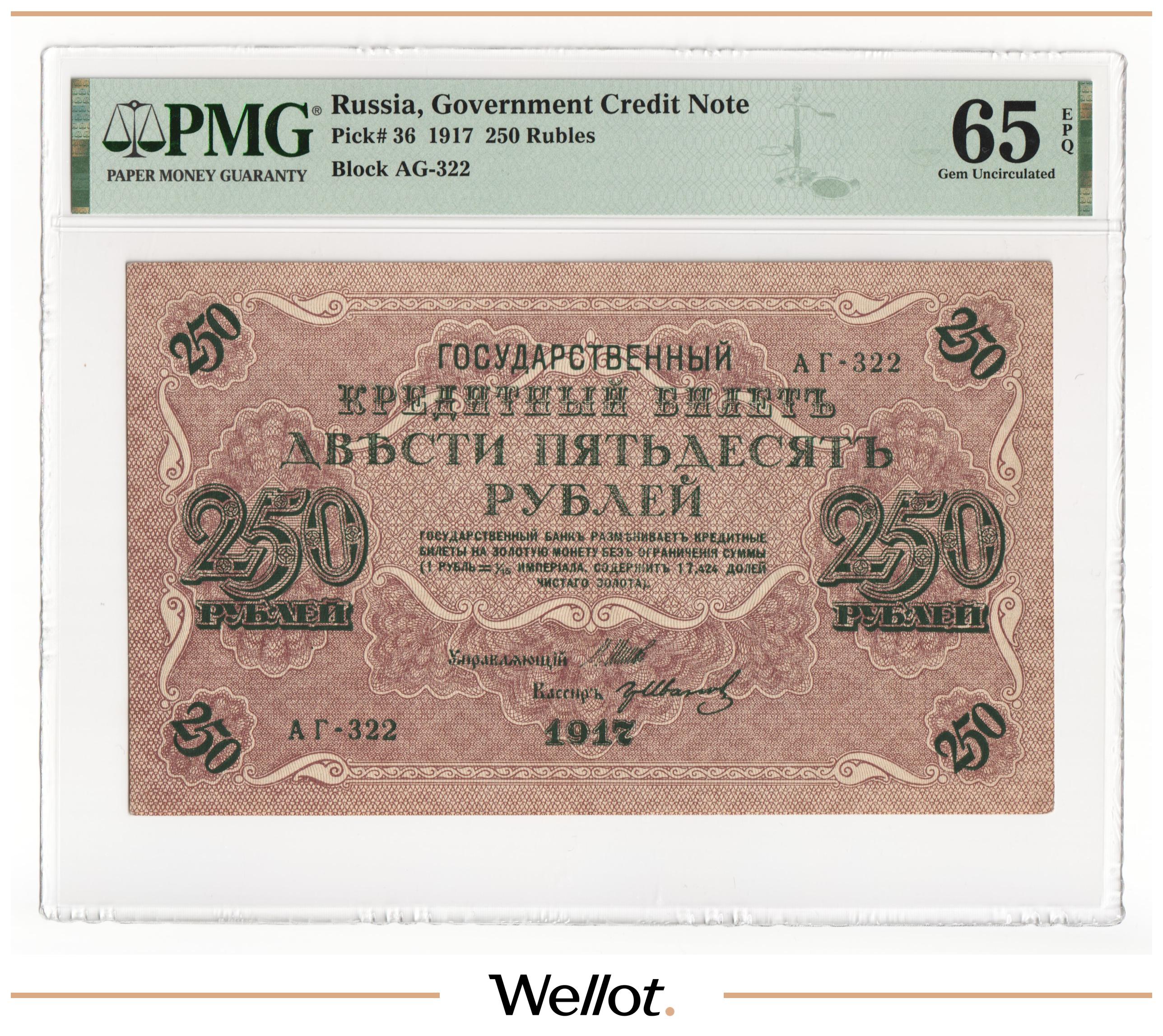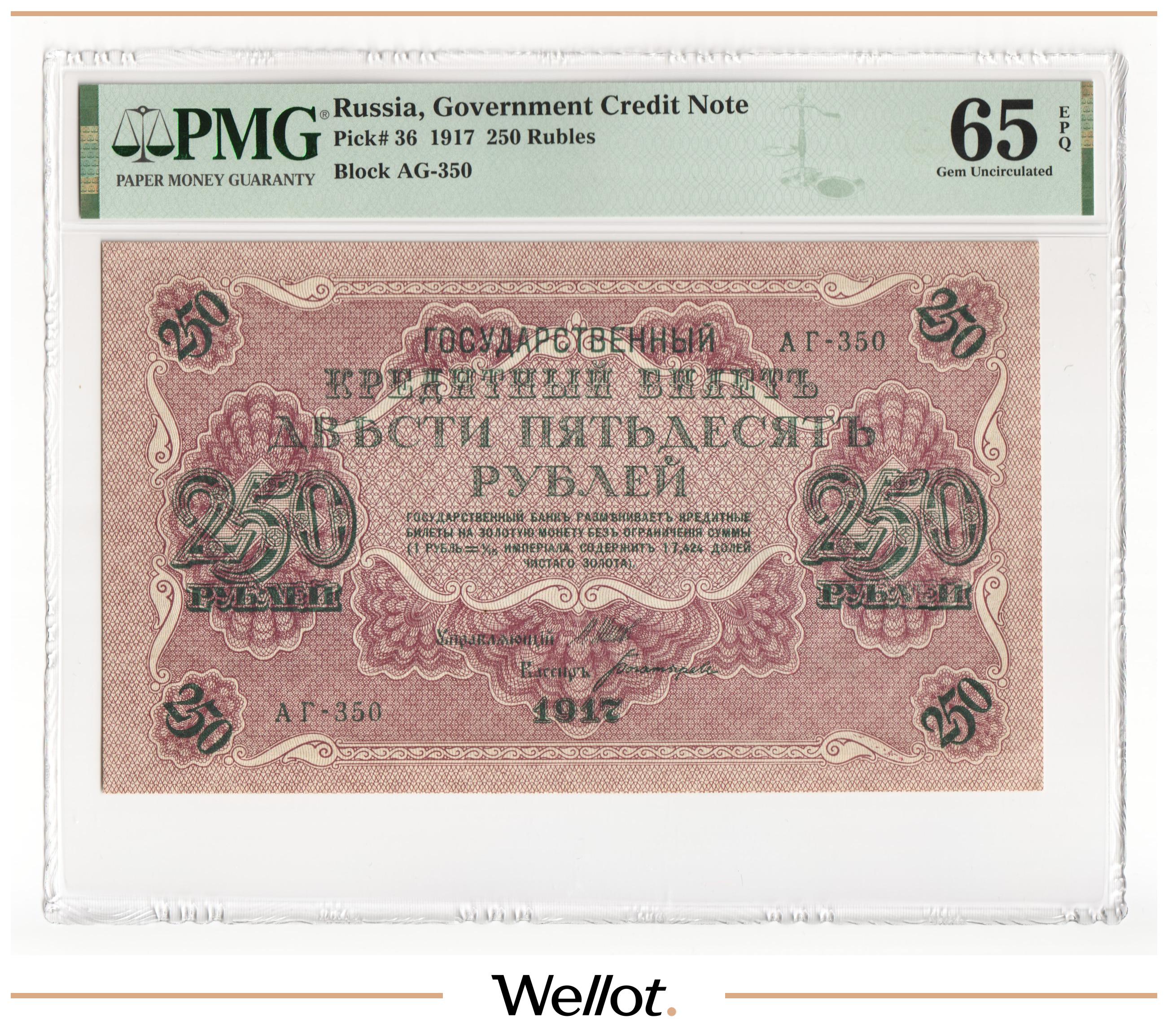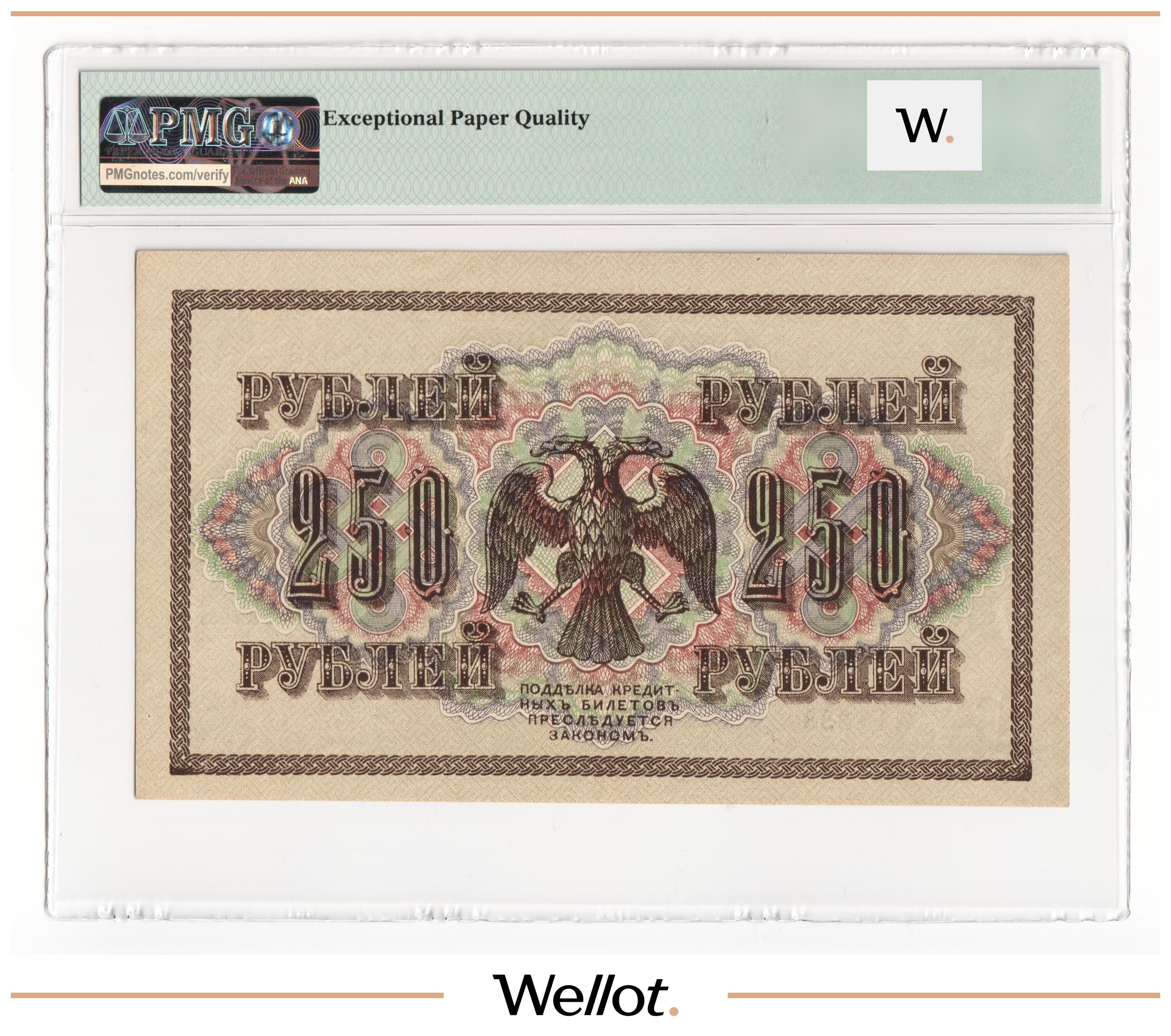 250 Рублей 1917 Россия Временное Правительство PMG 65 EPQ UNC