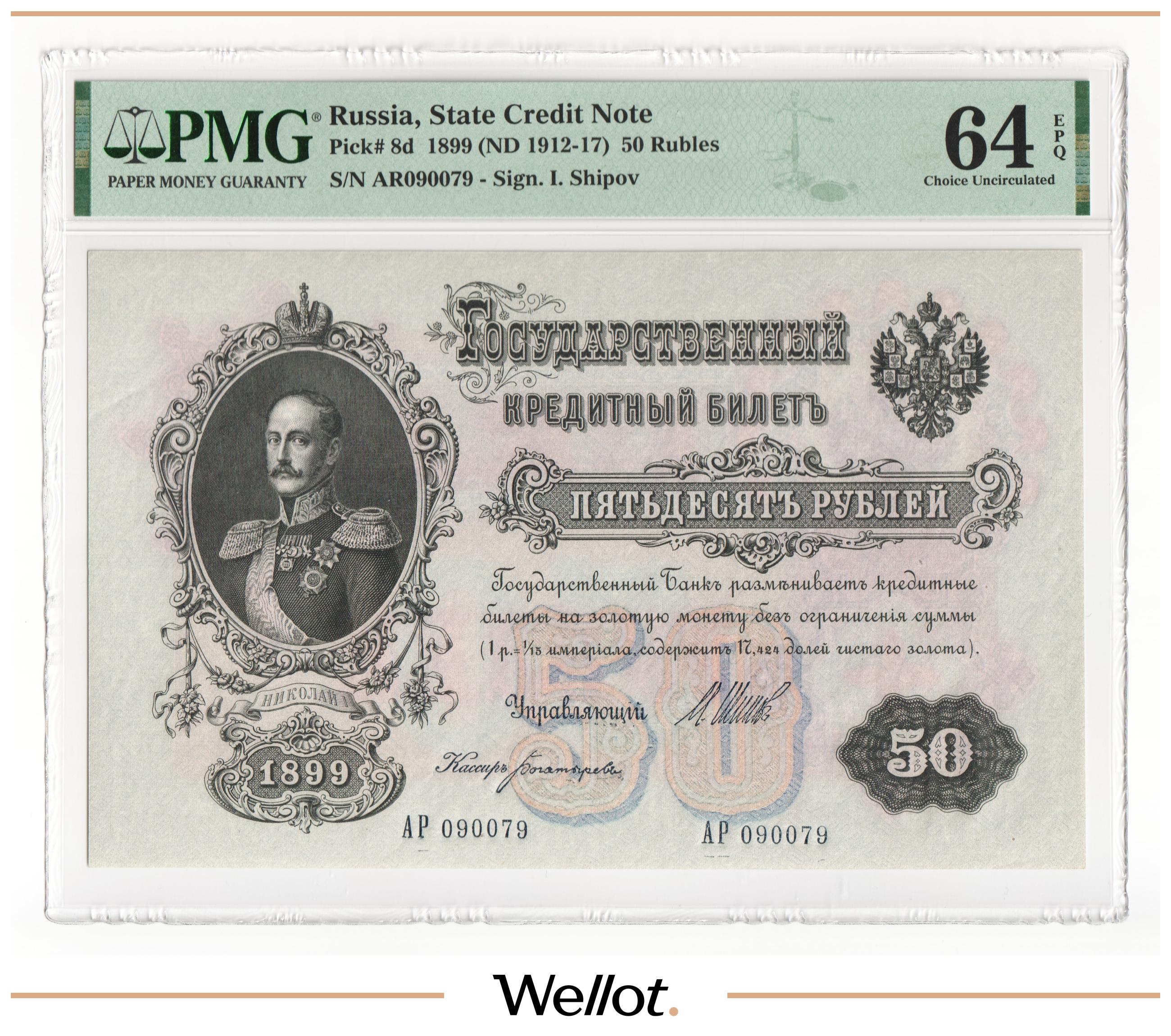 50 Рублей 1899 Российская Империя PMG 64 EPQ UNC