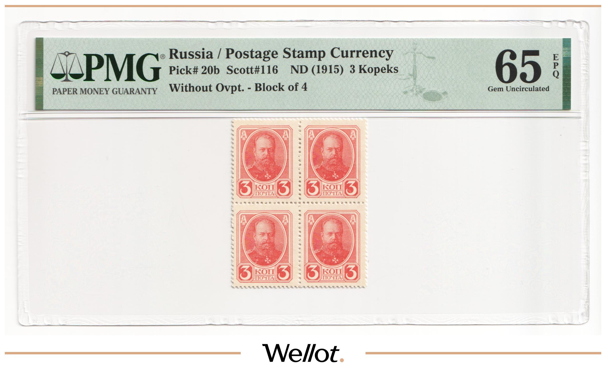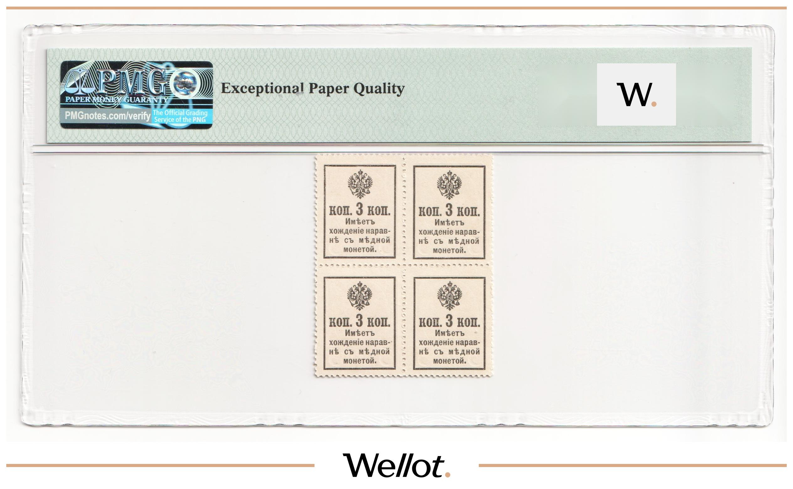 3 Копейки ND (1915) Российская Империя Квартблок PMG 65 EPQ UNC