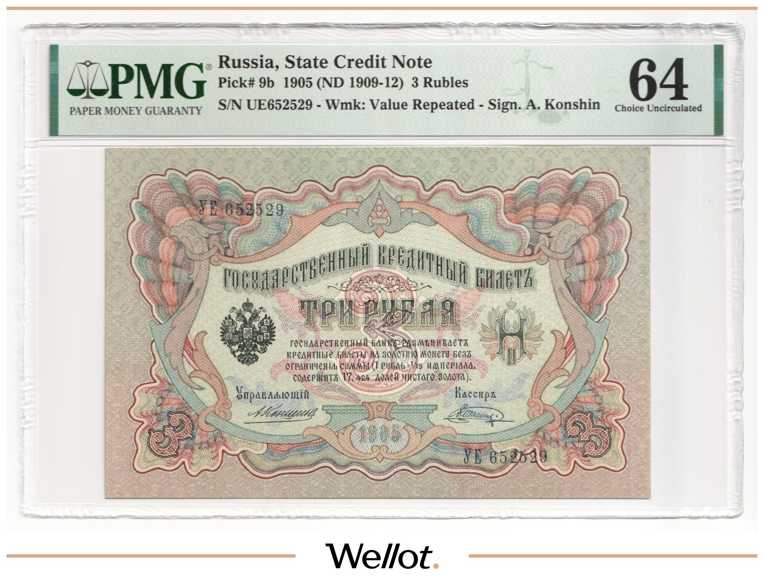 3 Рубля 1905 Российская Империя PMG 64 UNC