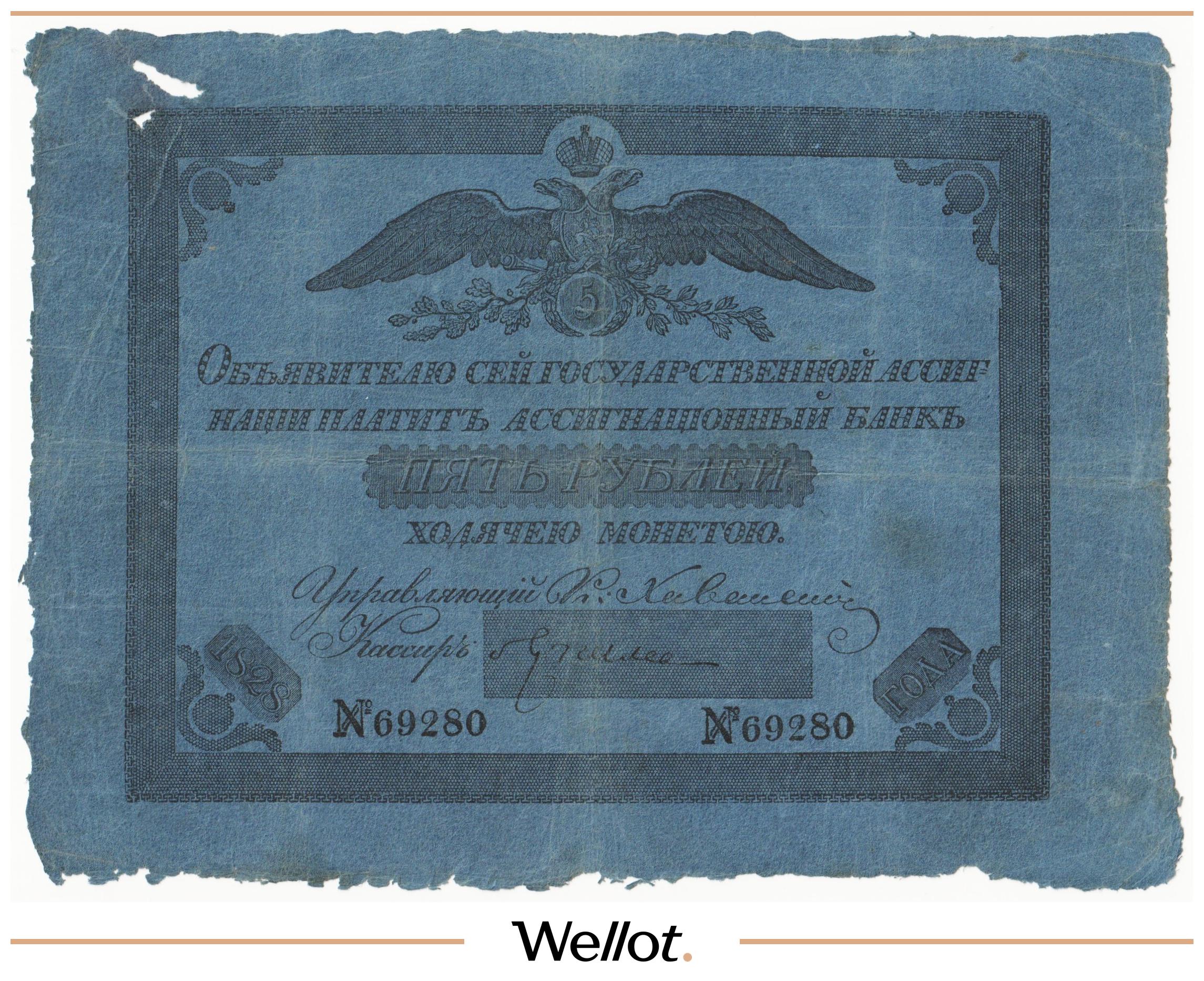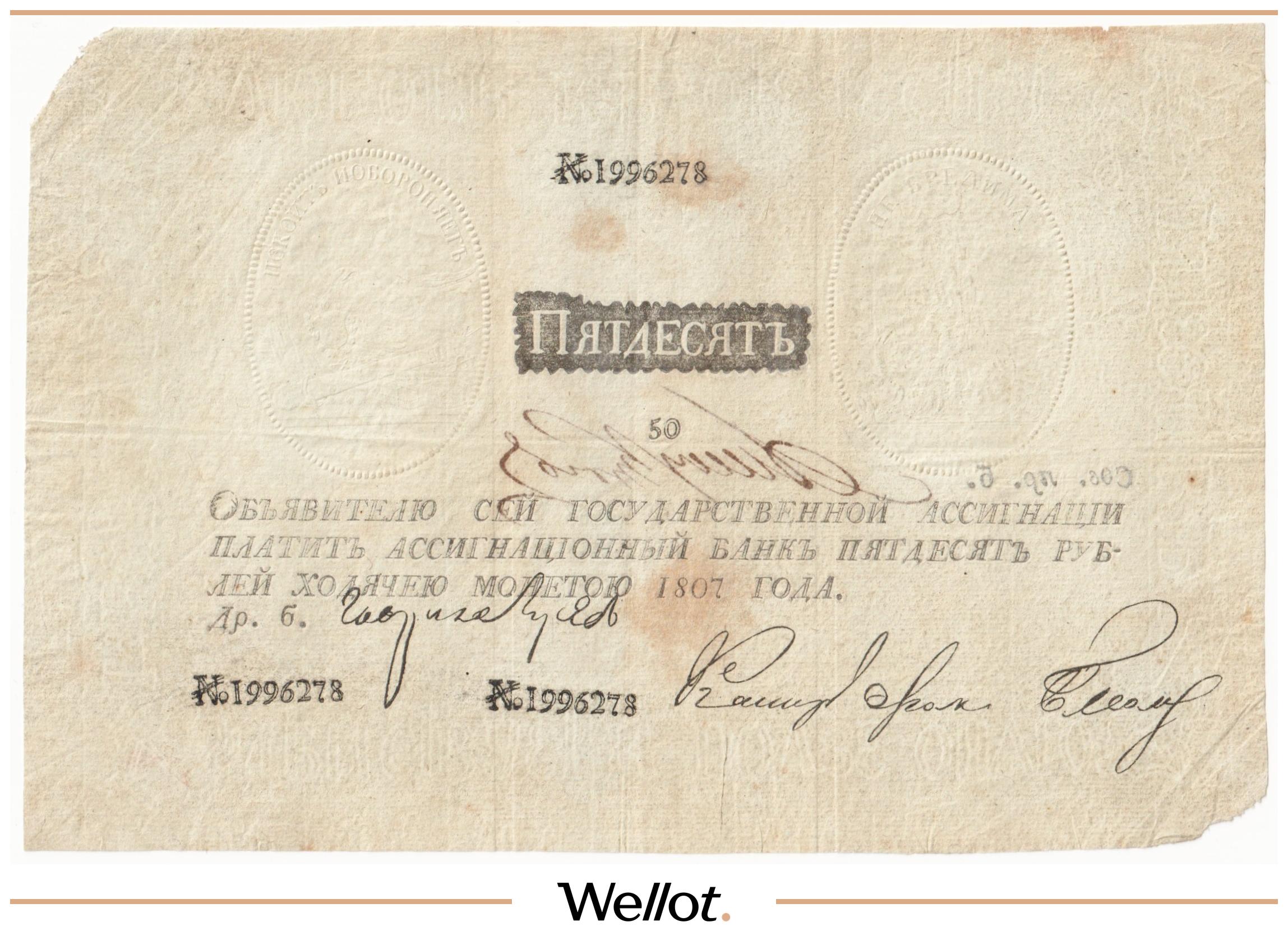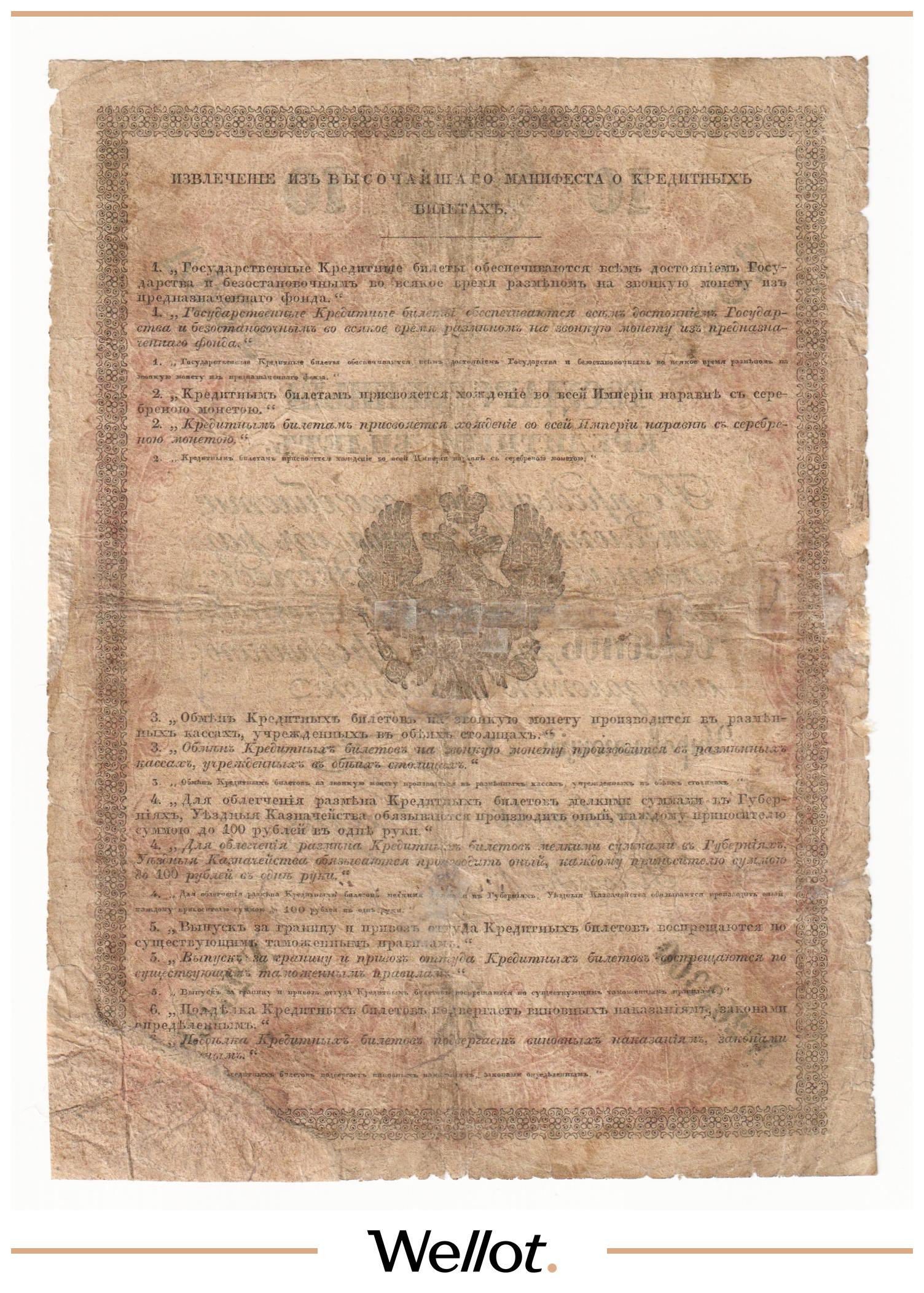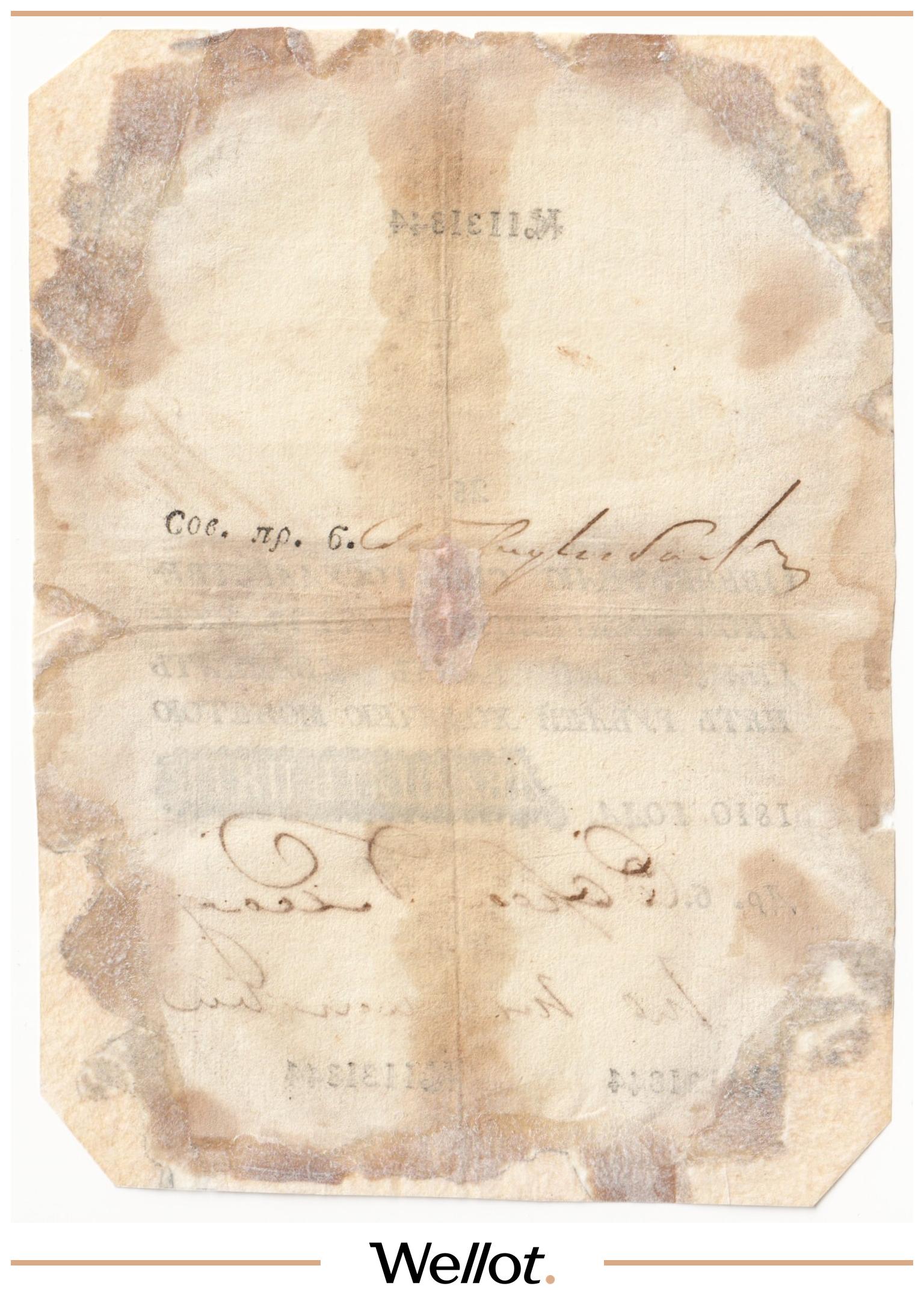 P# A18. Ассигнация. Николай I. Реставрация. Подрезана по контуру. Шестой известный экземпляр. Чрезвычайно редкие!
