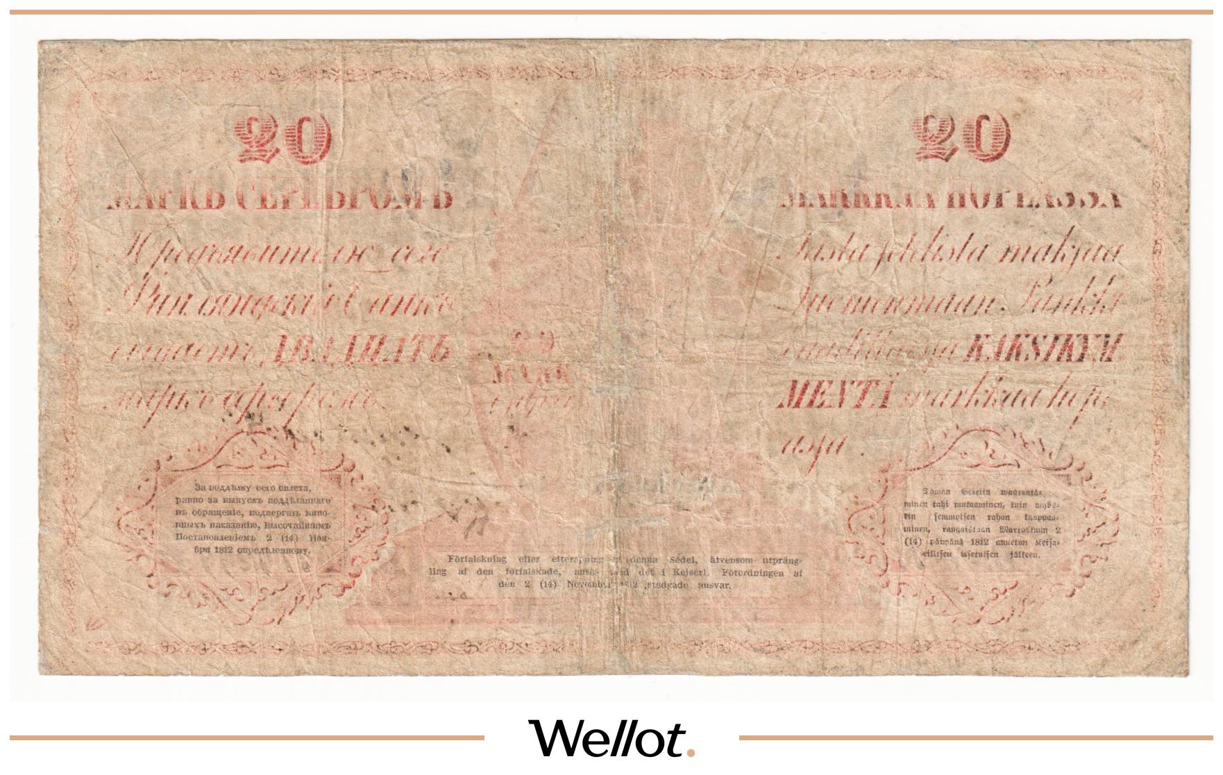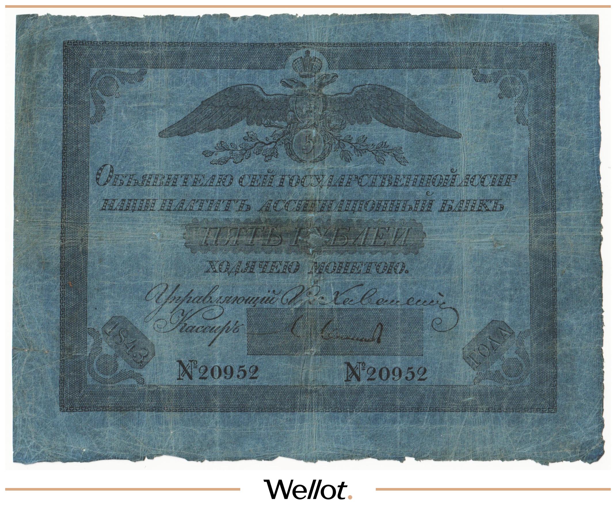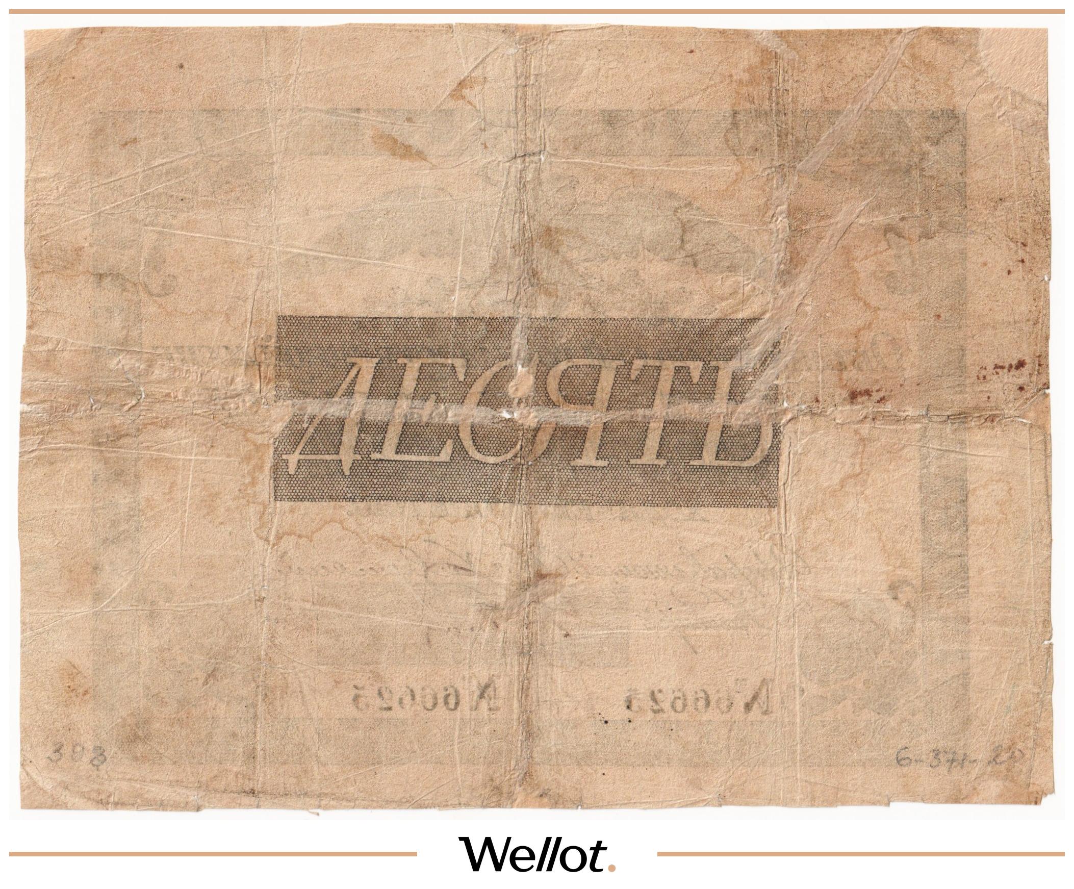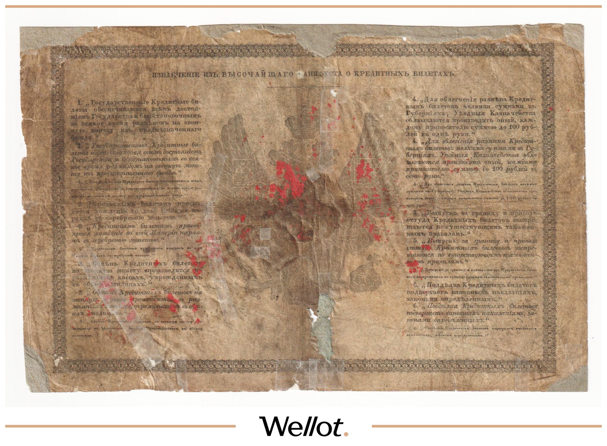 P# A18. Ассигнация. Николай I. Реставрация. Подрезана по контуру. Шестой известный экземпляр. Чрезвычайно редкие!