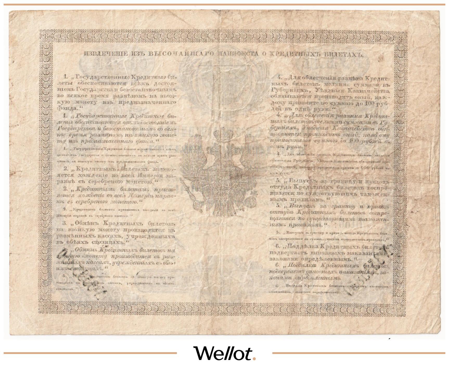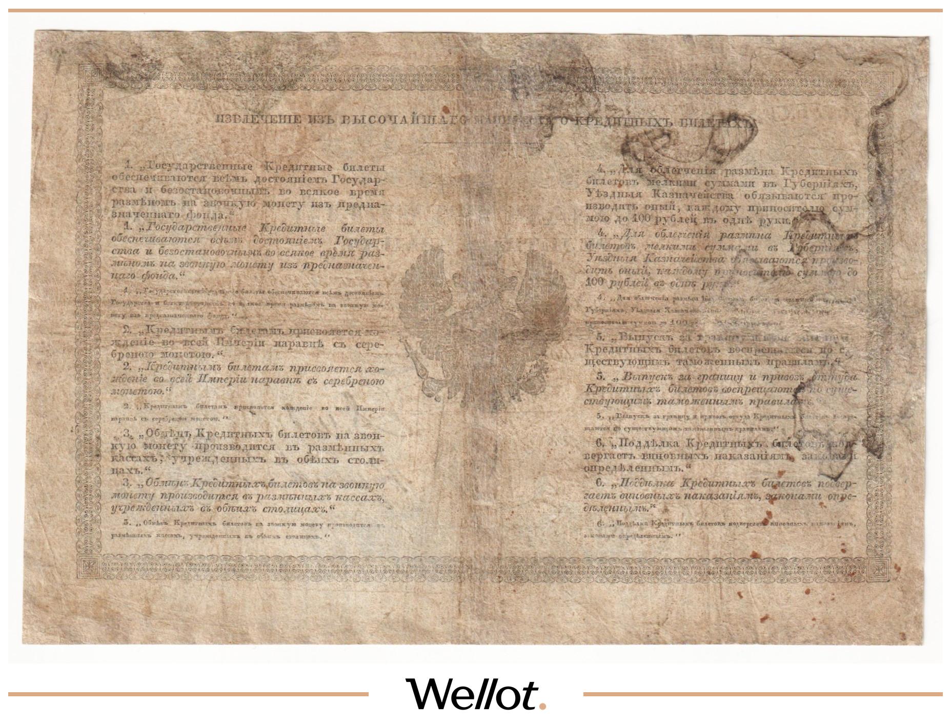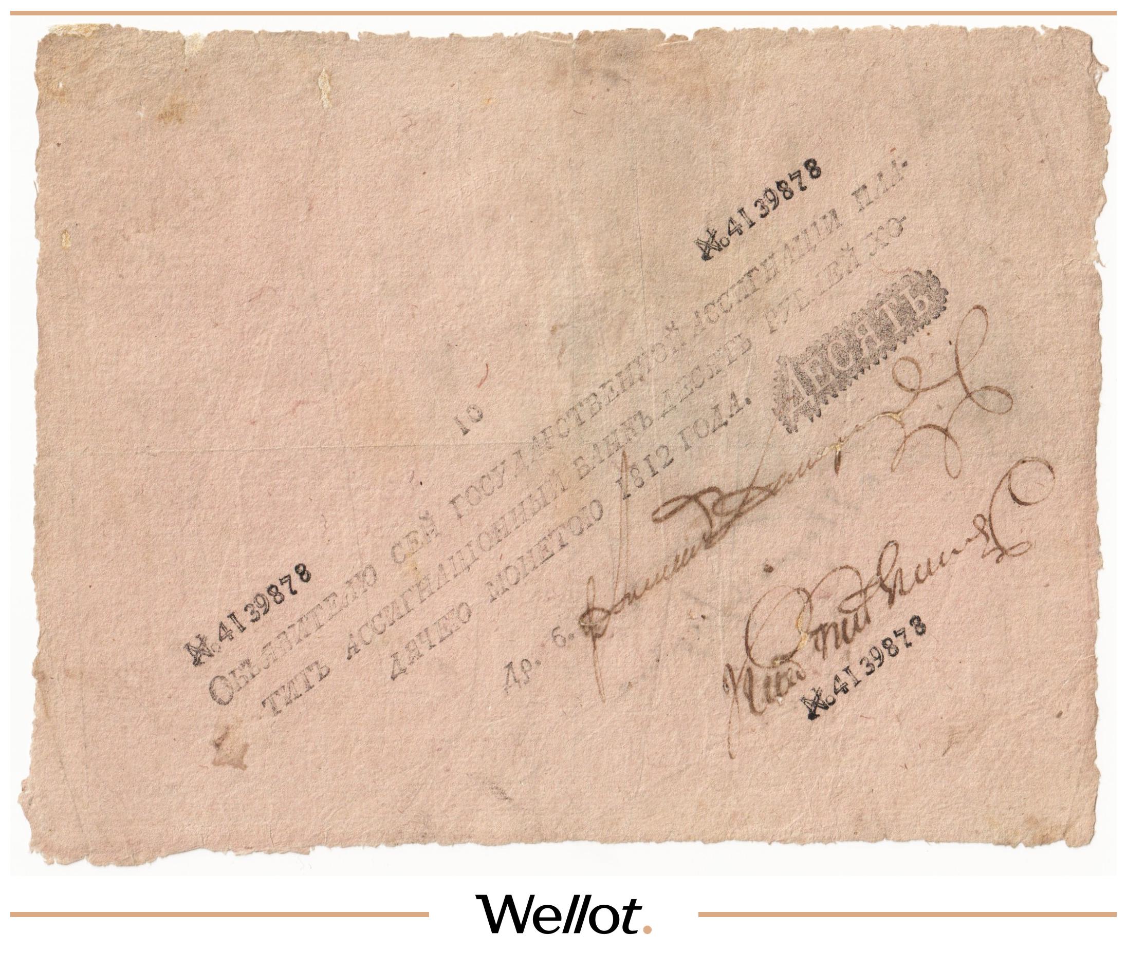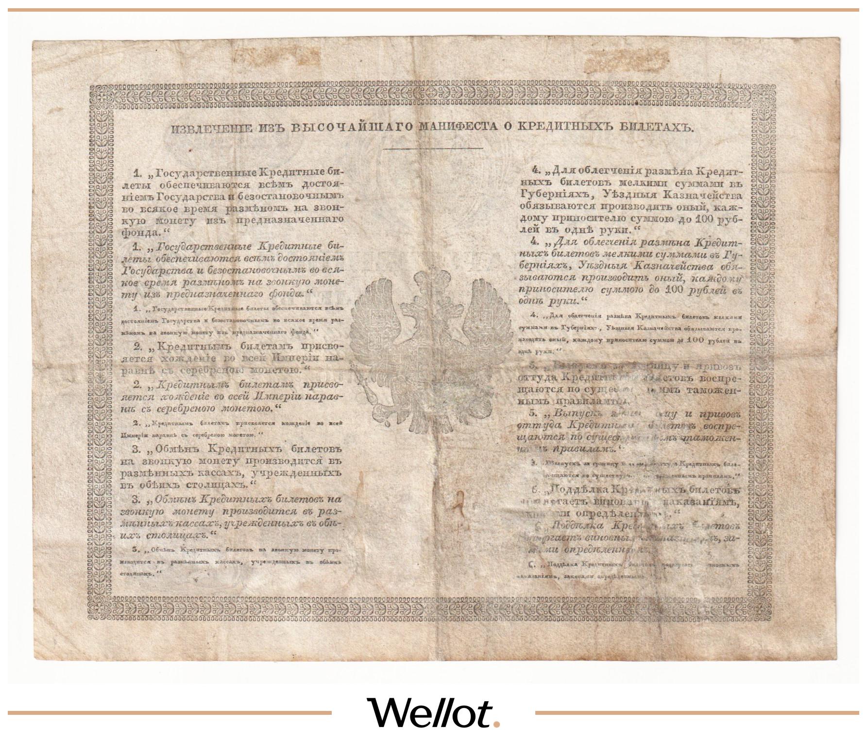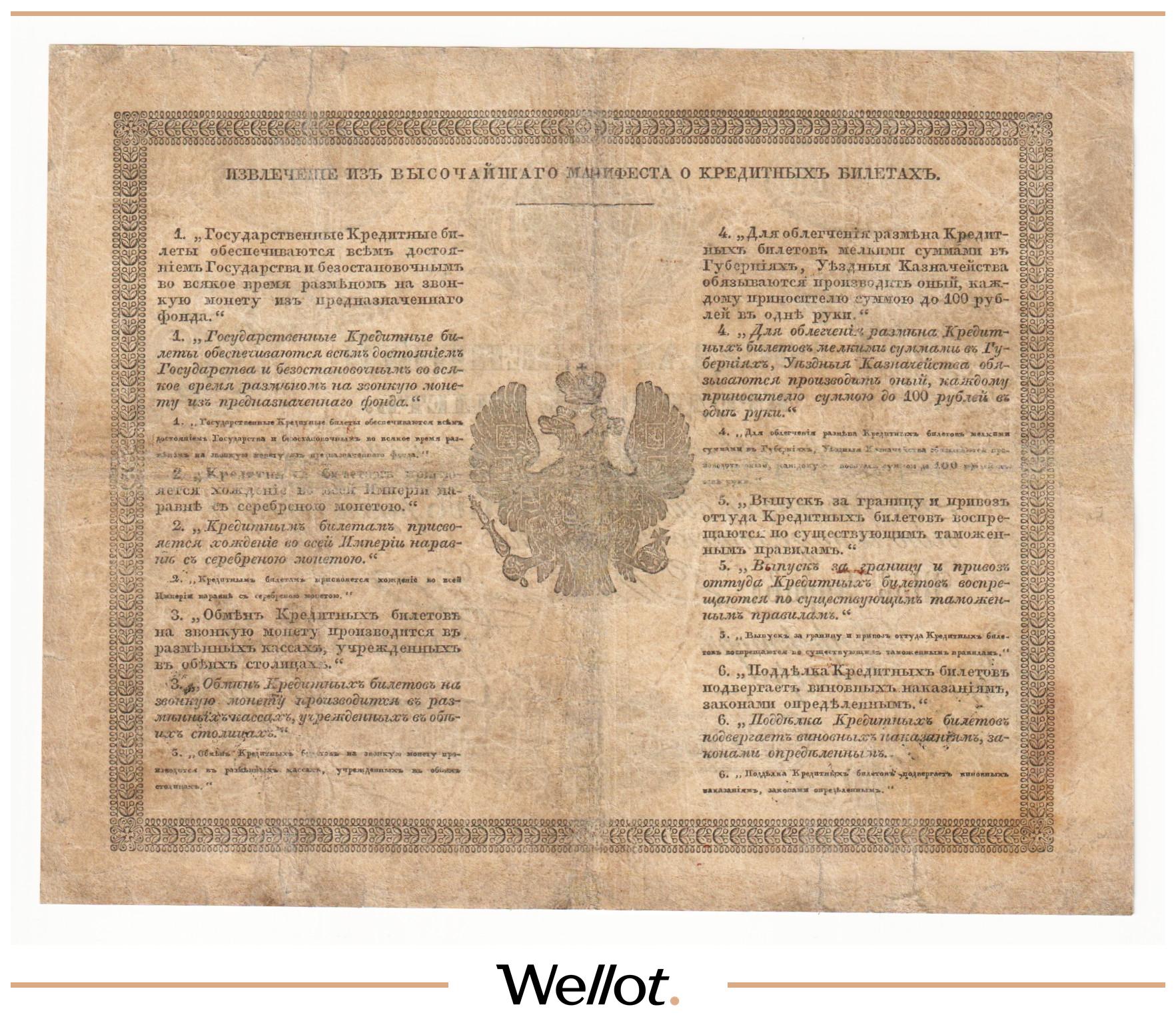 P# A11. Ассигнация. Александр I. Фальшивые банкноты, выпущенные в начале XIX века в ущерб российской экономике. Интересная страница истории денежного обращения. Контур слегка подрезан. Отличное состояние. Известно 26 экземпляров. Редкая датировка!
