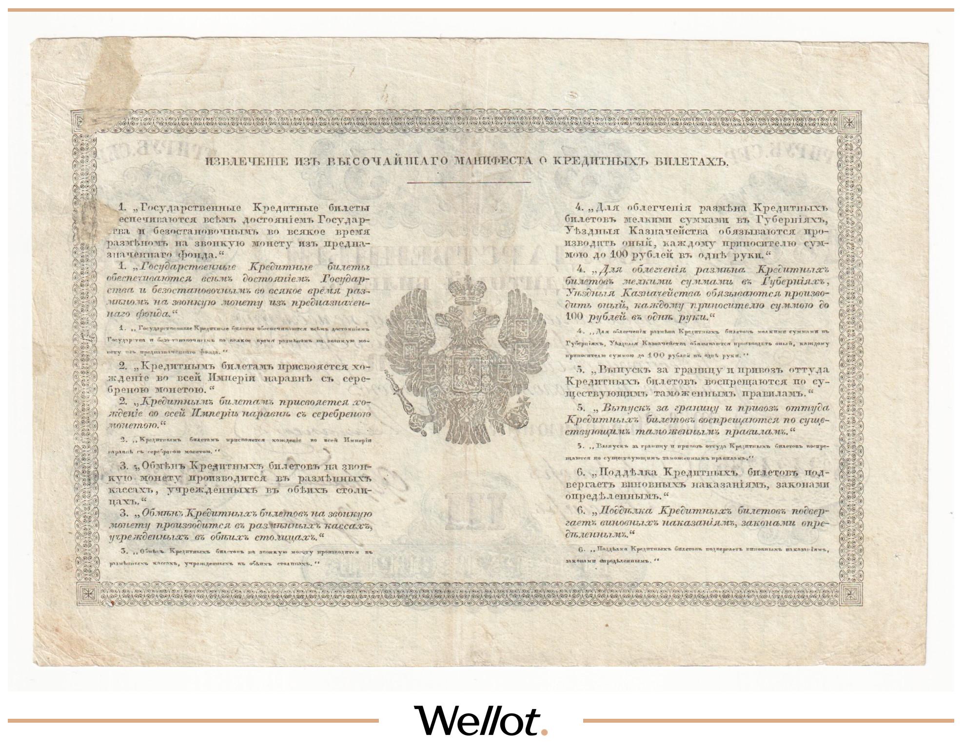 P# A18. Ассигнация. Николай I. Реставрация. Известно 11 экземпляров. Редкая датировка.