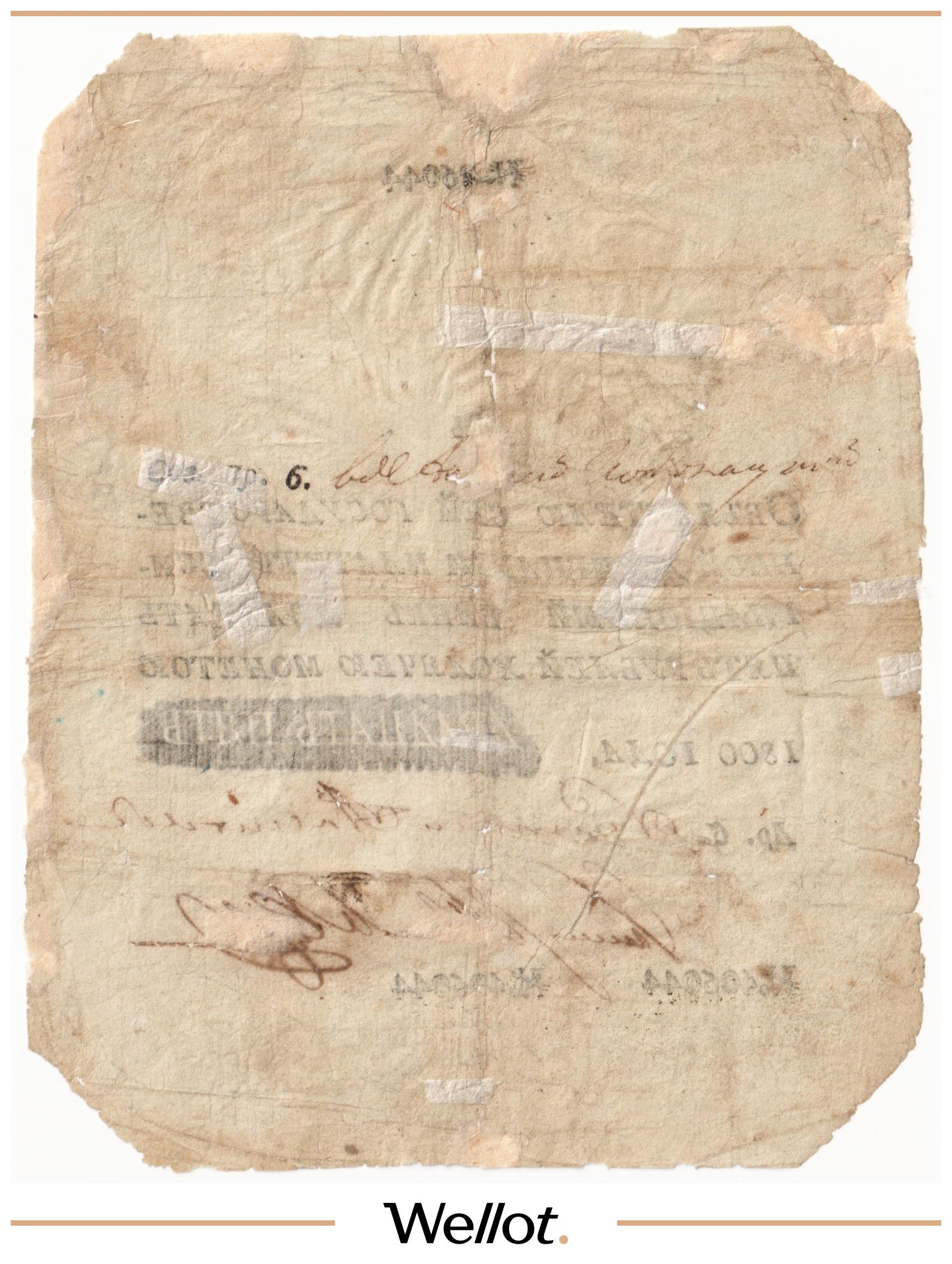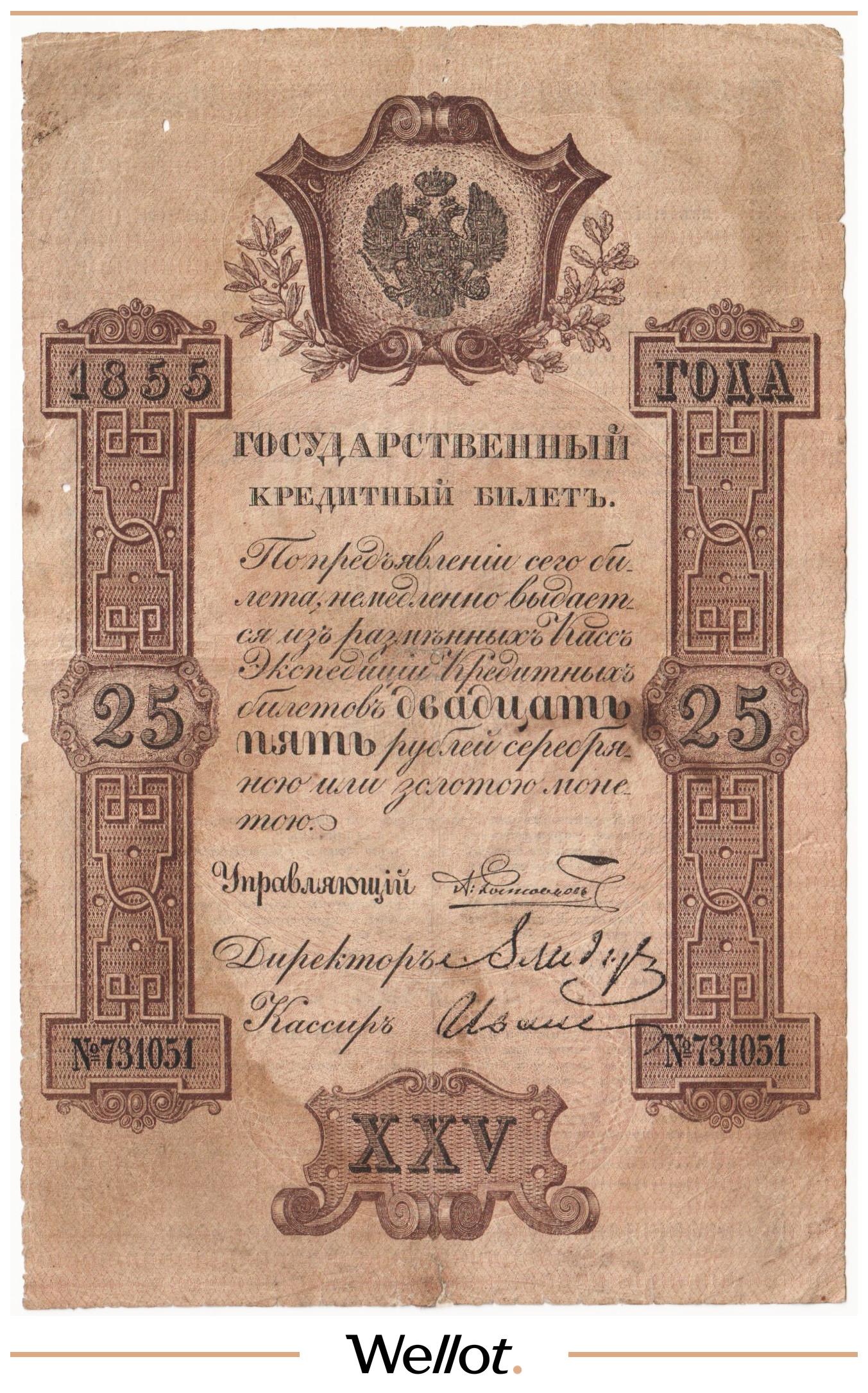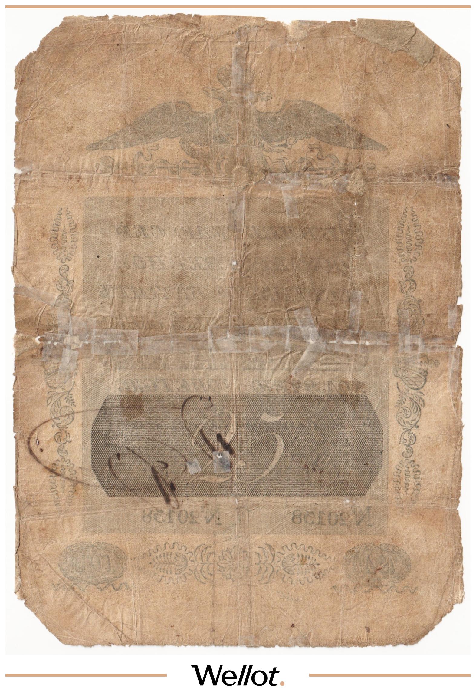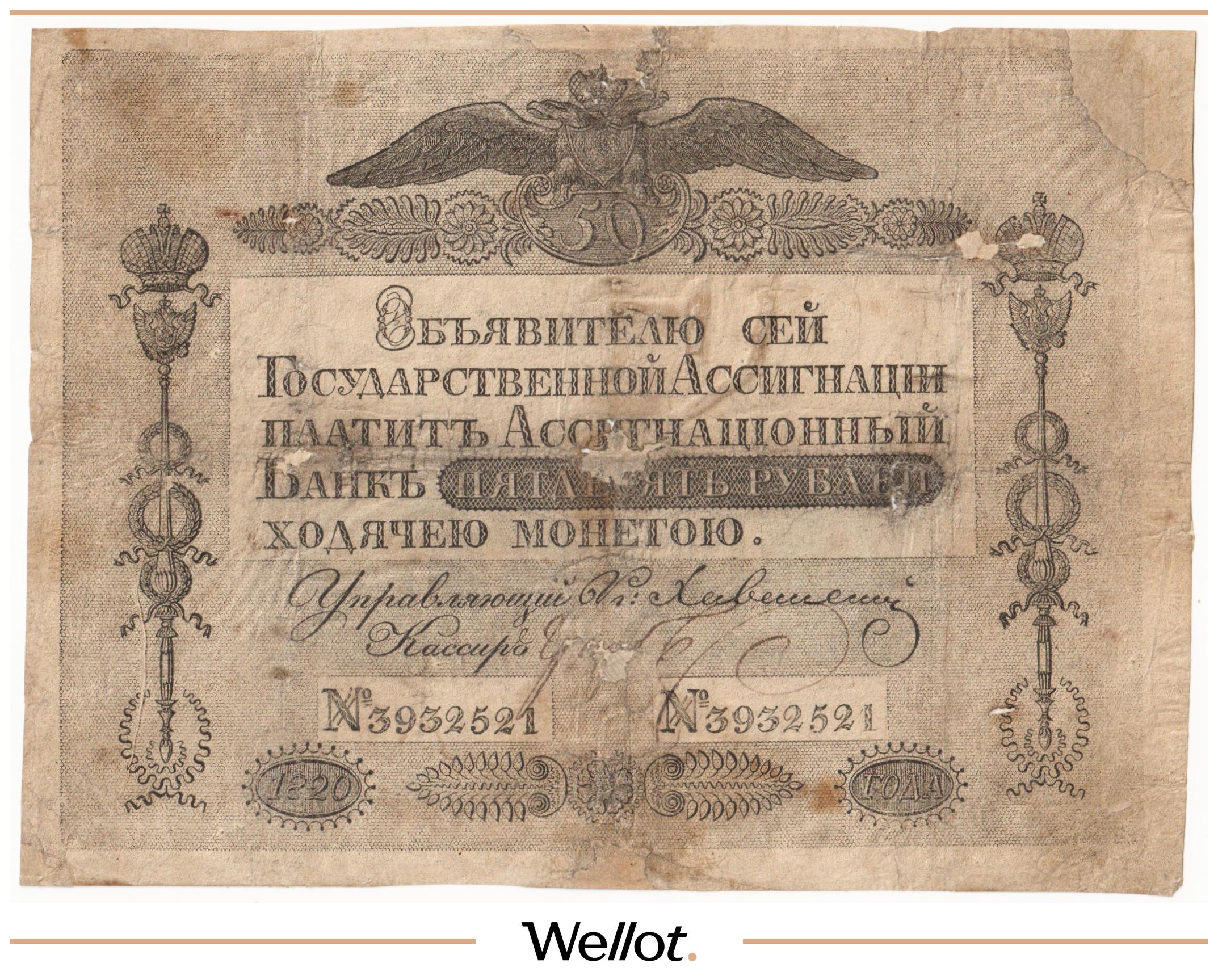 Наш экземпляр — именно из этой поворотной точки истории: не просто редкая старинная бумага, а ранняя российская банкнота современного типа. Такой предмет берут как опорный лот коллекции — чтобы закрыть важнейший переход от ассигнаций к классическим банкнотам.