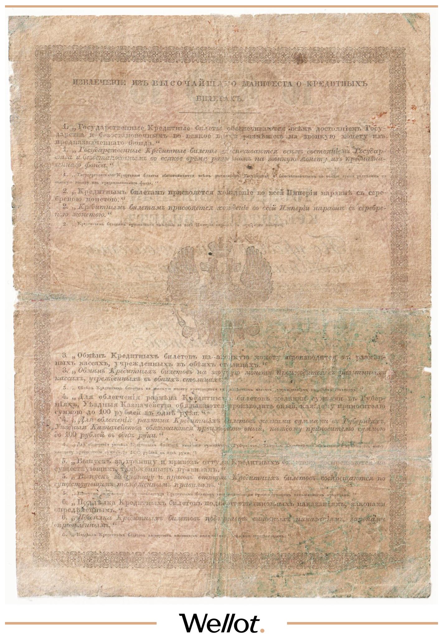 P# A9. Ассигнация. Александр I. Реставрация. Известно 8 экземпляров. Исключительно редкая датировка!
