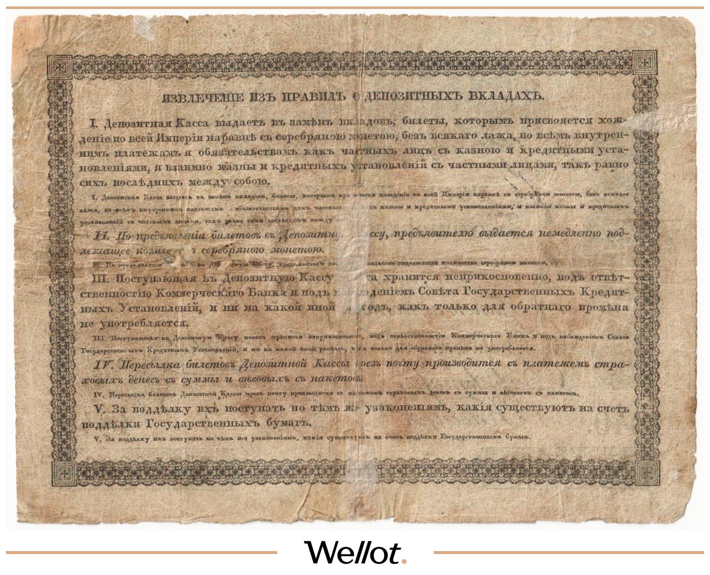 В отличие от ассигнаций, депозитные билеты уже читаются как банкнота в привычном смысле слова — с понятным номиналом и «банковской» логикой доверия. Поэтому депозитная система 1840–1847 гг. считается ключевым переходным этапом к денежному обращению на основе кредитных билетов.