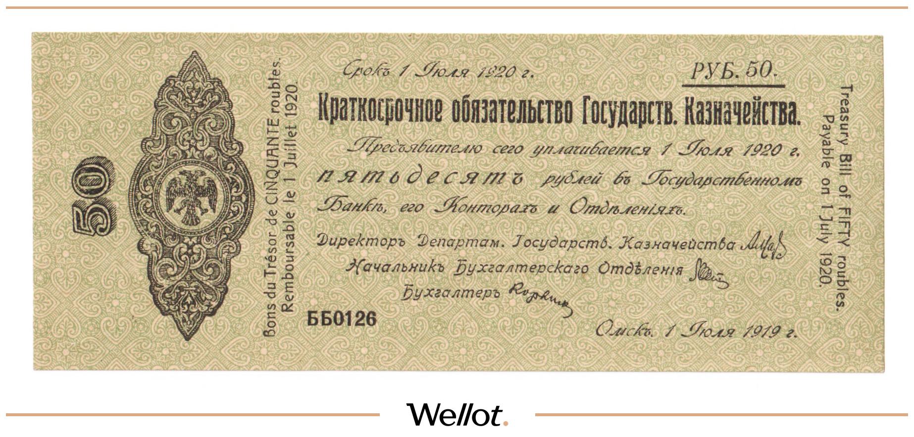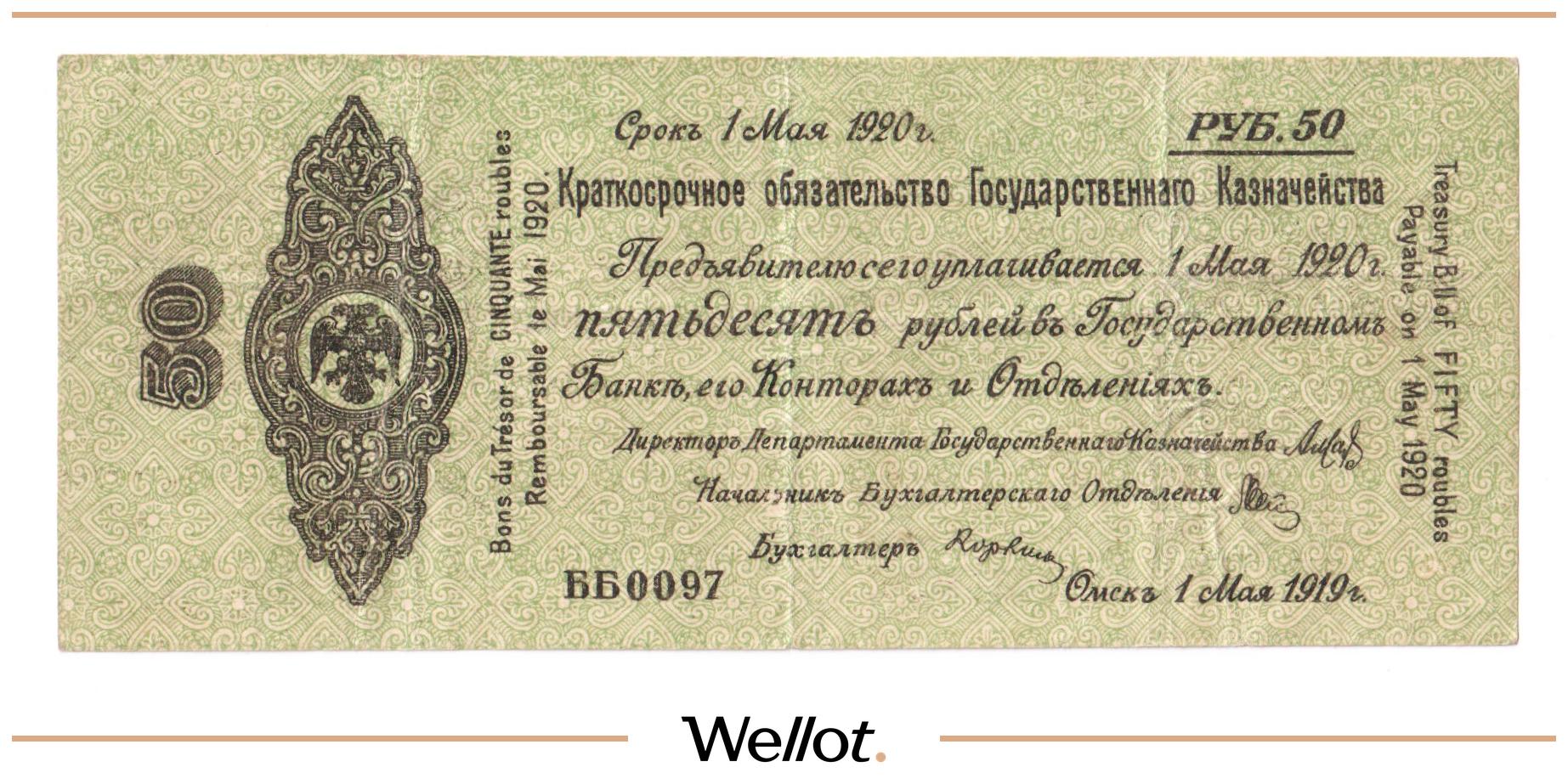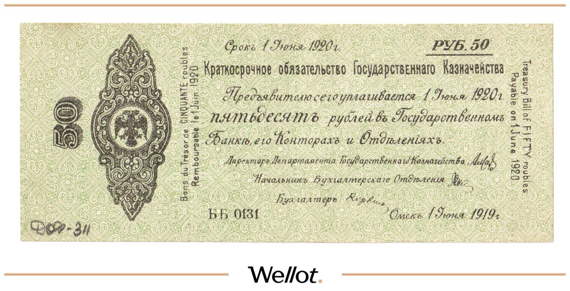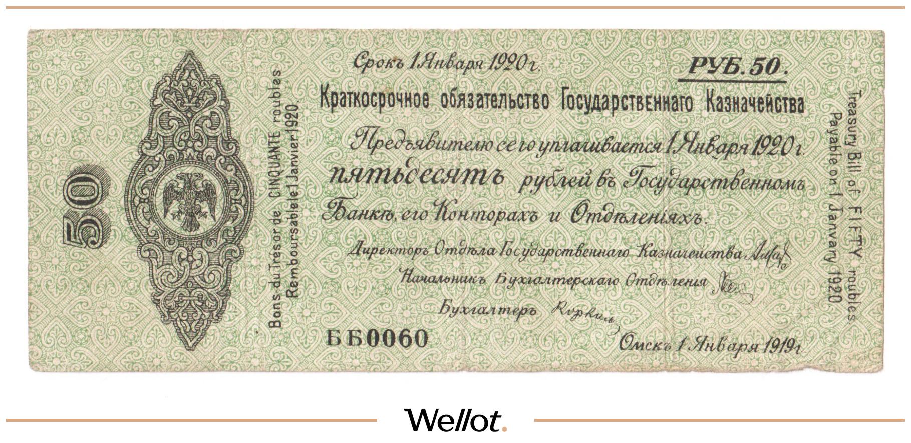 50 Рублей 1919 Россия Сибирь Временное Правительство