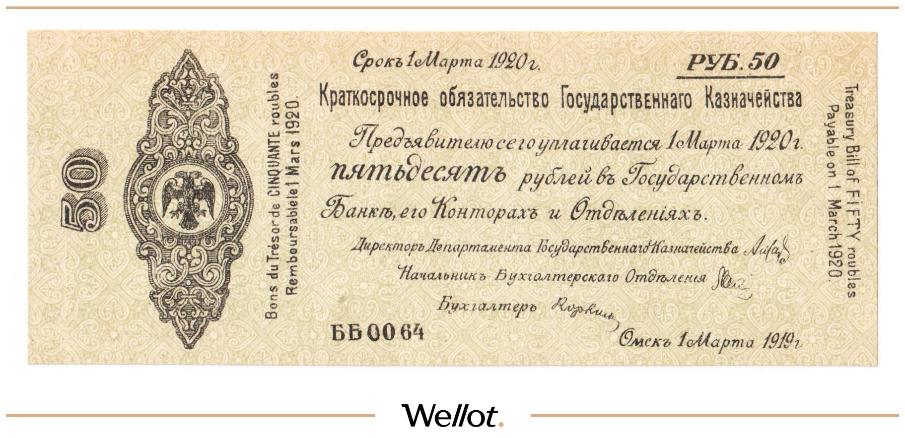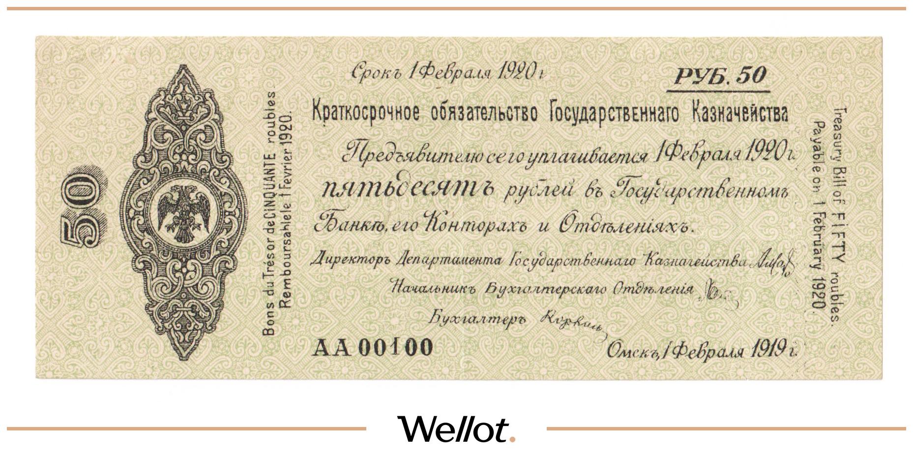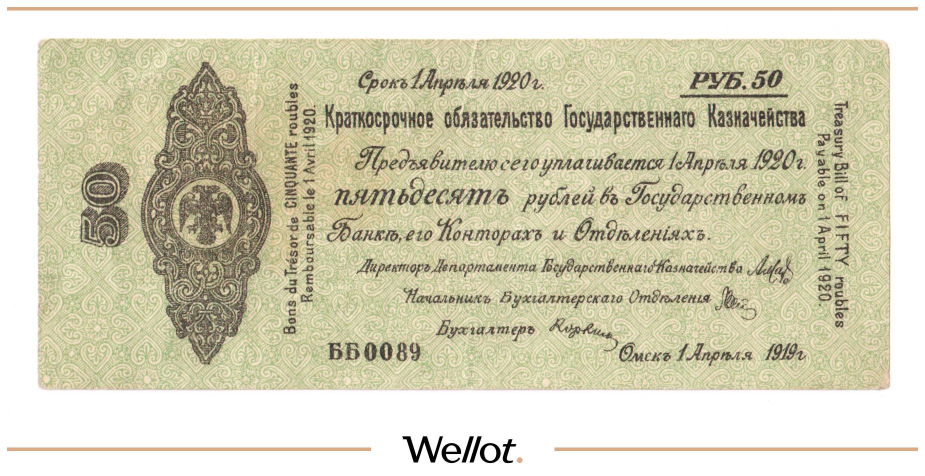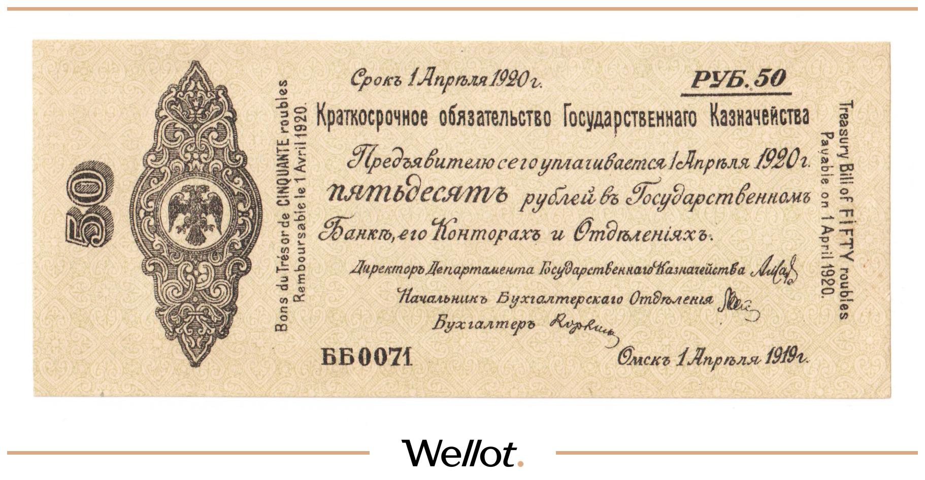 50 Рублей 1919 Россия Сибирь Временное Правительство
