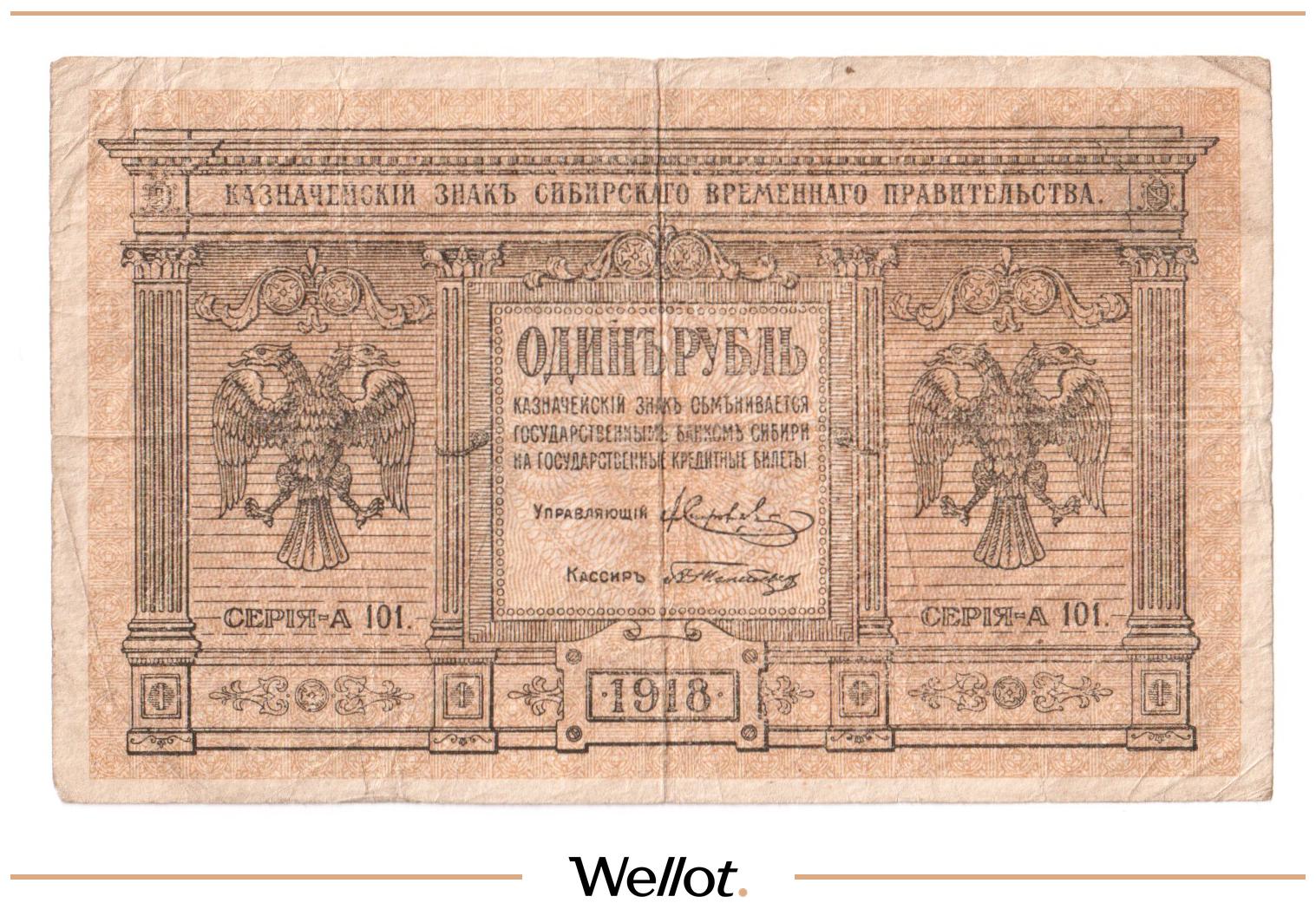 1 Рубль 1918 Россия Сибирь Временное Правительство