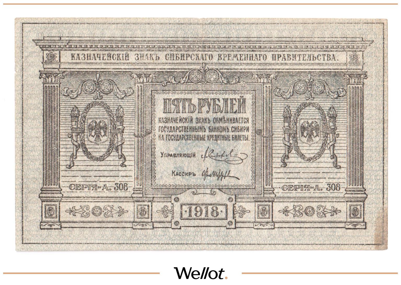 5 Рублей 1918 Россия Сибирь Временное Правительство