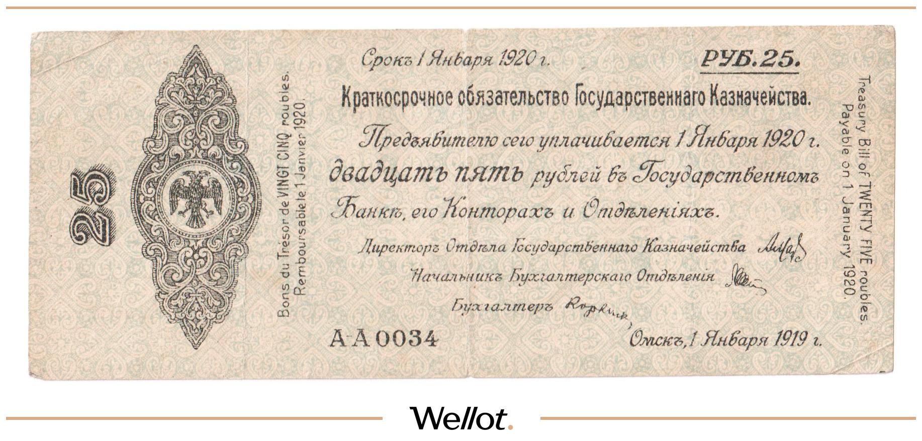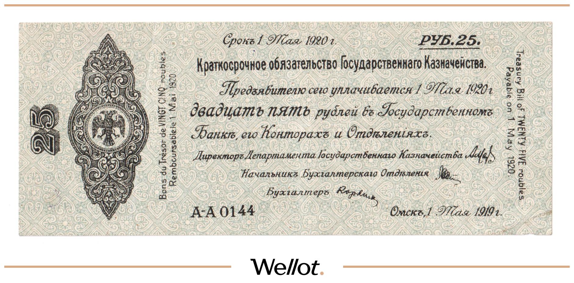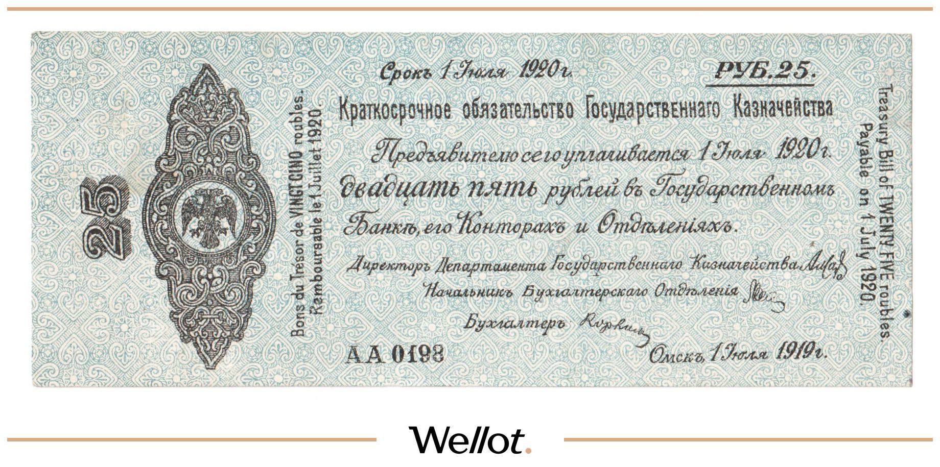 25 Рублей 1919 Россия Сибирь Временное Правительство