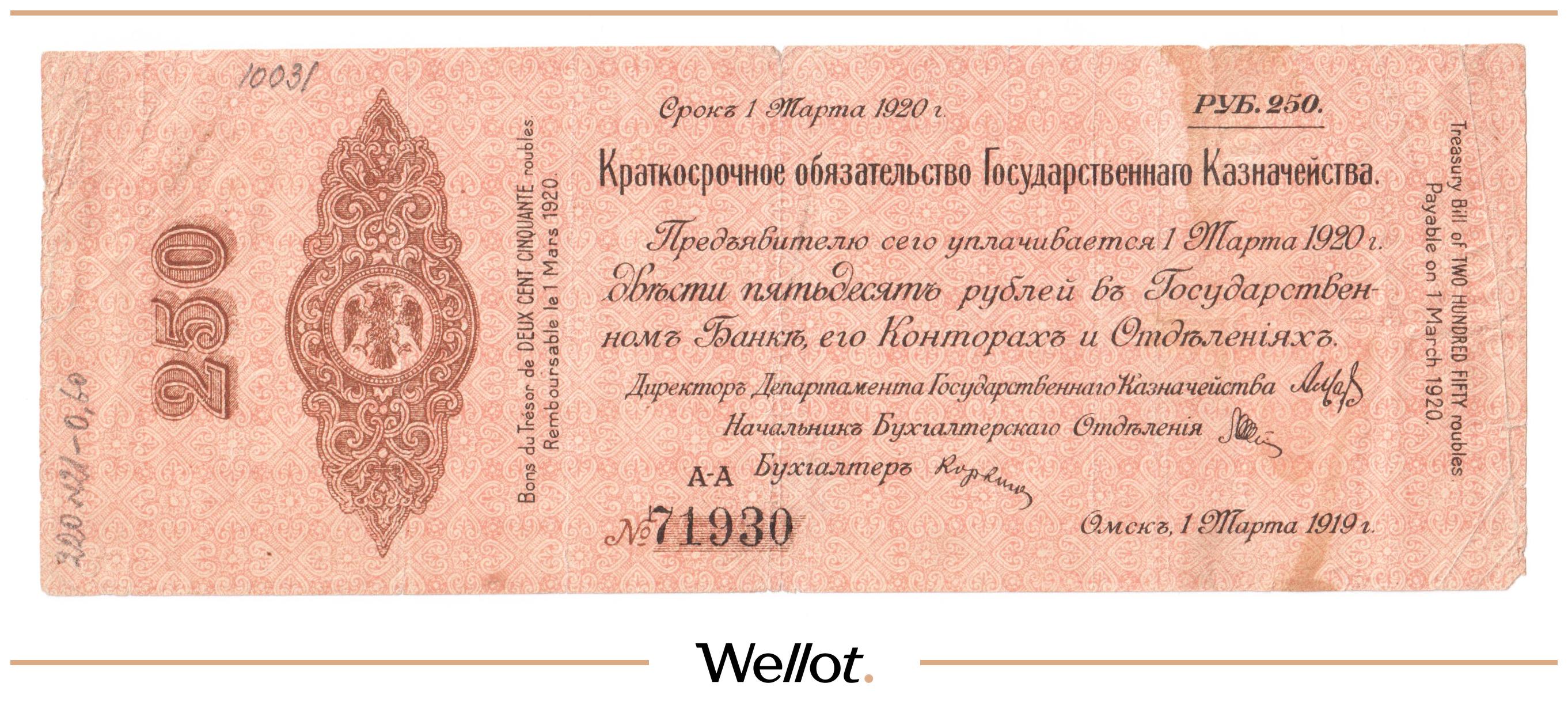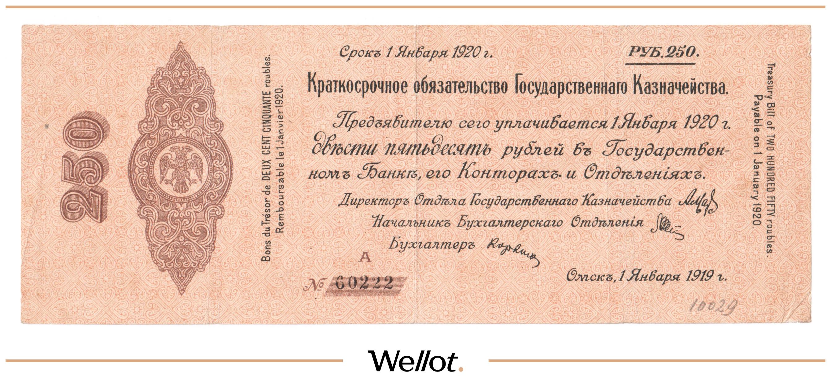 250 Рублей 1919 Россия Сибирь Временное Правительство