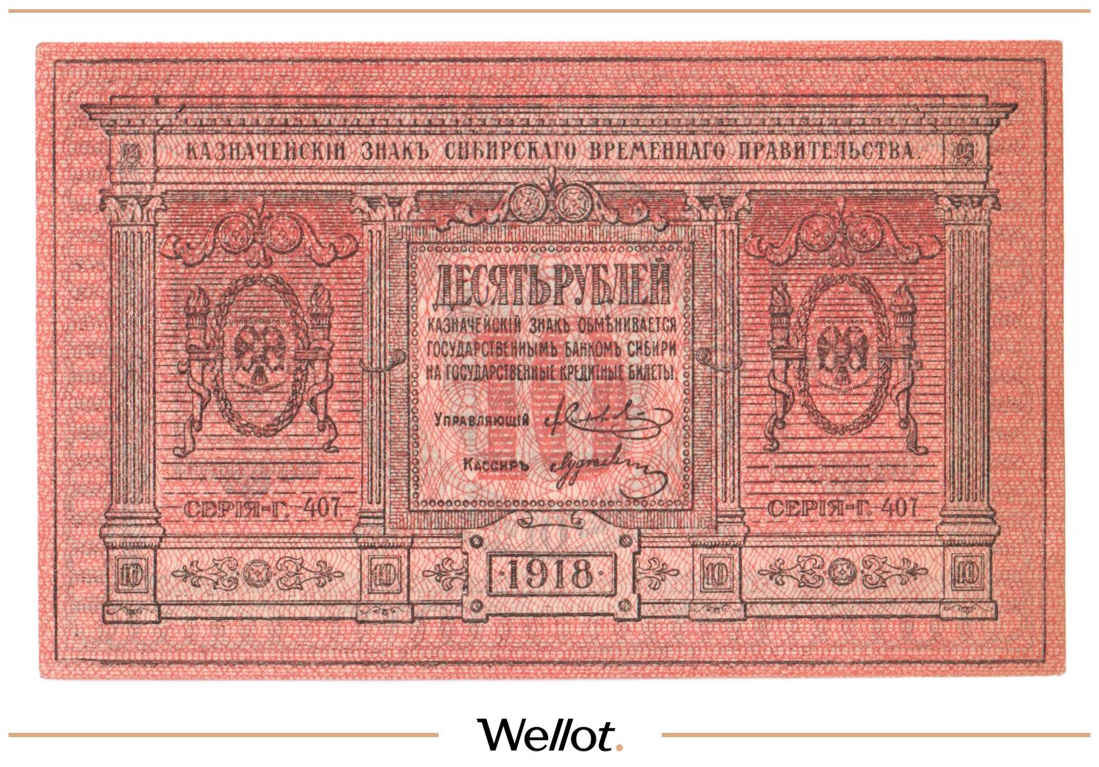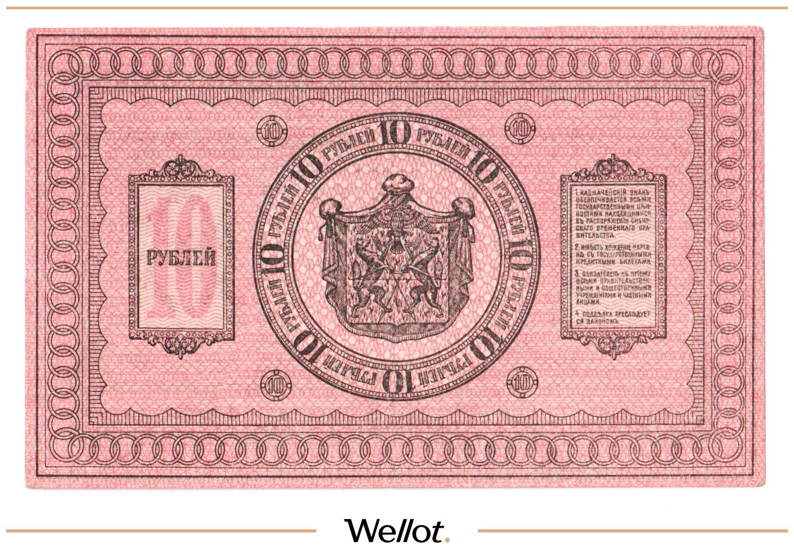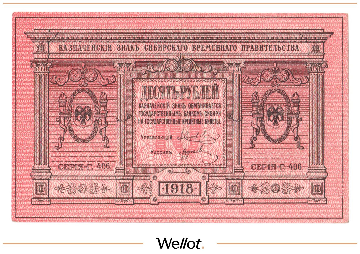 10 Рублей 1918 Россия Сибирь Временное Правительство
