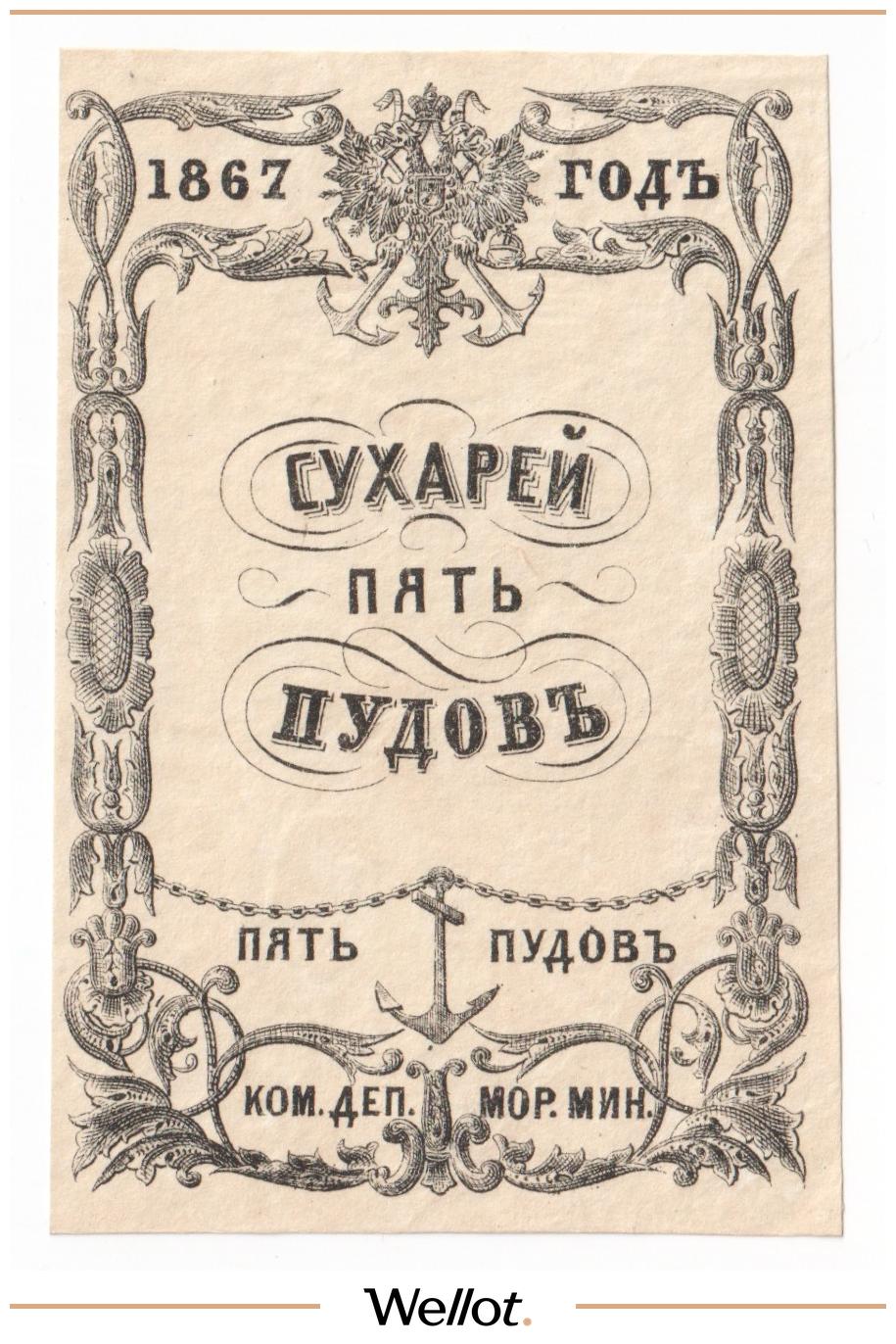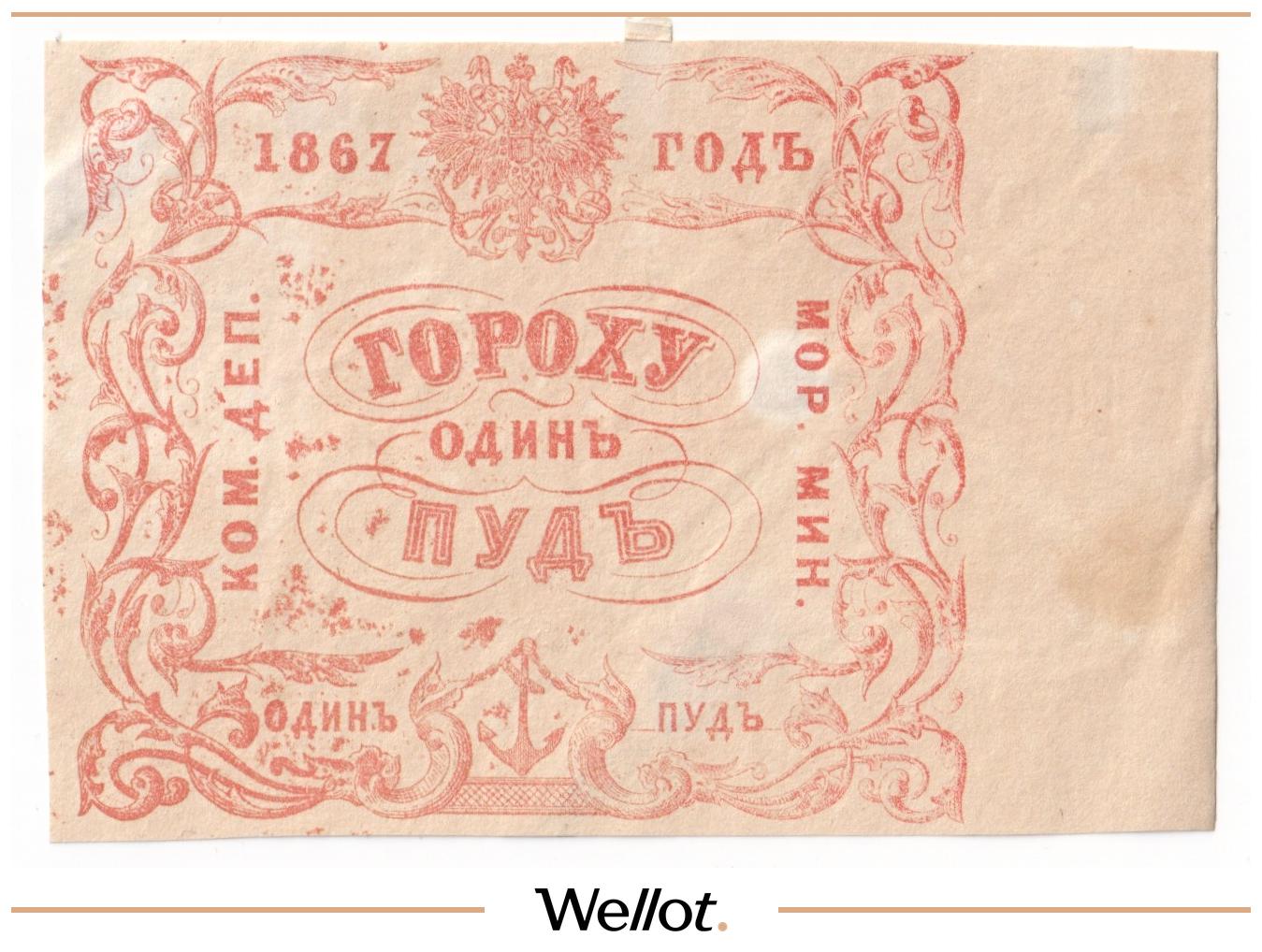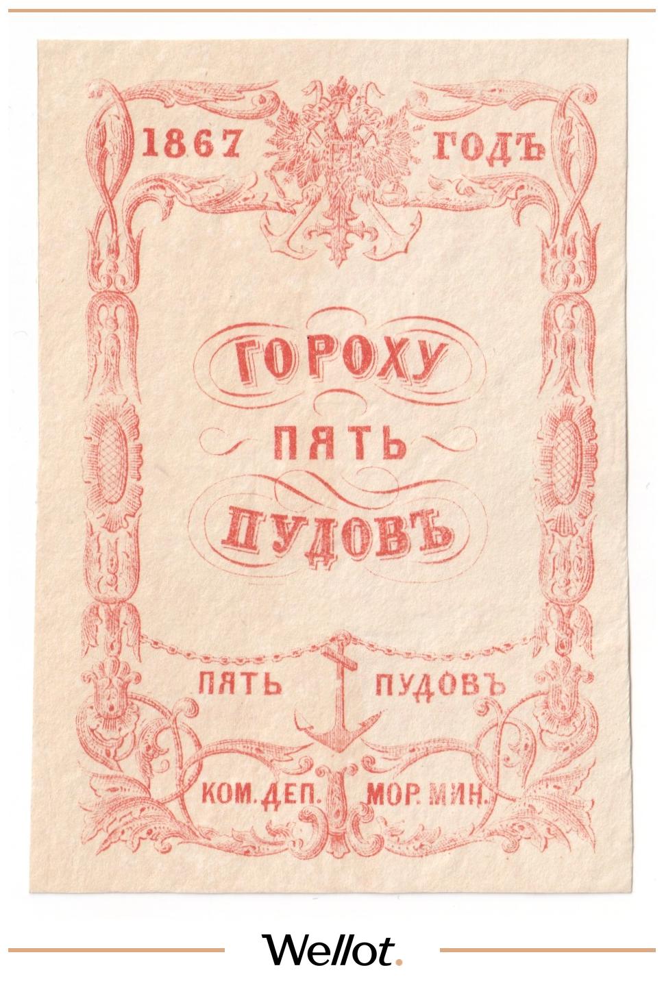5 Пудов Гороху 1867 Российская Империя Морское Министерство UNC-