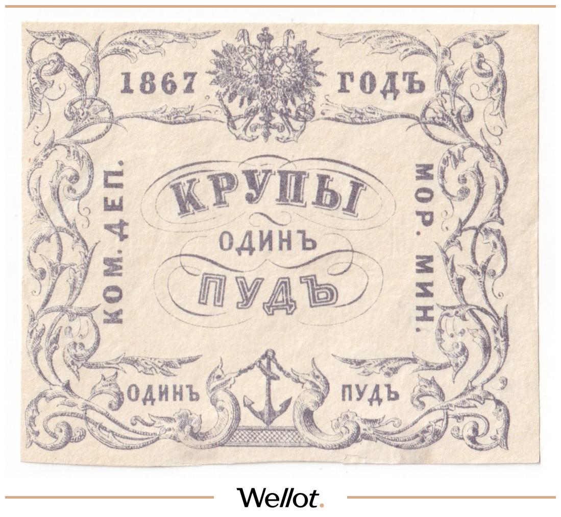 1 Пуд Крупы 1867 Российская Империя Морское Министерство UNC-