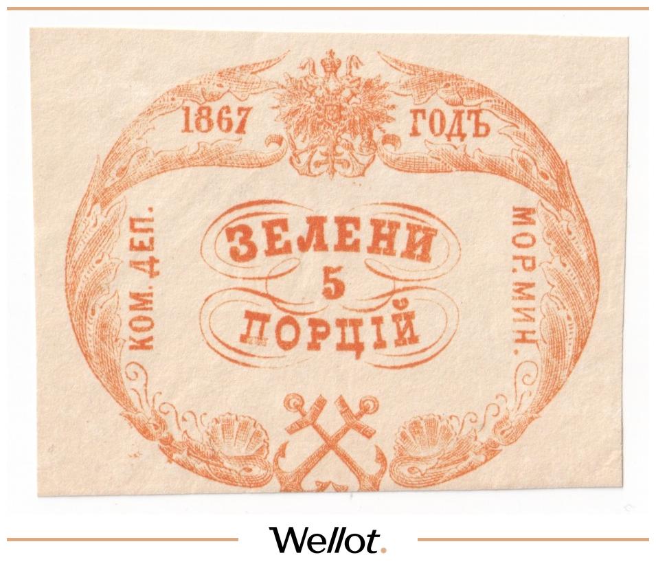 5 Порций Зелени 1867 Российская Империя Морское Министерство UNC-