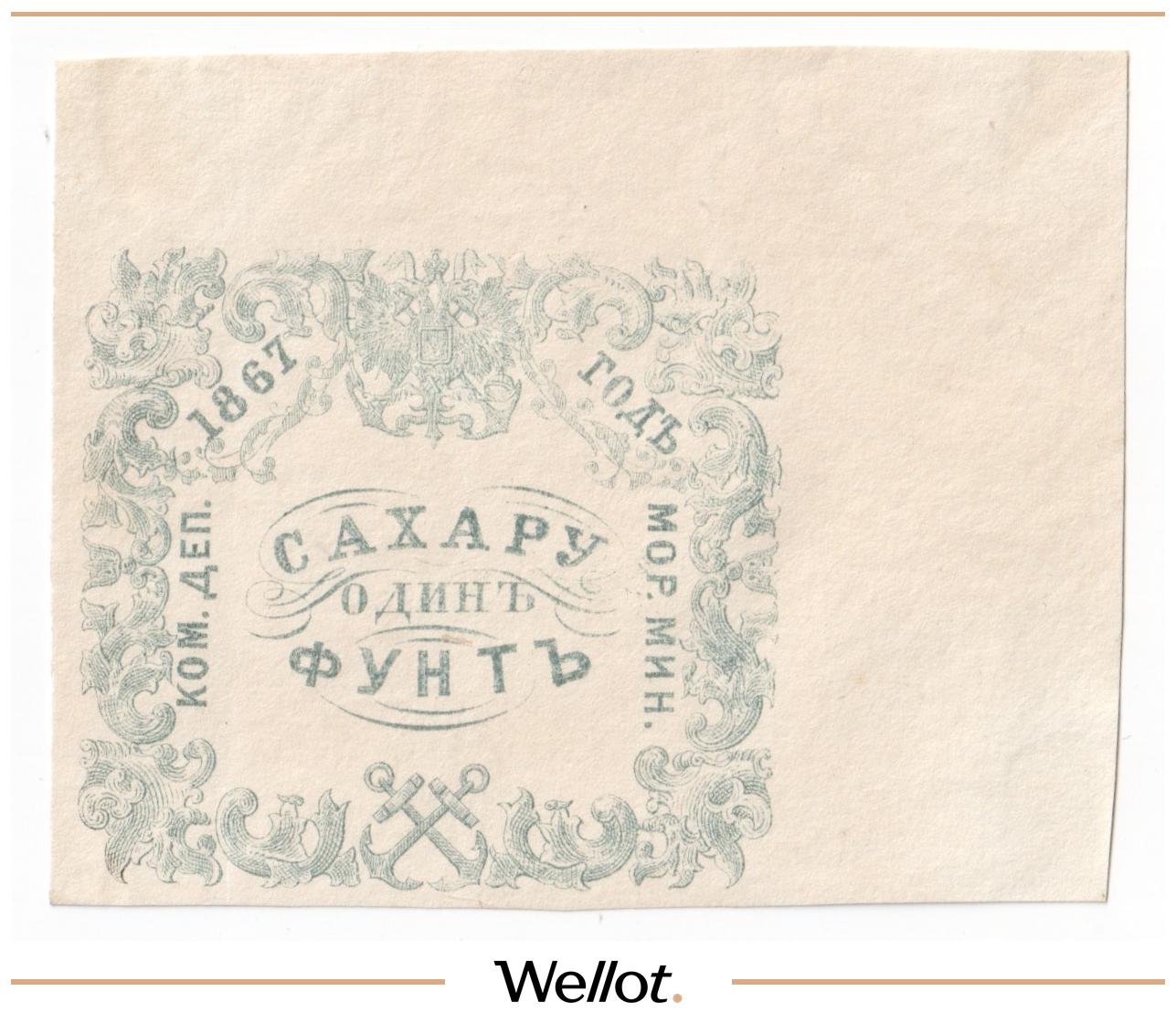 1 Фунт Сахару 1867 Российская Империя Морское Министерство UNC-
