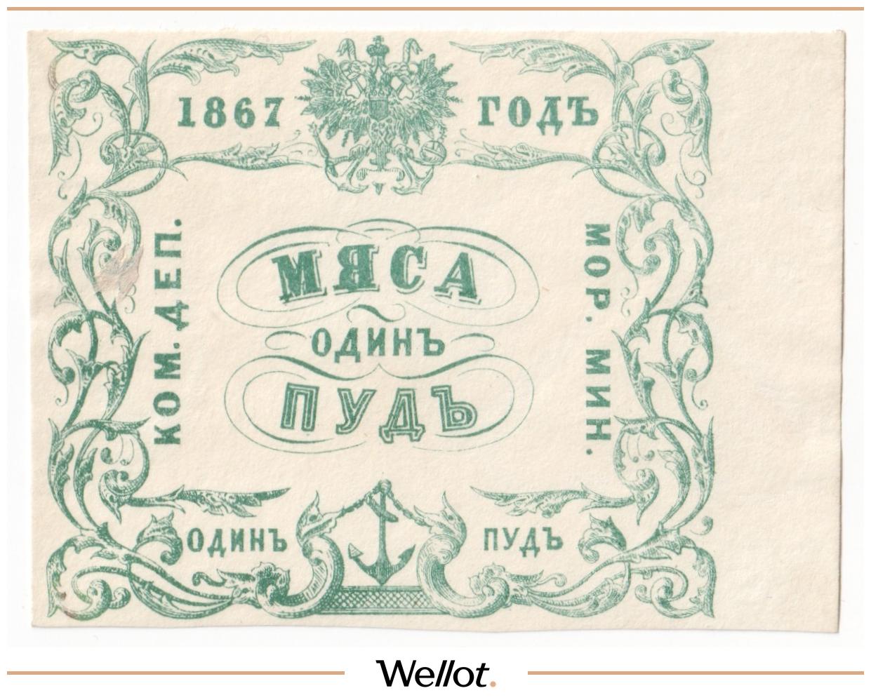 1 Пуд Мяса 1867 Российская Империя Морское Министерство UNC