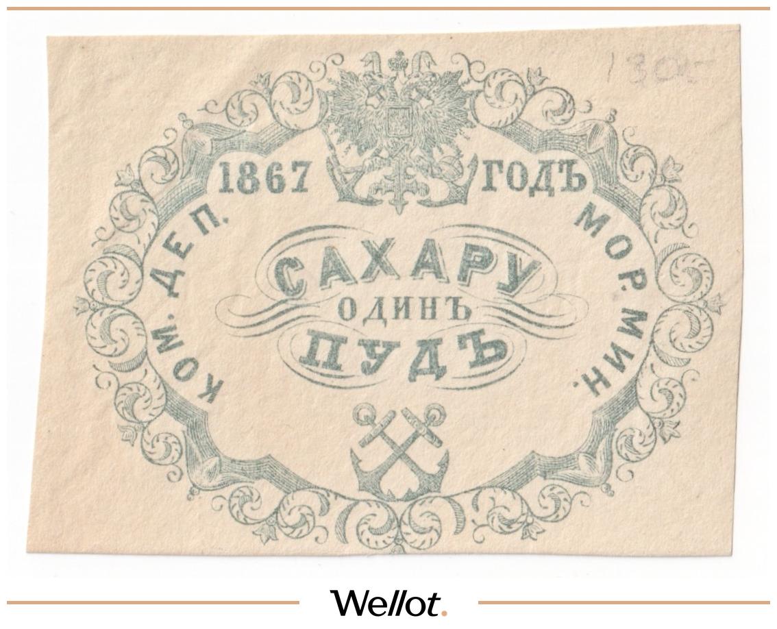 1 Пуд Сахару 1867 Российская Империя Морское Министерство АUNC