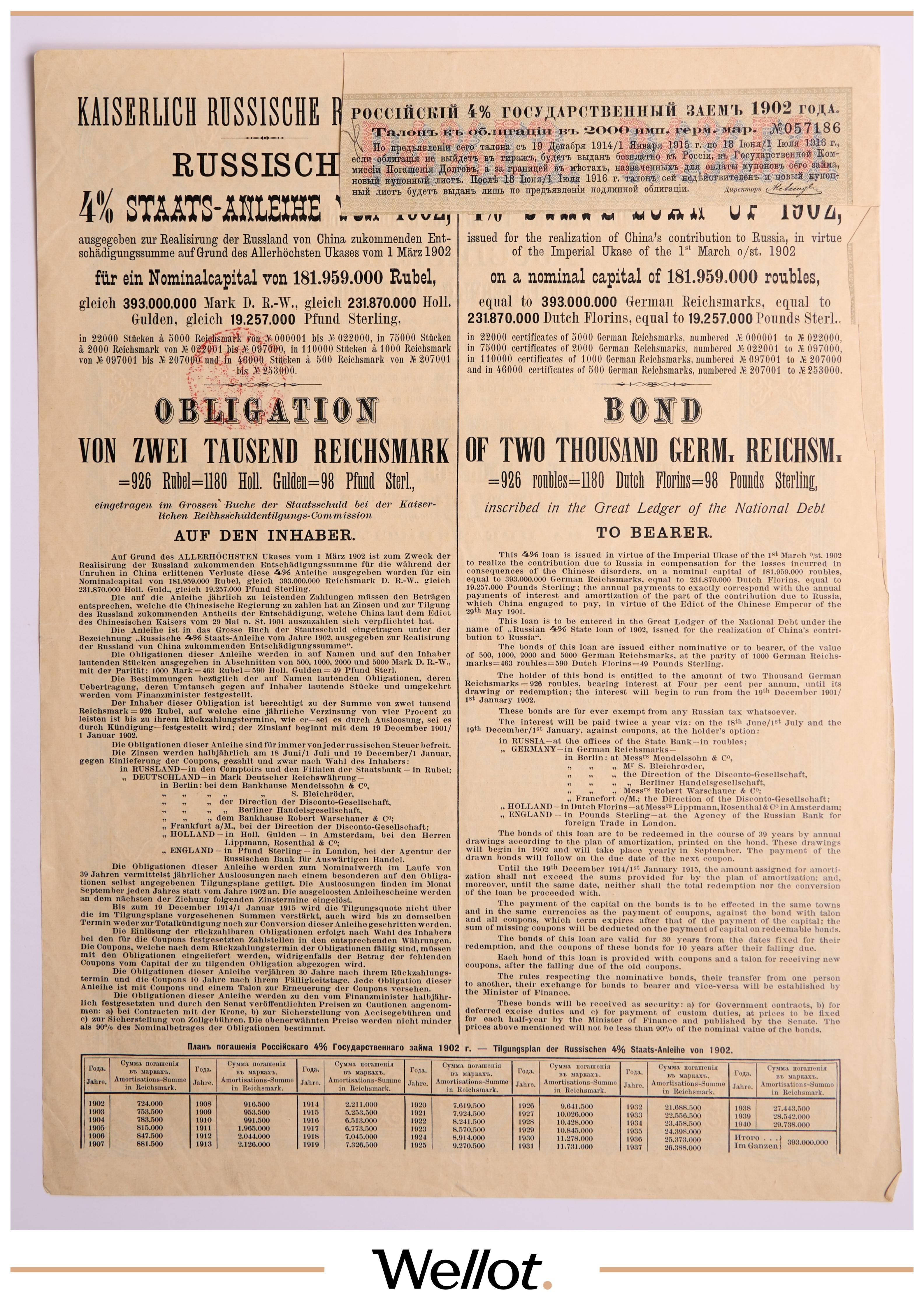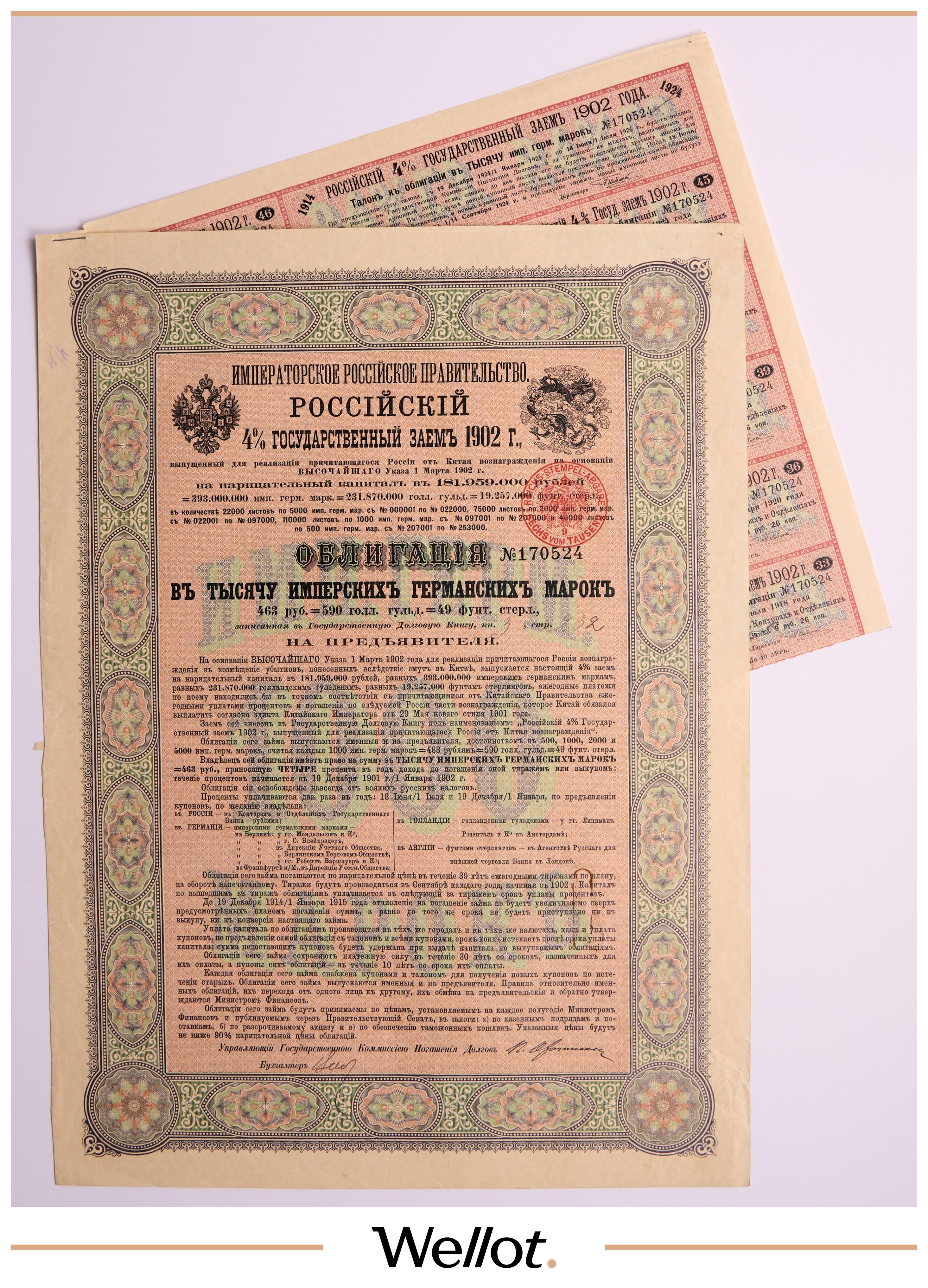 1000 Германских Марок 1902 Российская Империя 4% Государственный Заем