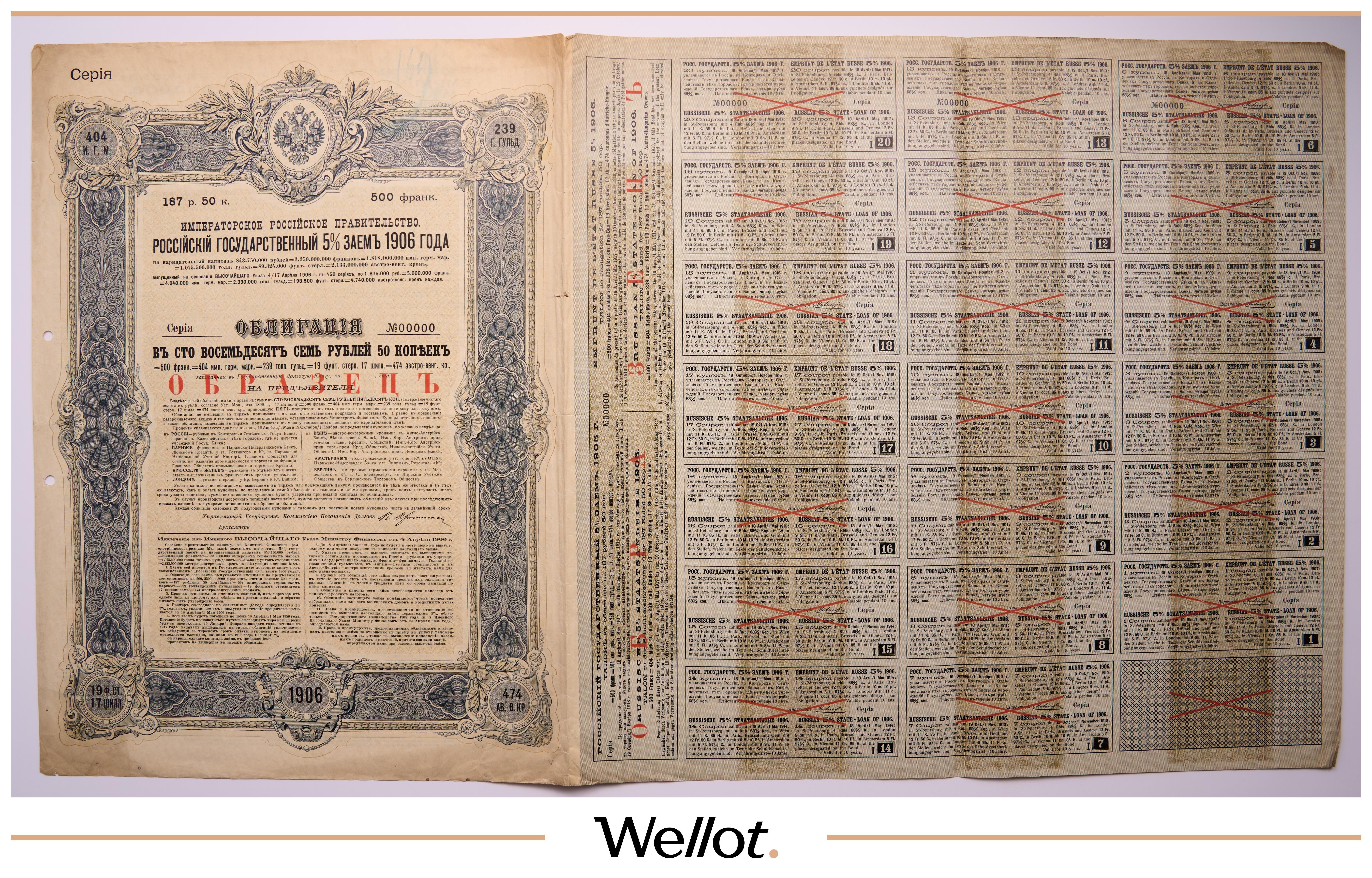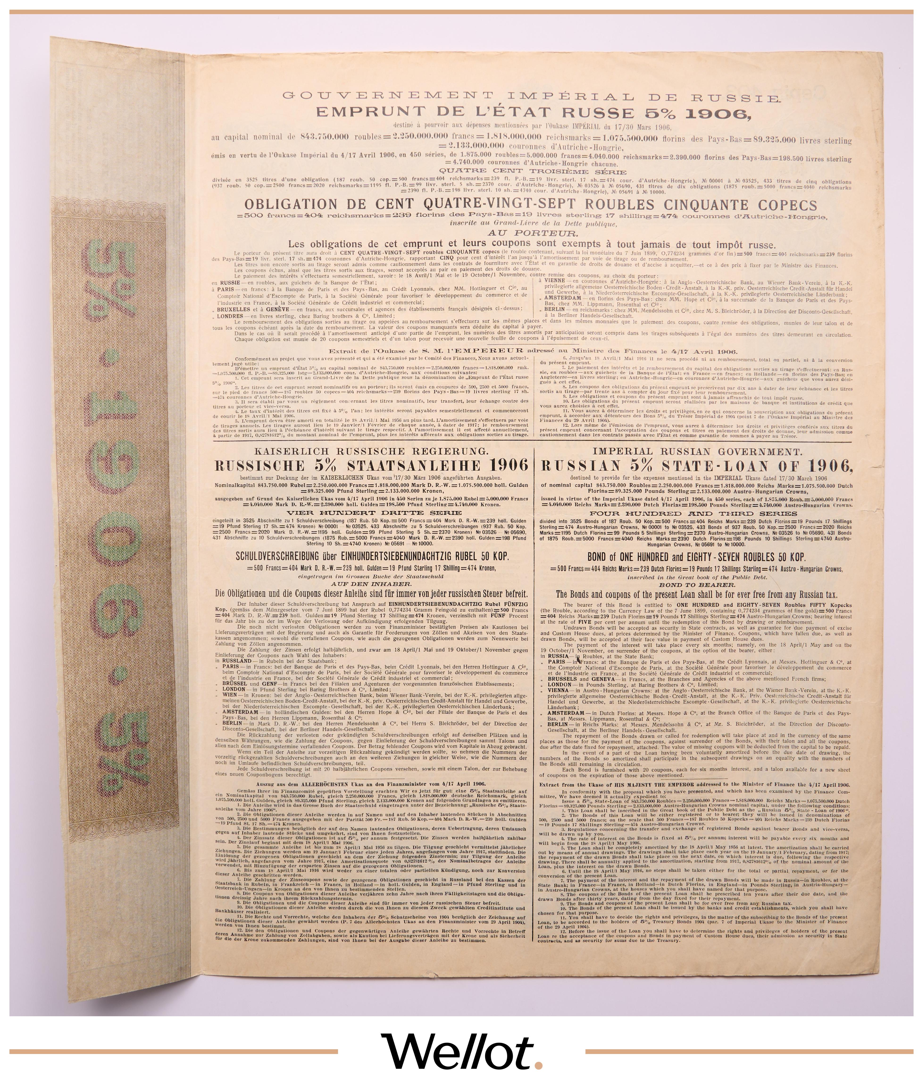 187 Рублей 50 Копеек 1906 Российская Империя Государственный 5% Заем Образец