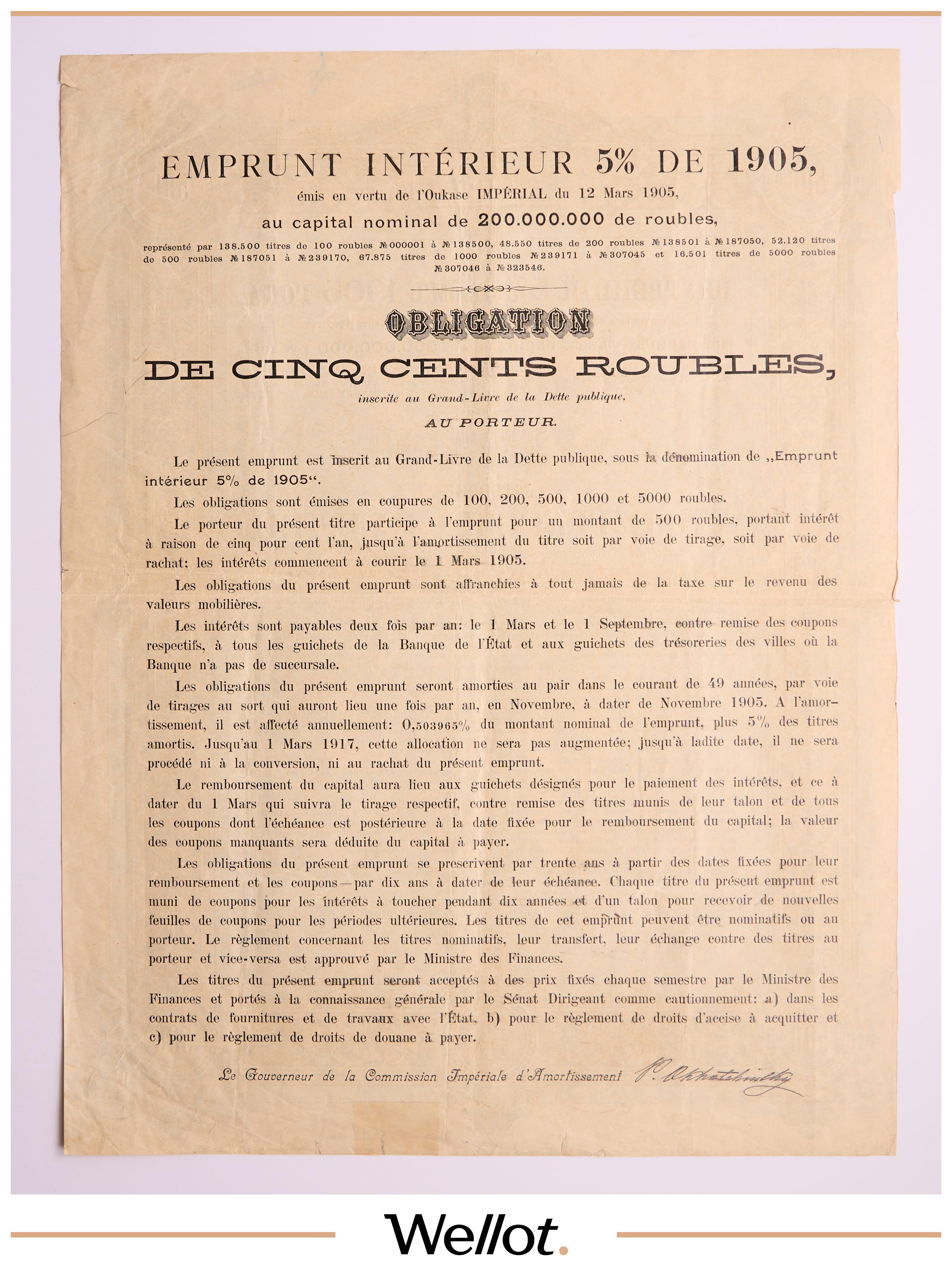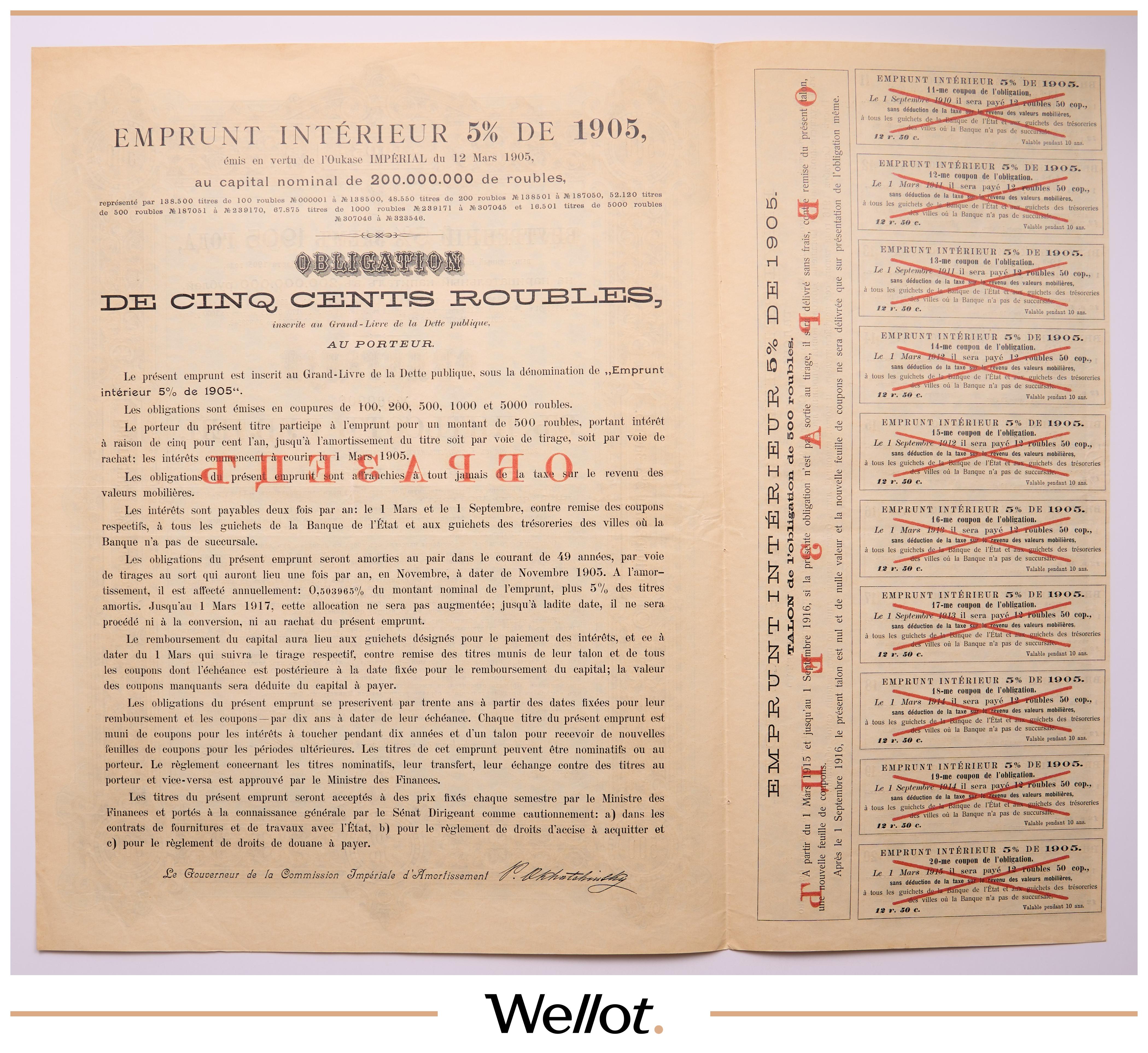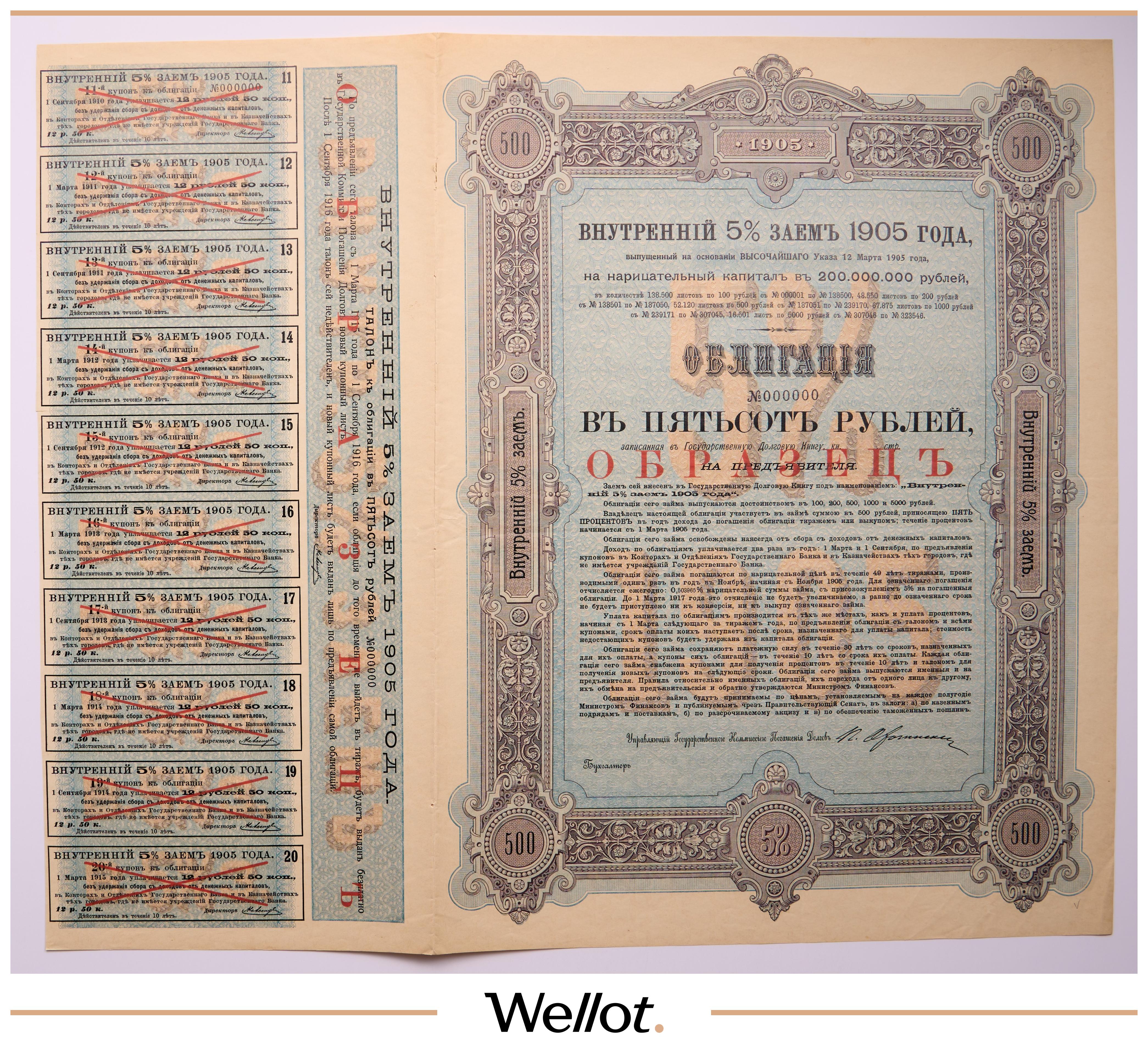 500 Рублей 1905 Российская Империя Внутренний 5% Заем Образец