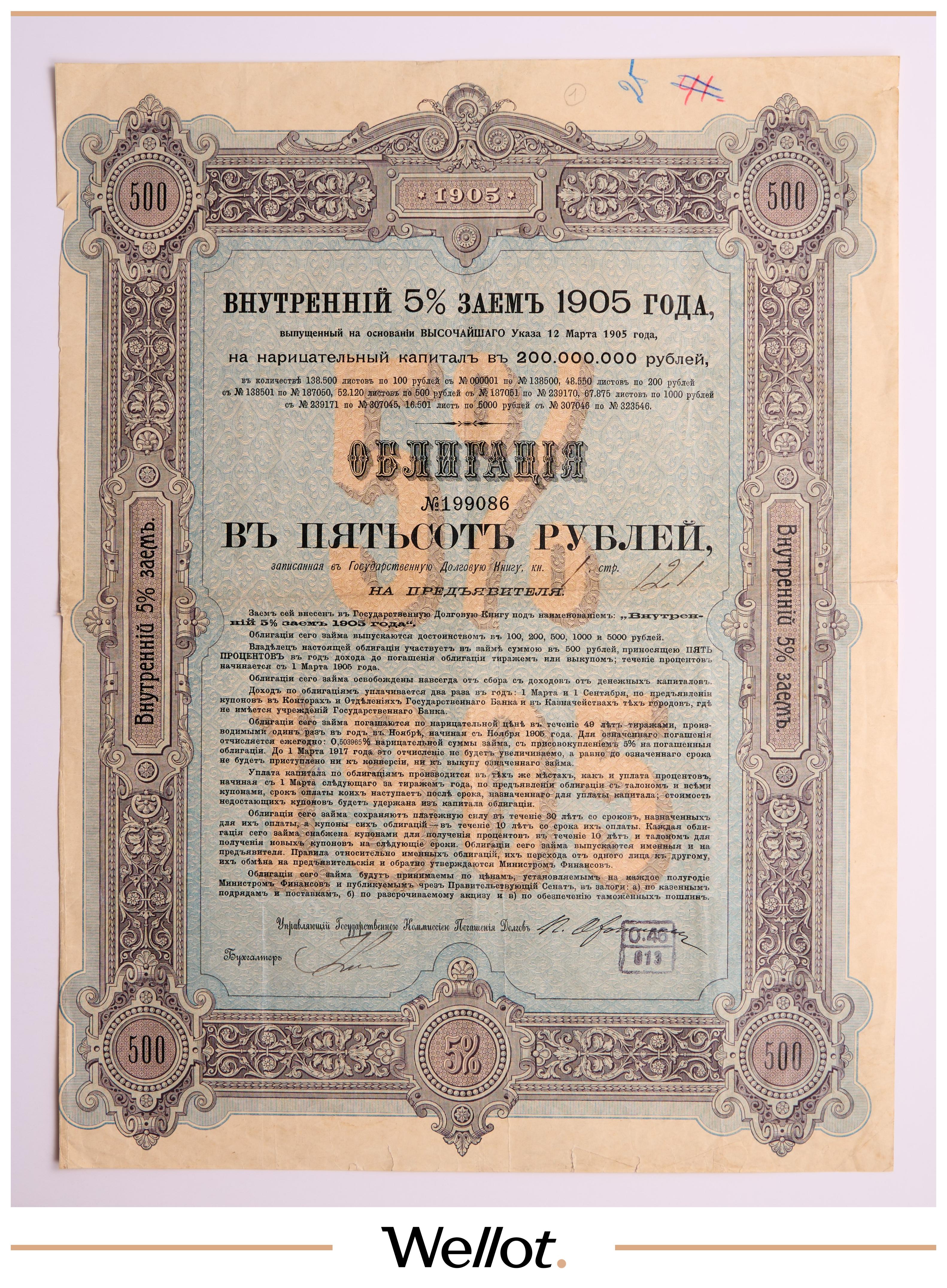 500 Рублей 1905 Российская Империя Внутренний 5% Заем