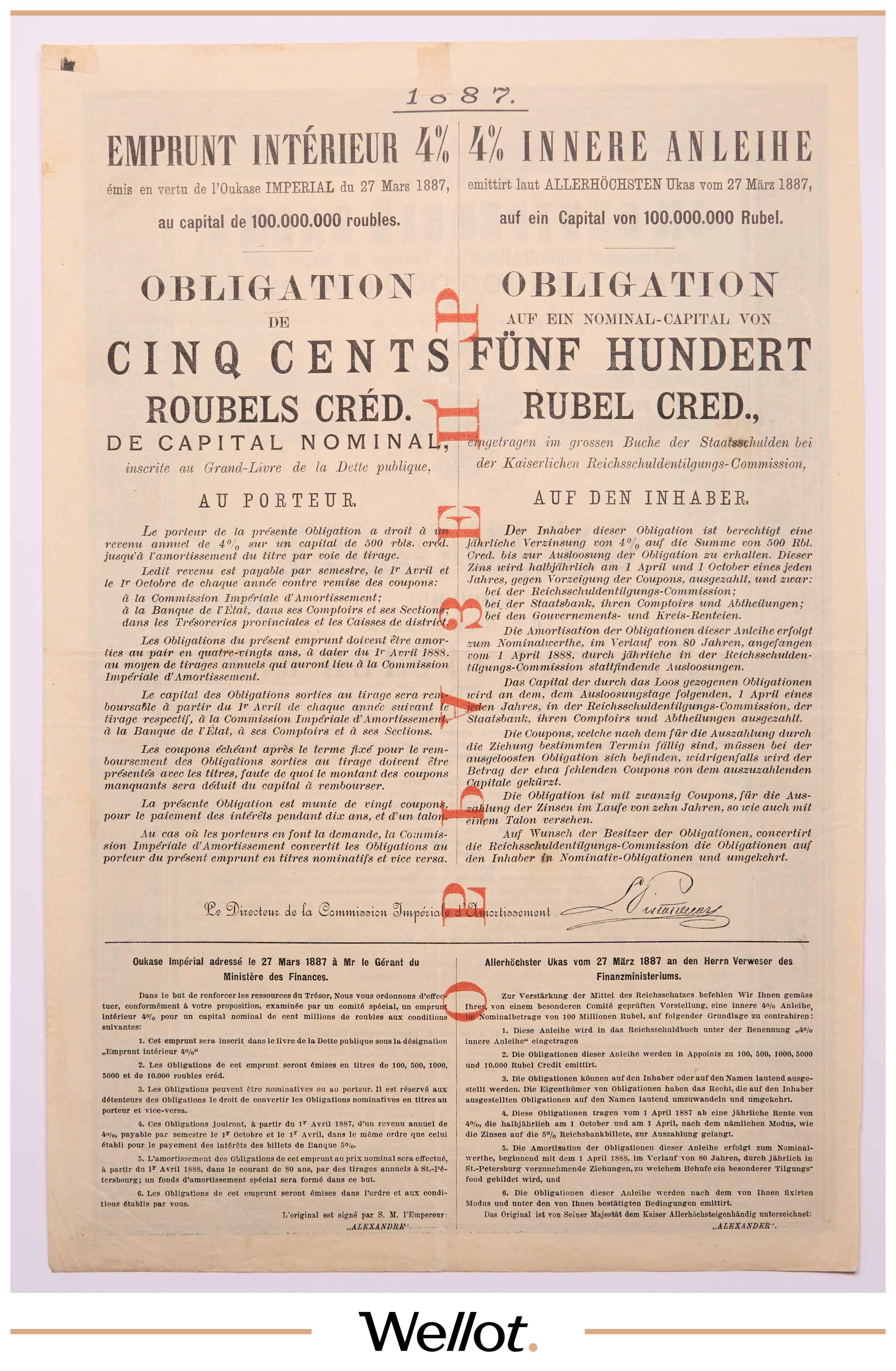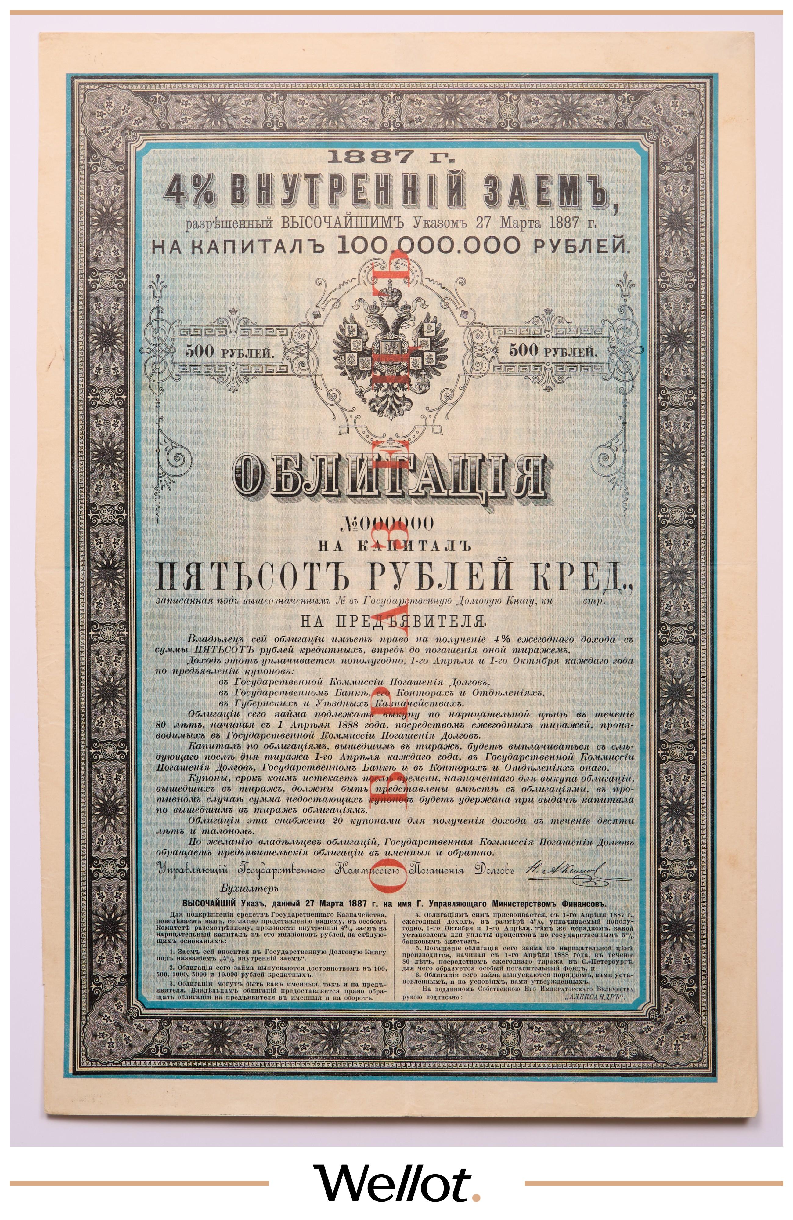 500 Рублей Кредитных 1887 Российская Империя 4% Внутренний Заем Образец