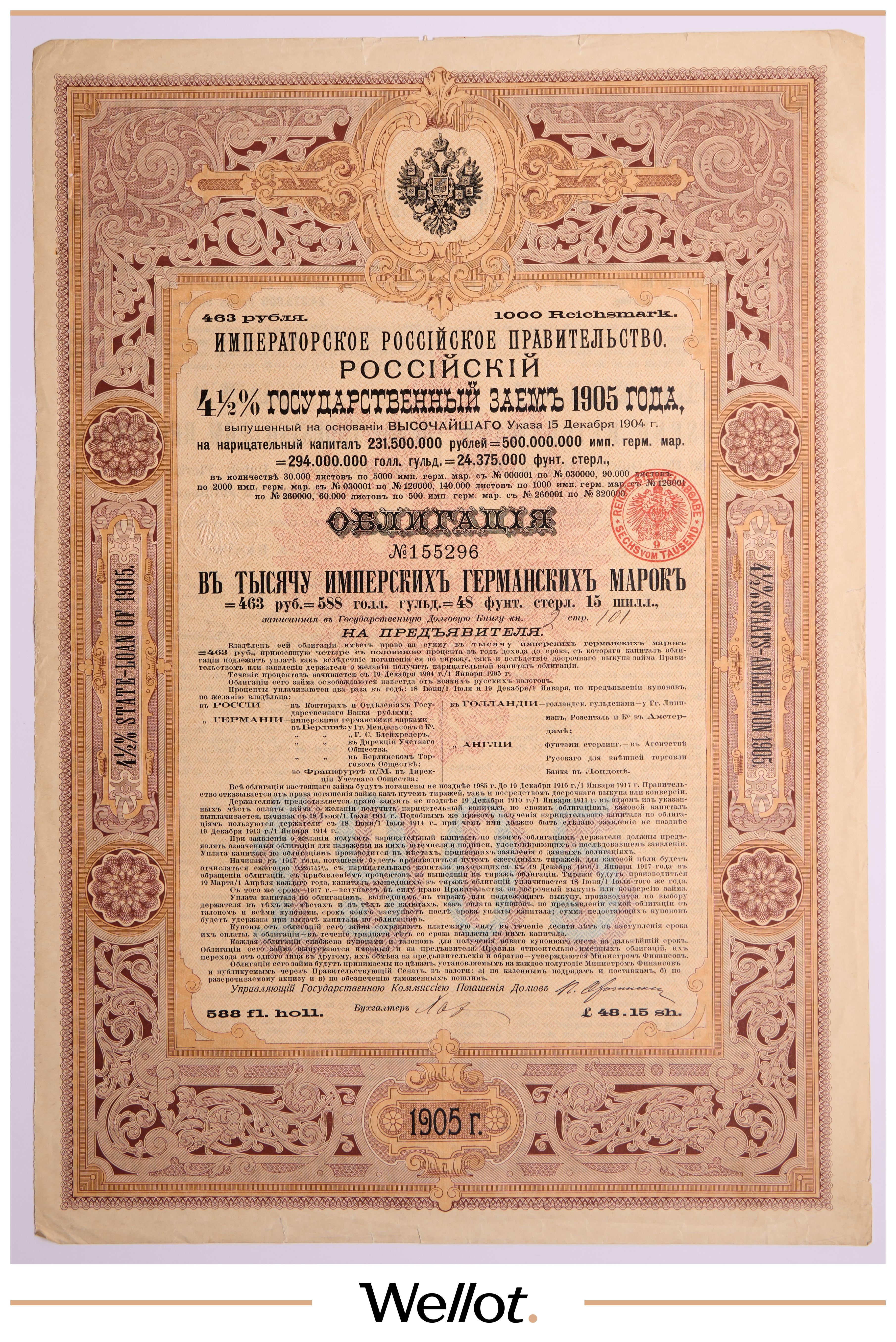 1000 Германских Марок 1905 Российская Империя 4,5% Государственный Заем