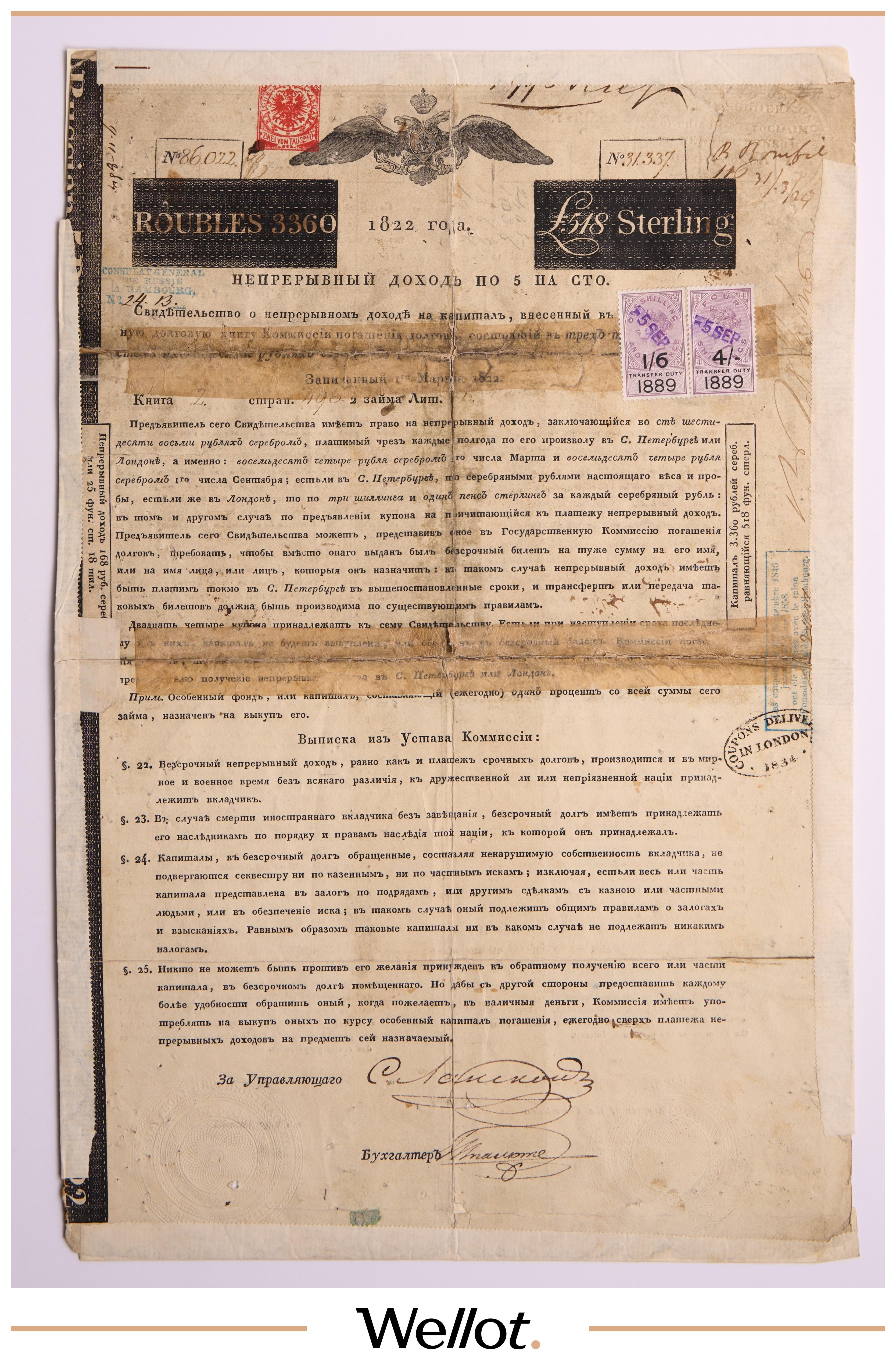 3360 Рублей 1822 Российская Империя Второй 5% Бессрочный Заем