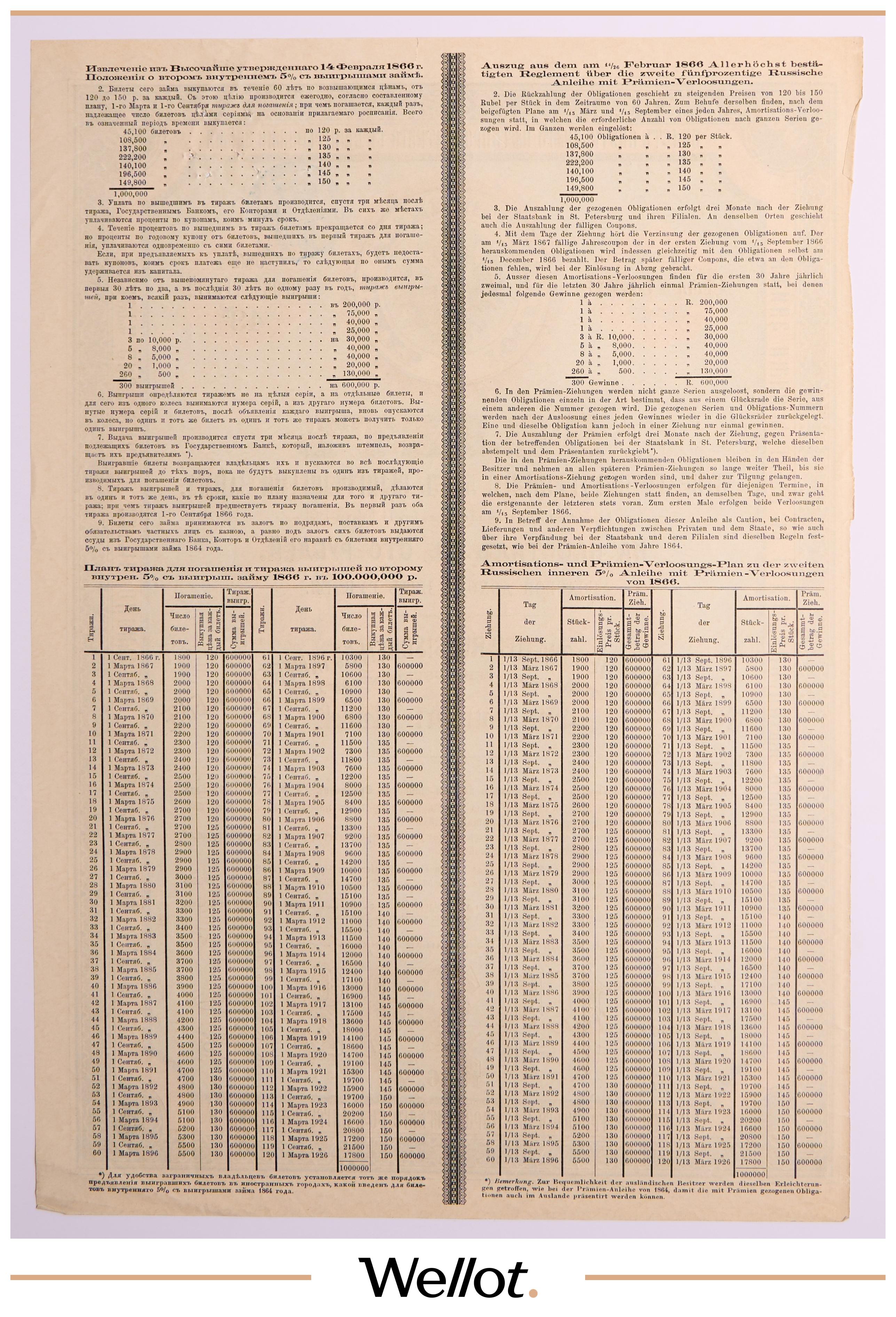 100 Рублей 1866 Российская Империя Второй Внутренний 5% с Выигрышами Заем