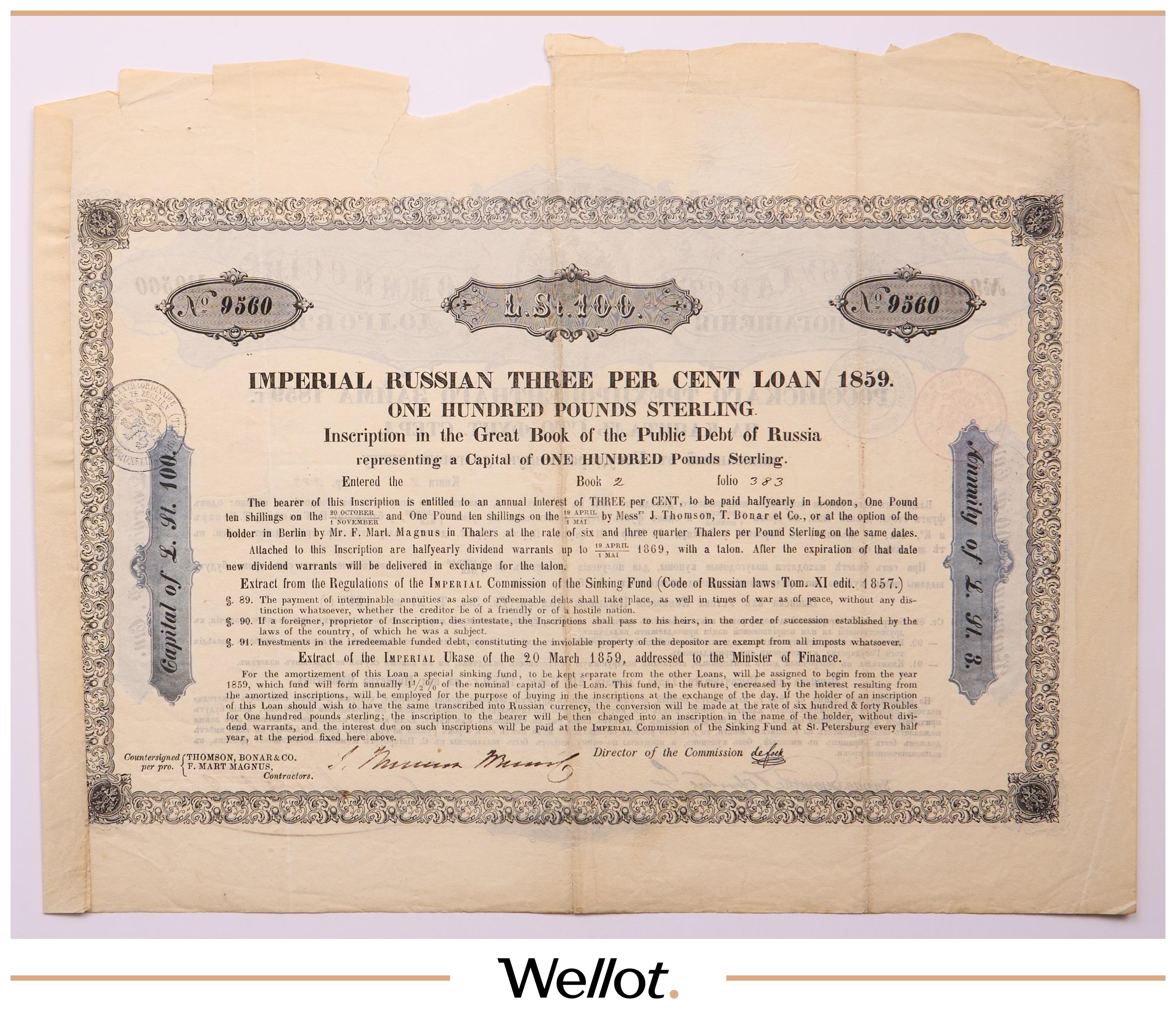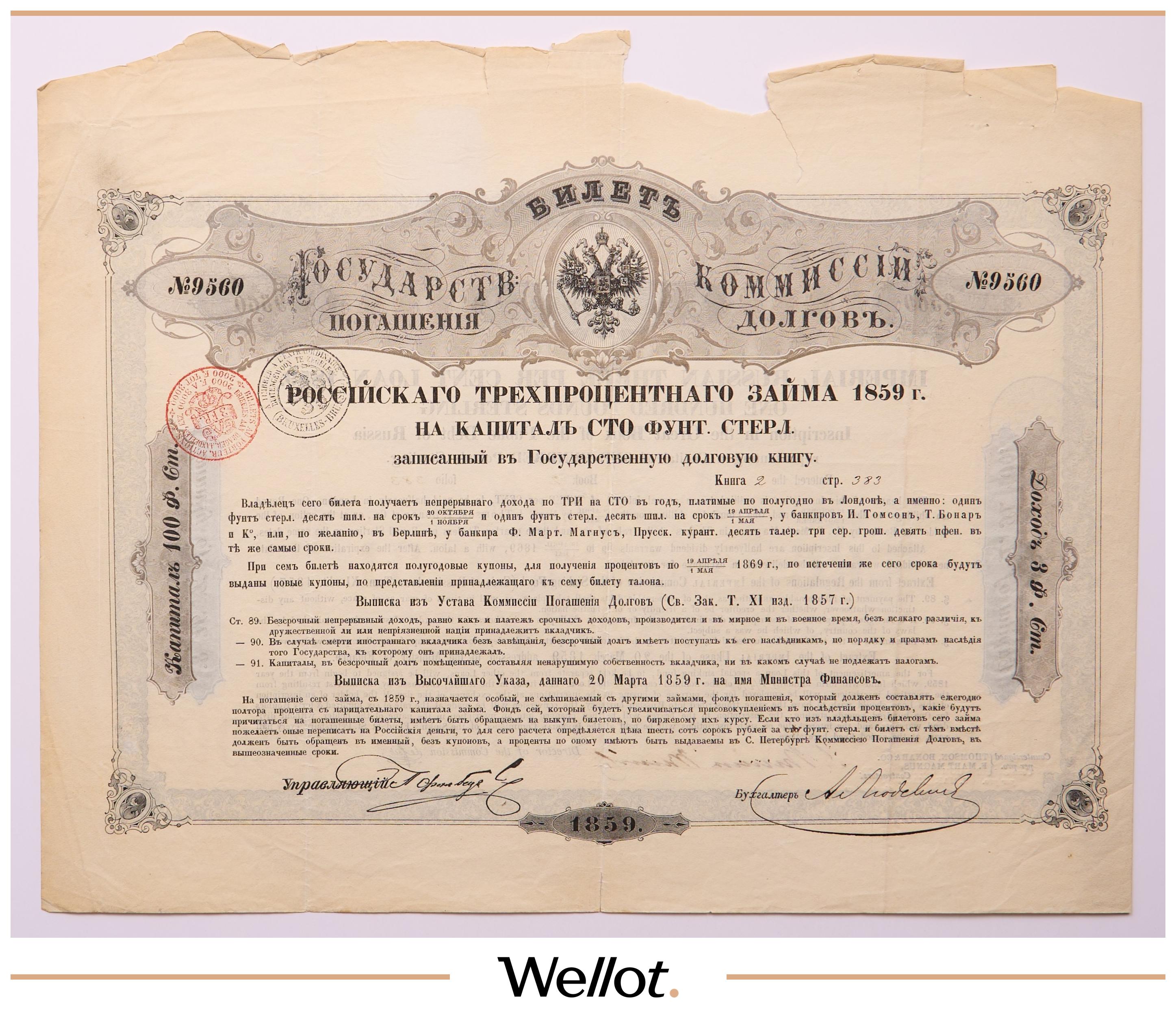100 Фунтов Стерлингов 1859 Российская Империя Первый 3% Заем