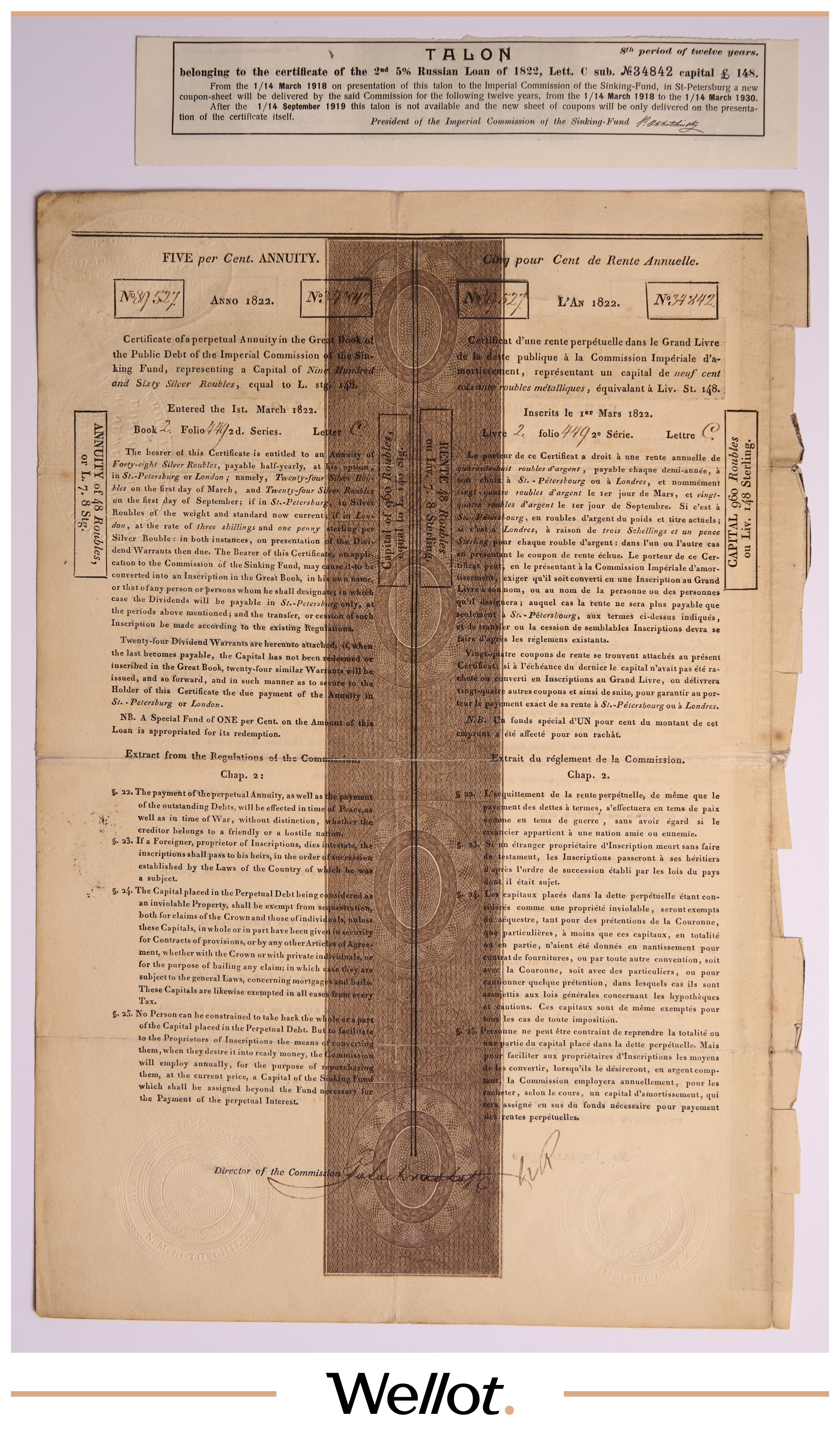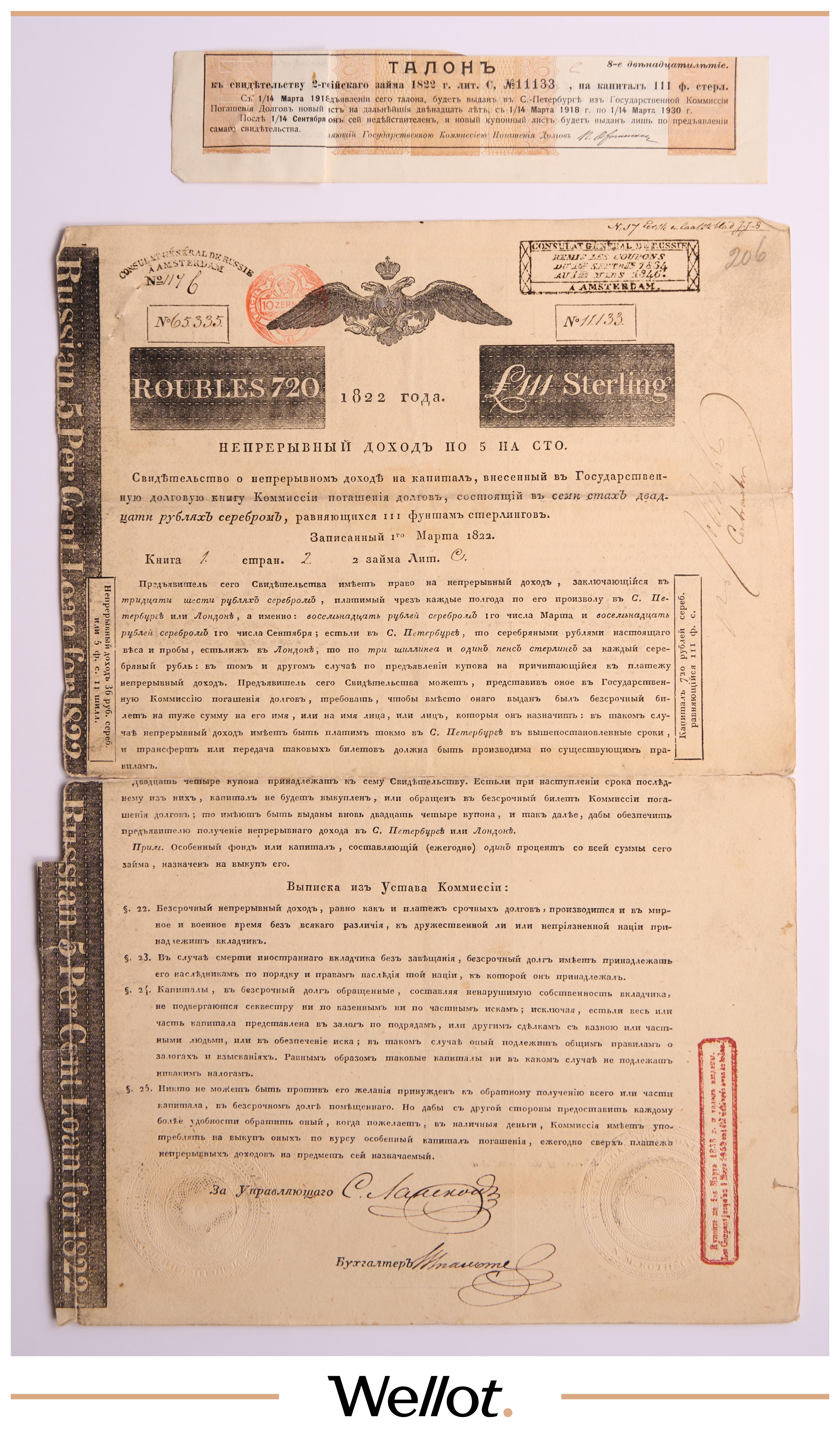 720 Рублей 1822 Российская Империя Второй 5% Бессрочный Заем