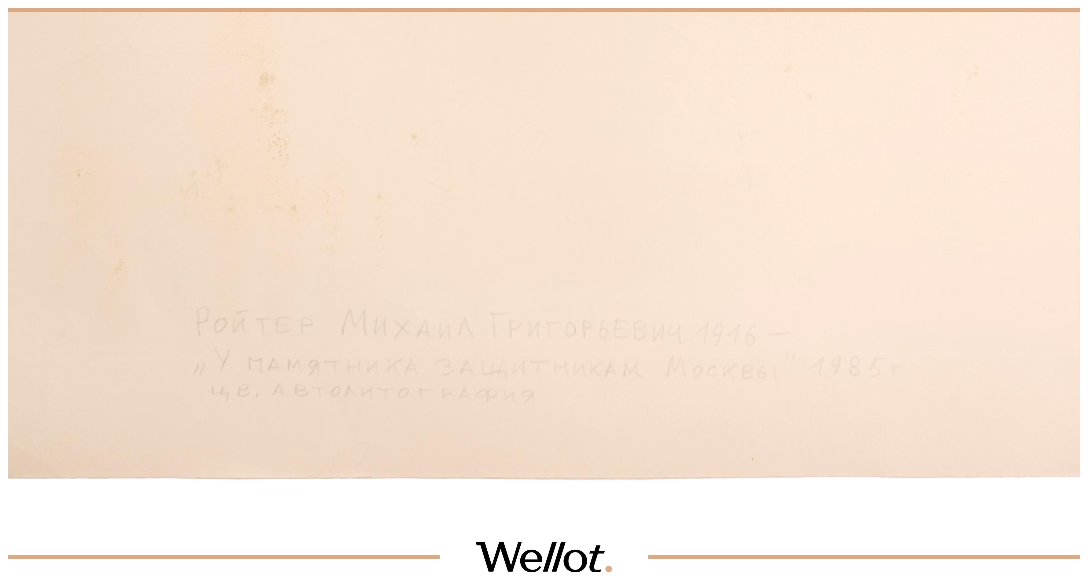 Михаил Ройтер (1916-1993) — советский/российский художник‑график, работавший в различных графических техниках (в т.ч. литография/автолитография). В его работах часто встречаются городские мотивы, жанровые спортивные сцены, а также мемориальная тема.