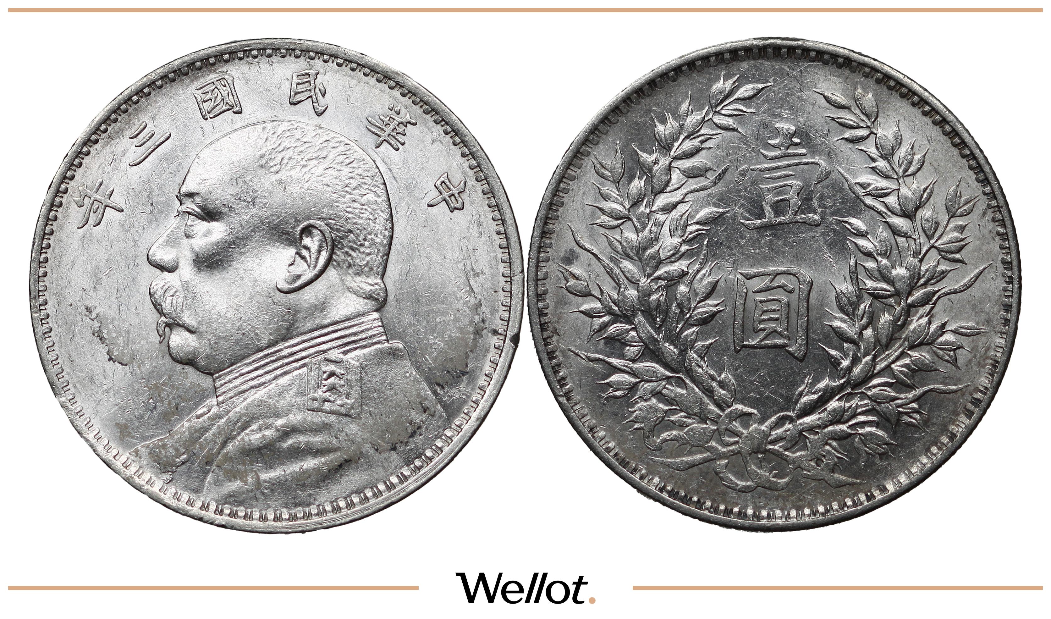 Серебро 890 проба, Вес 26,5 грамм. Состояние отличное, монета в обращении не была. Юа́нь Шика́й (кит. трад. 袁世凱, упр. 袁世凯, пиньинь Yuán Shìkǎi; 16 сентября 1859, Хэнань — 6 июня 1916) — китайский военный лидер и политический деятель эпохи заката династии Цин и первых лет Китайской Республики. Первый Президент Китайской Республики и последний Император Китая. Отличный коллекционный экземпляр с блеском.