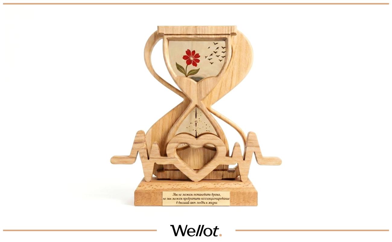 Дерево, жесть. Высота 33 см. Длина 31 см. Ширина 10 см. Данный объект создан искусственным интеллектом, который верит в людей, в то что мы сможем найти способ как побороть самую страшную болезнь в мире. Специально для благотворительного аукциона Wellot. «Мы не можем остановить время, но мы можем превратить коллекционирование в высший акт любви к жизни»