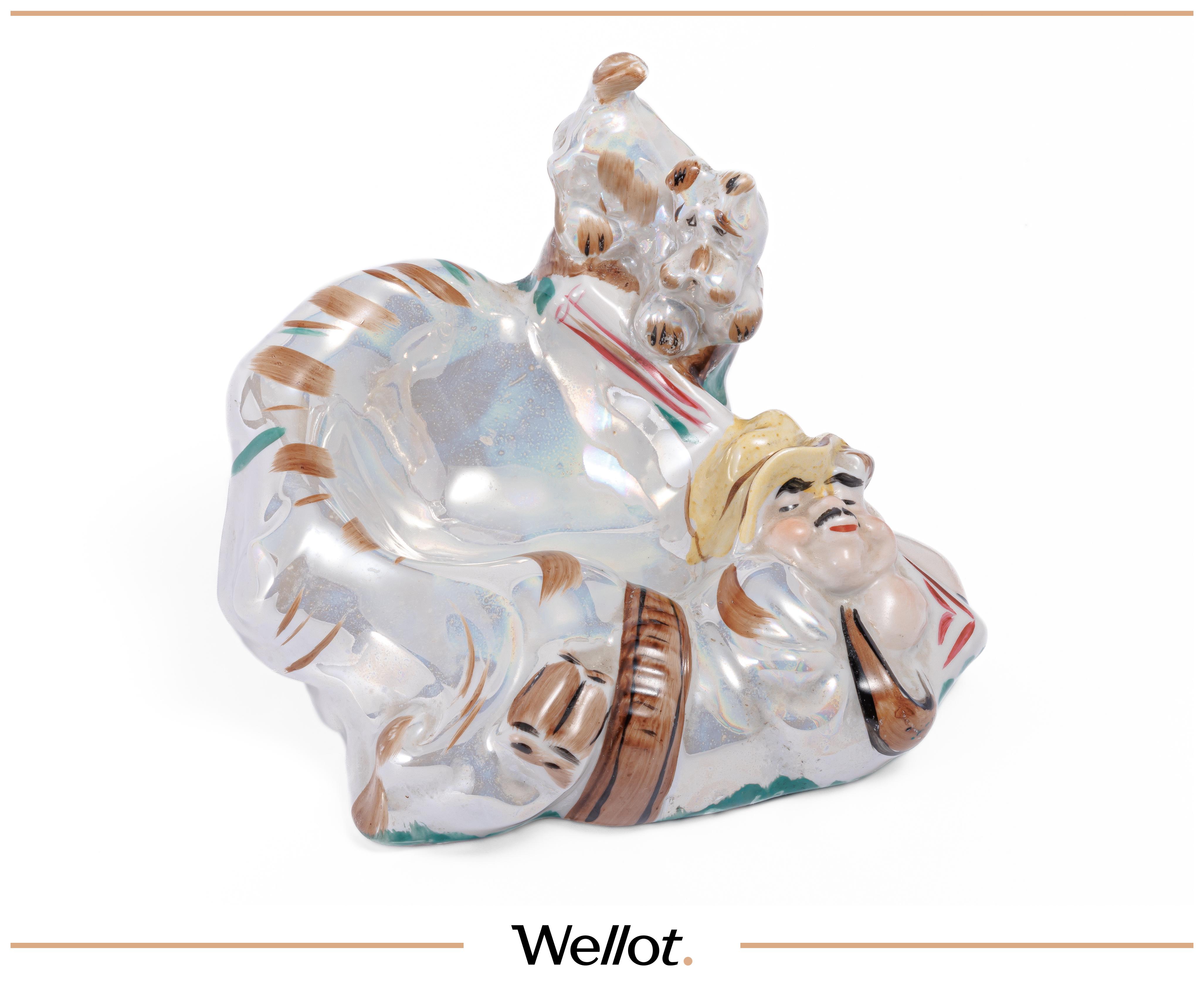 Фаянс, майолика. Размеры 25,3 х 10,5 х 7 см. Автор формы В.А. Сергеев. Исполнитель росписи Ф.Н.Крохина. Небольшой скол на «задней лапе». Данная статуэтка была представлена на экспозиции «Оттепель» в Государственной Третьяковской галерее в 2017 года. Каталог выставки прилагается. Настоящий музейный провенанс!
