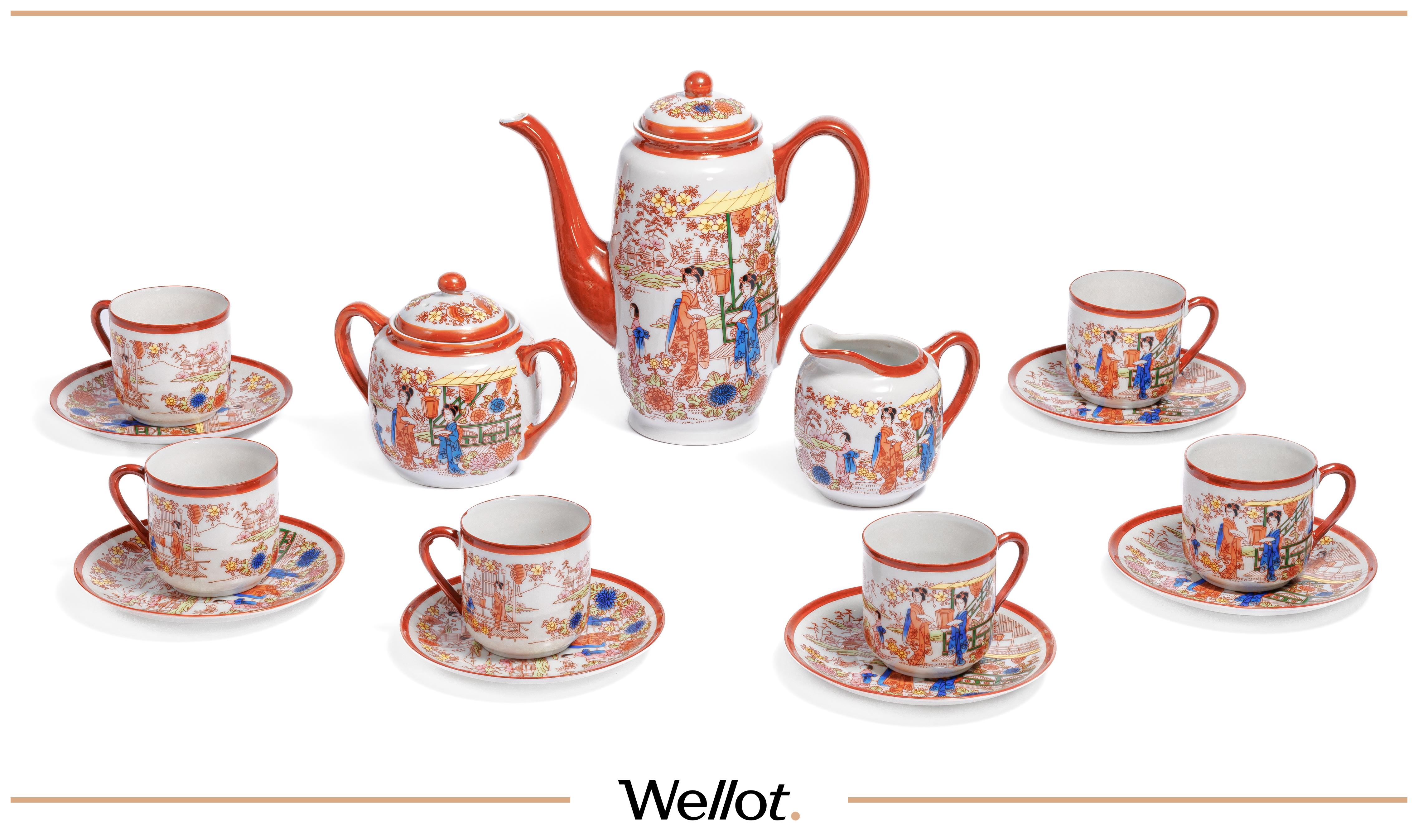 Фарфор. 6 пар (кружка и блюдце), сахарница, молочница, кофейник. Миниатюрная посуда из тончайшего японского фарфора для изысканной кофейной трапезы. Идеальное состояние (новый).