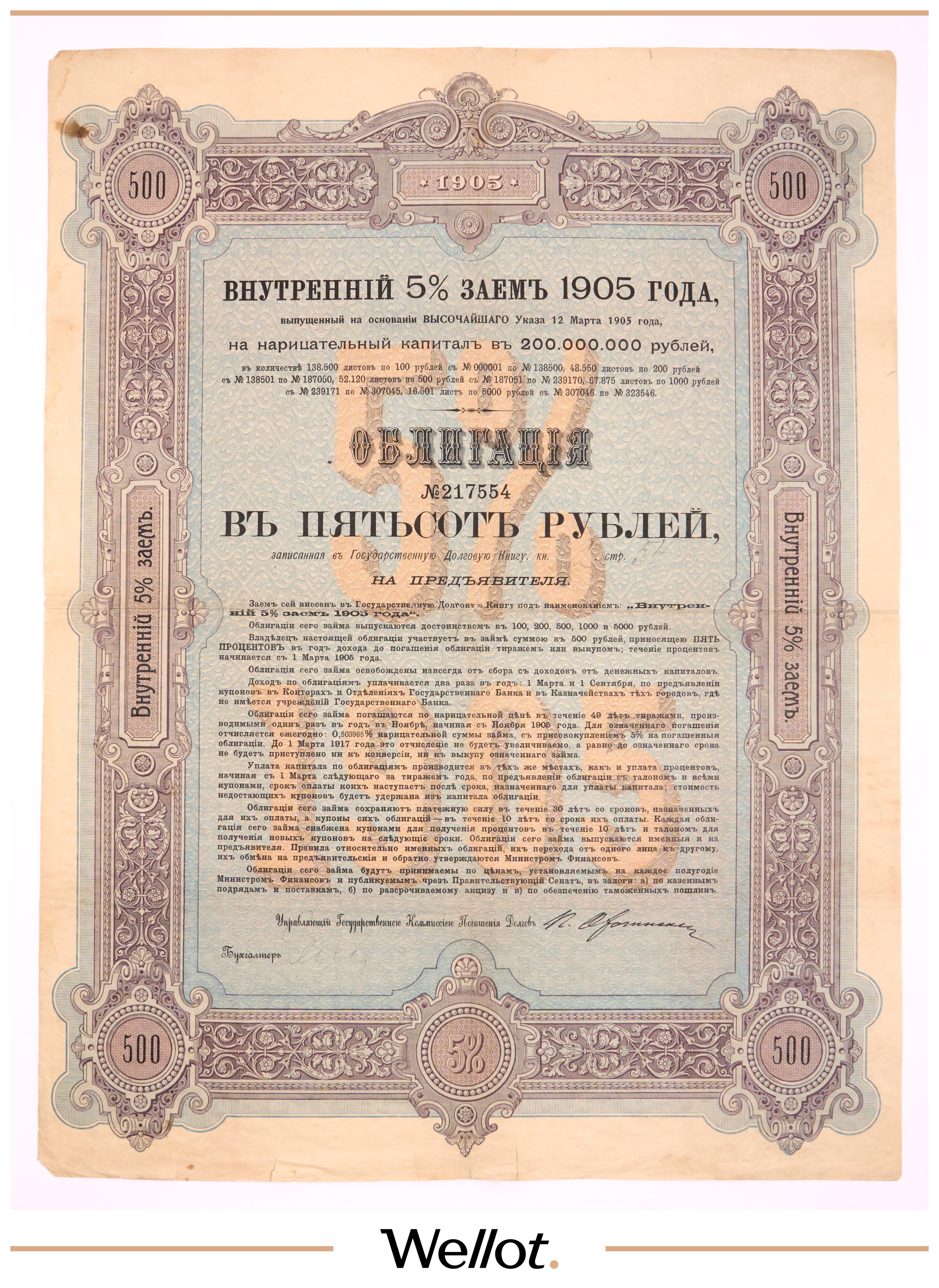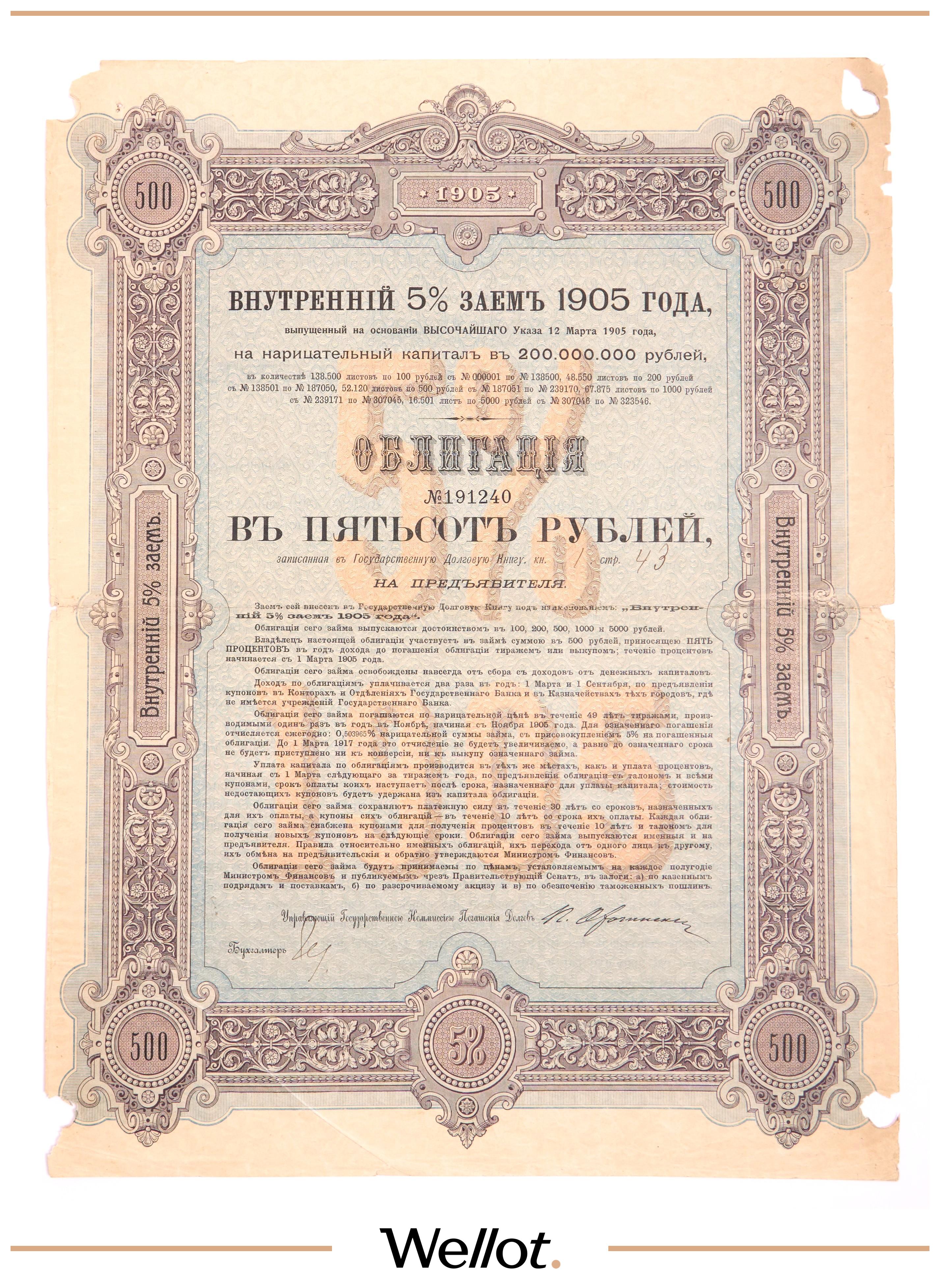 500 Рублей 1905 Российская Империя Внутренний 5% Заем