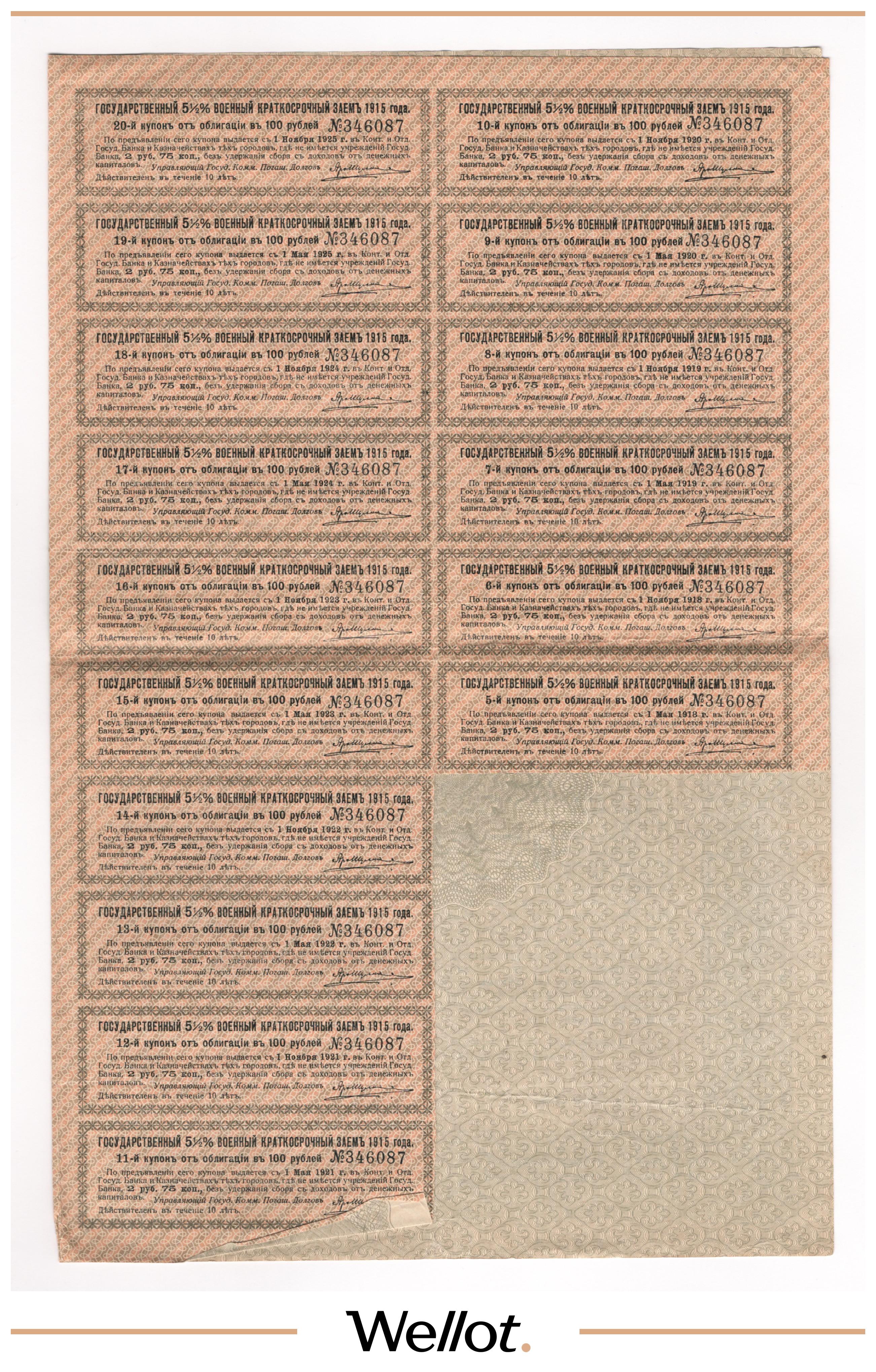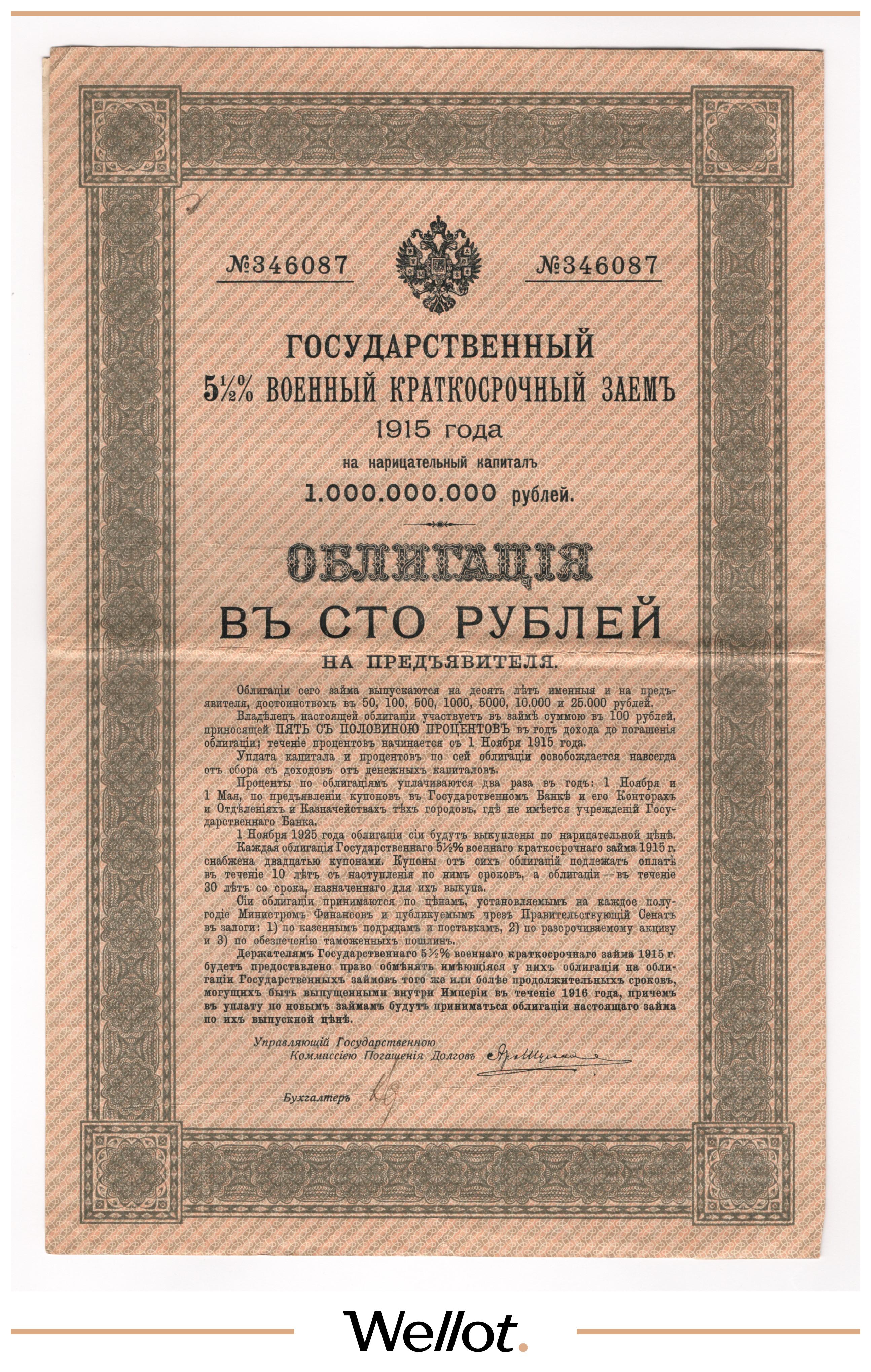 100 Рублей 1915 Российская Империя Государственный 5,5% Военный Краткосрочный Заем