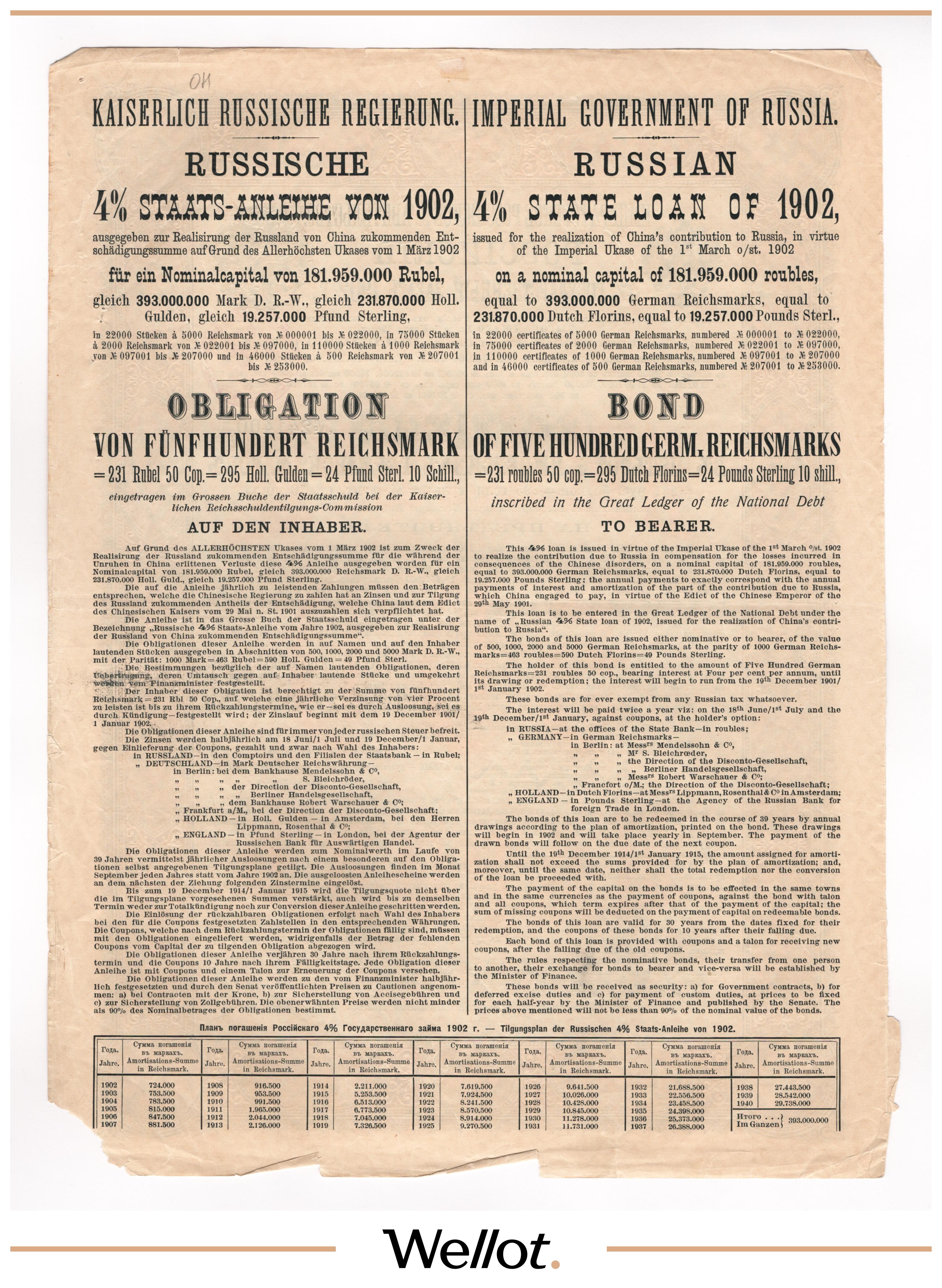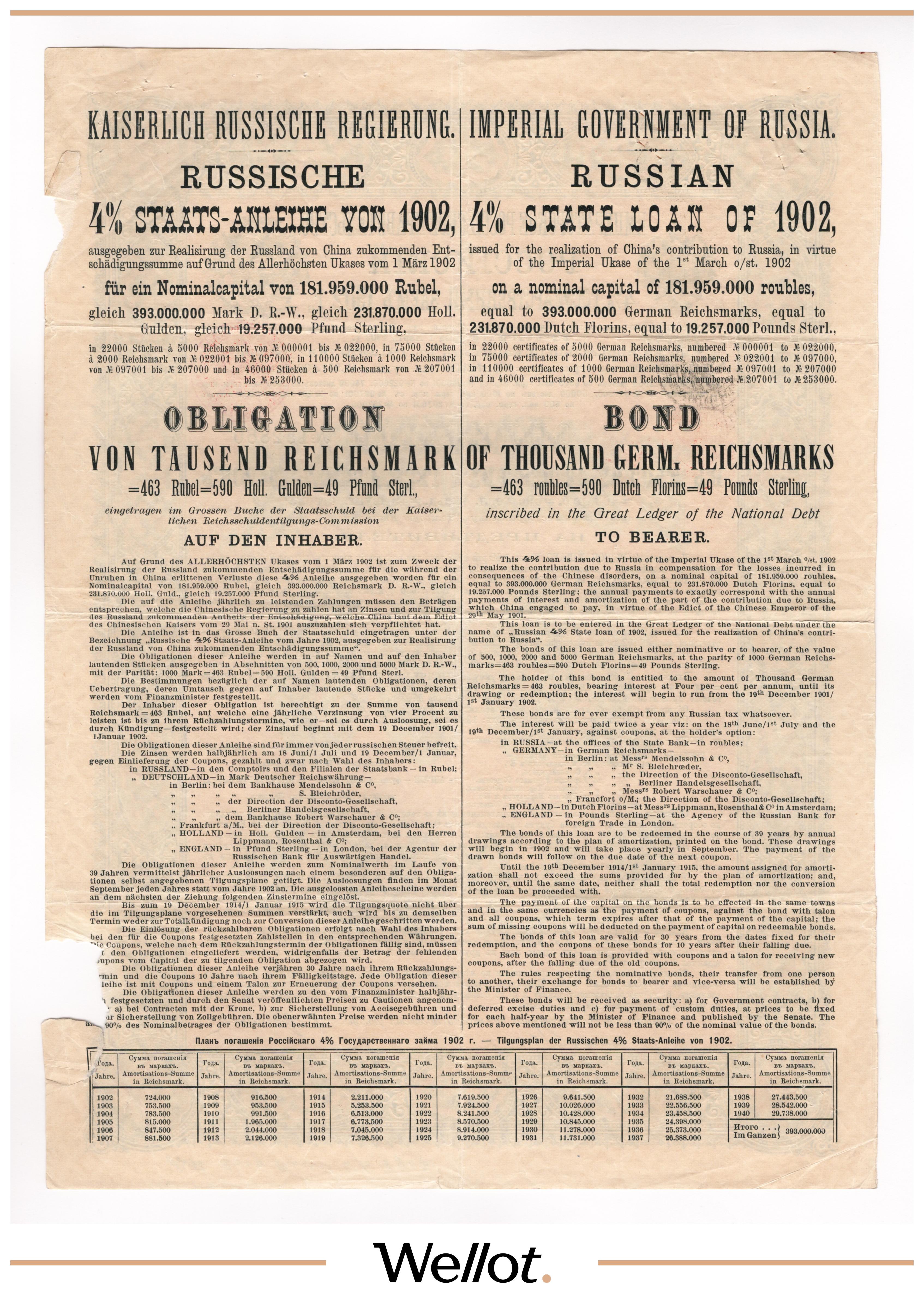500 Германских Марок 1902 Российская Империя 4% Государственный Заем
