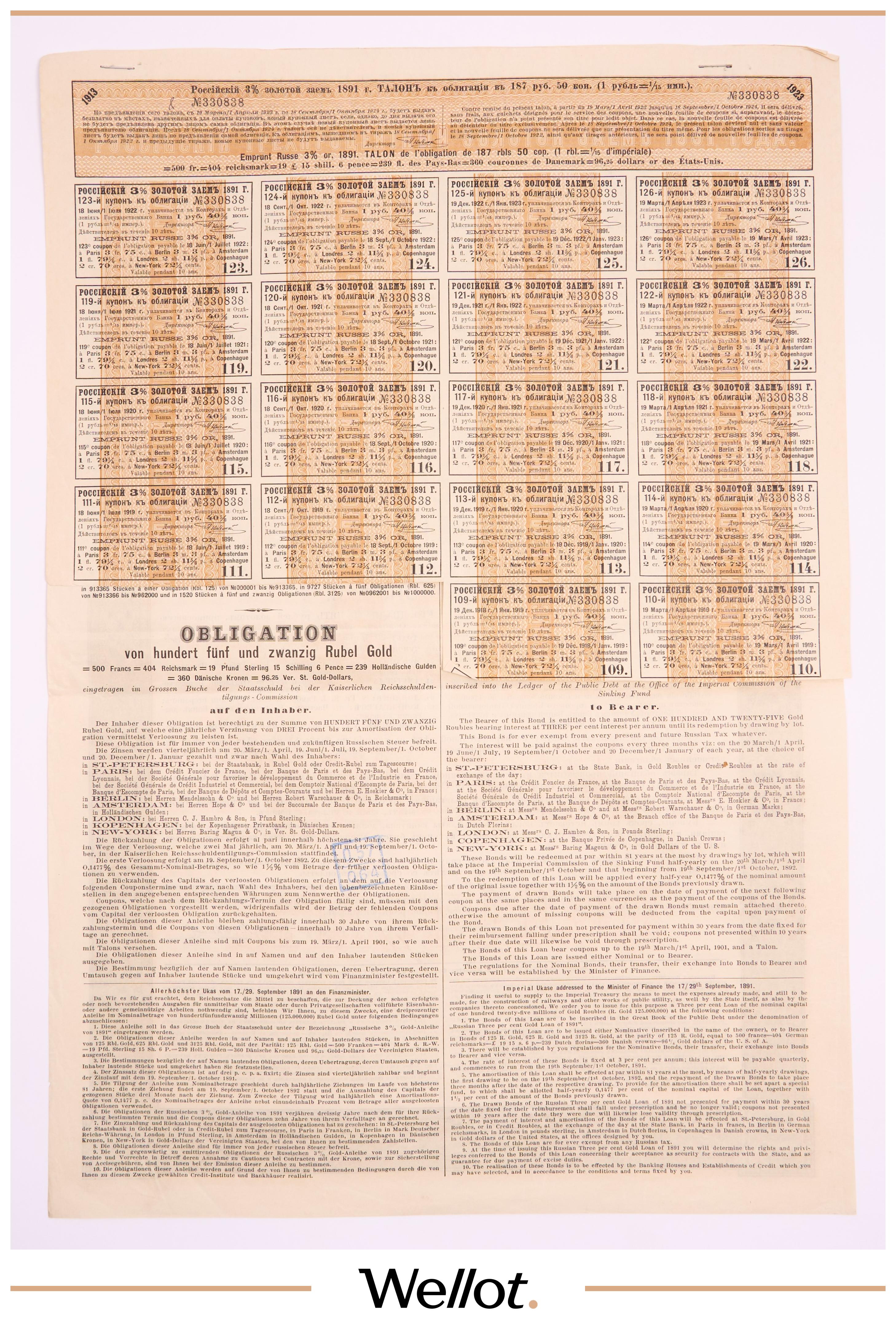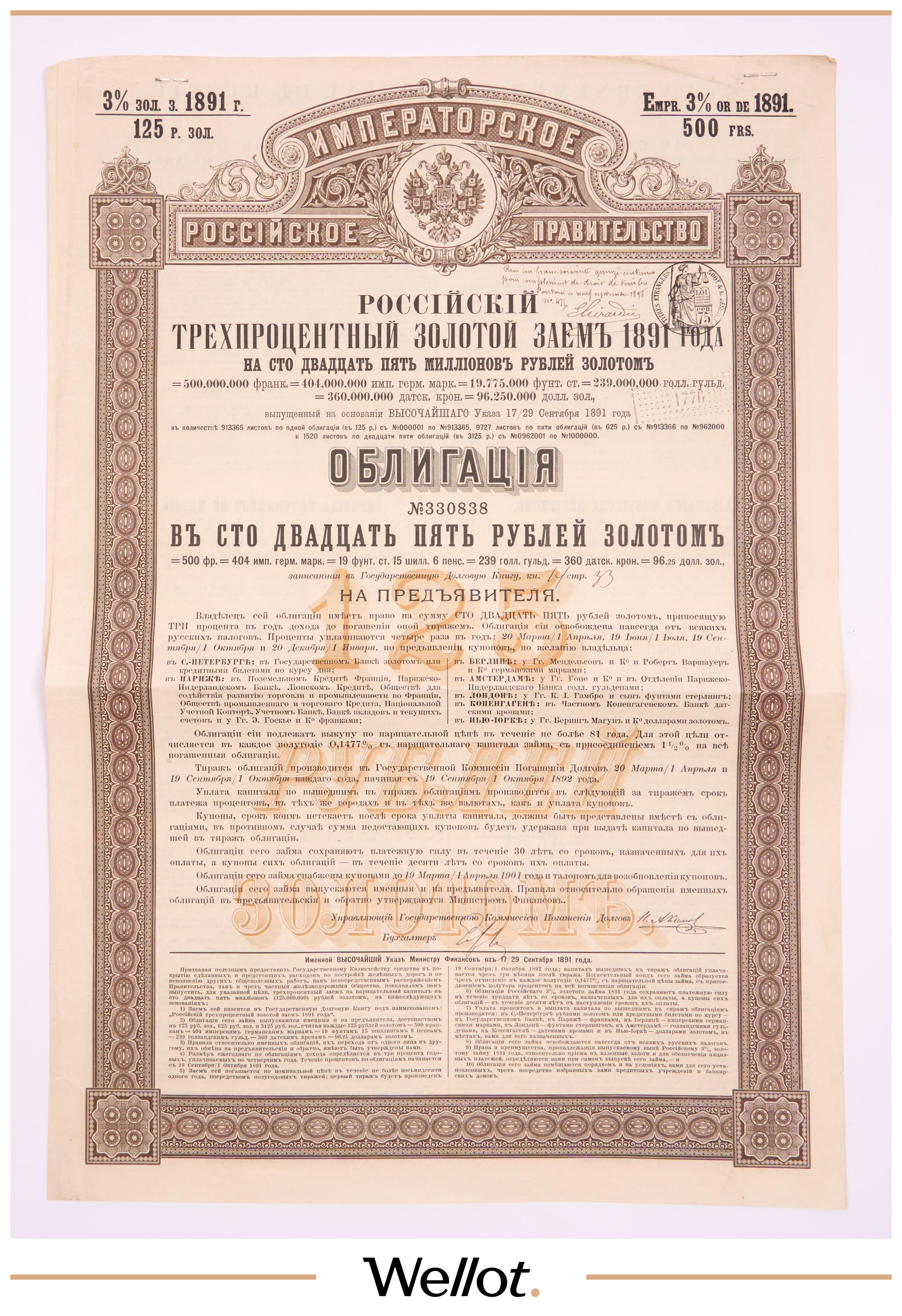 125 Рублей Золотом 1891 Российская Империя 3% Золотой Заем