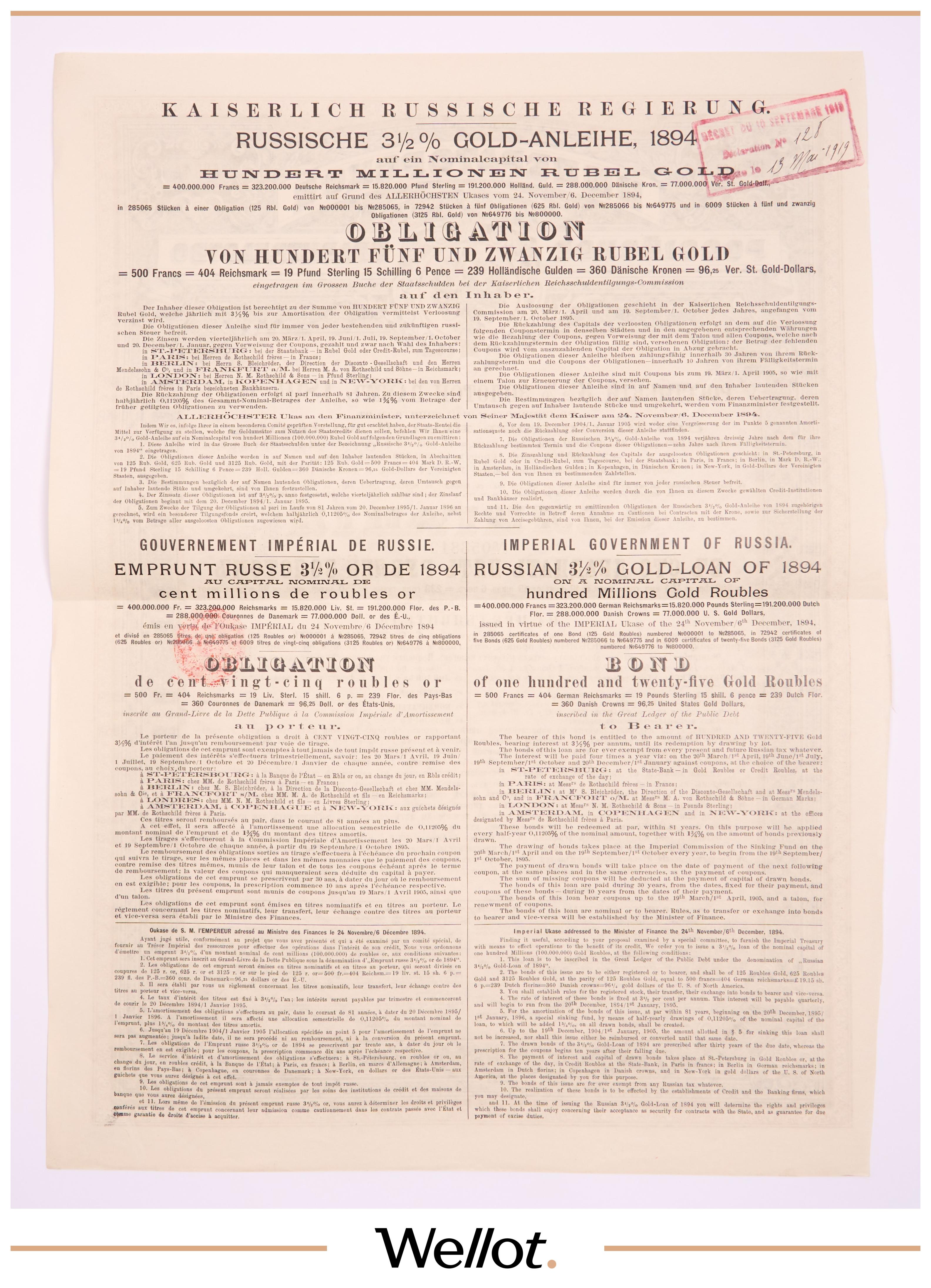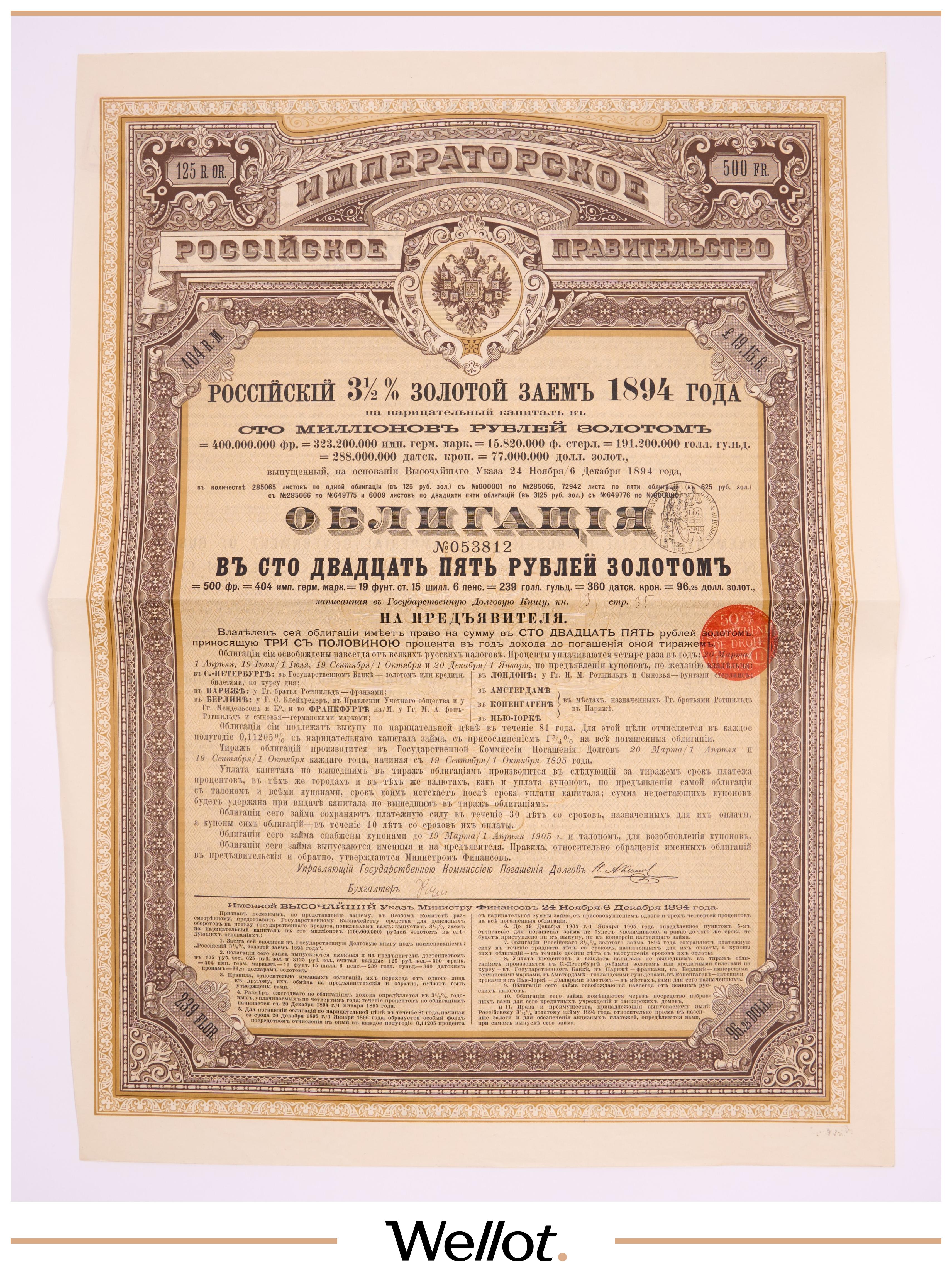 125 Рублей Золотом 1894 Российская Империя Первый 3,5% Золотой Заем
