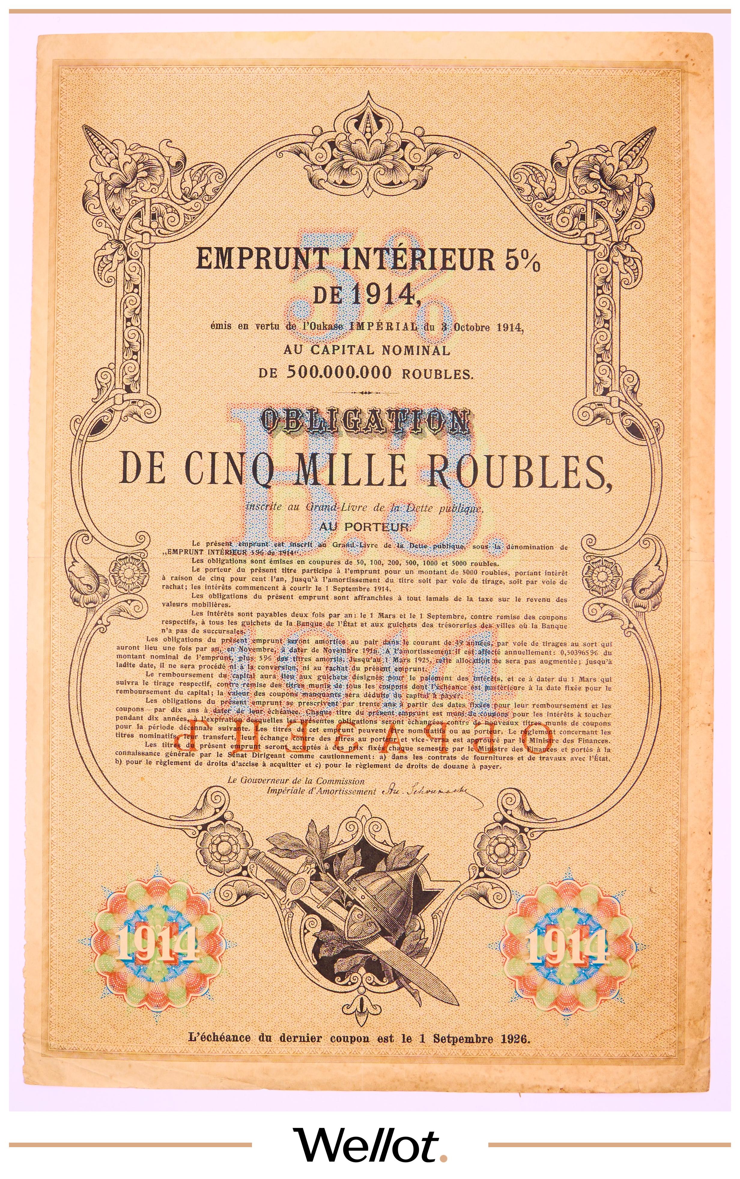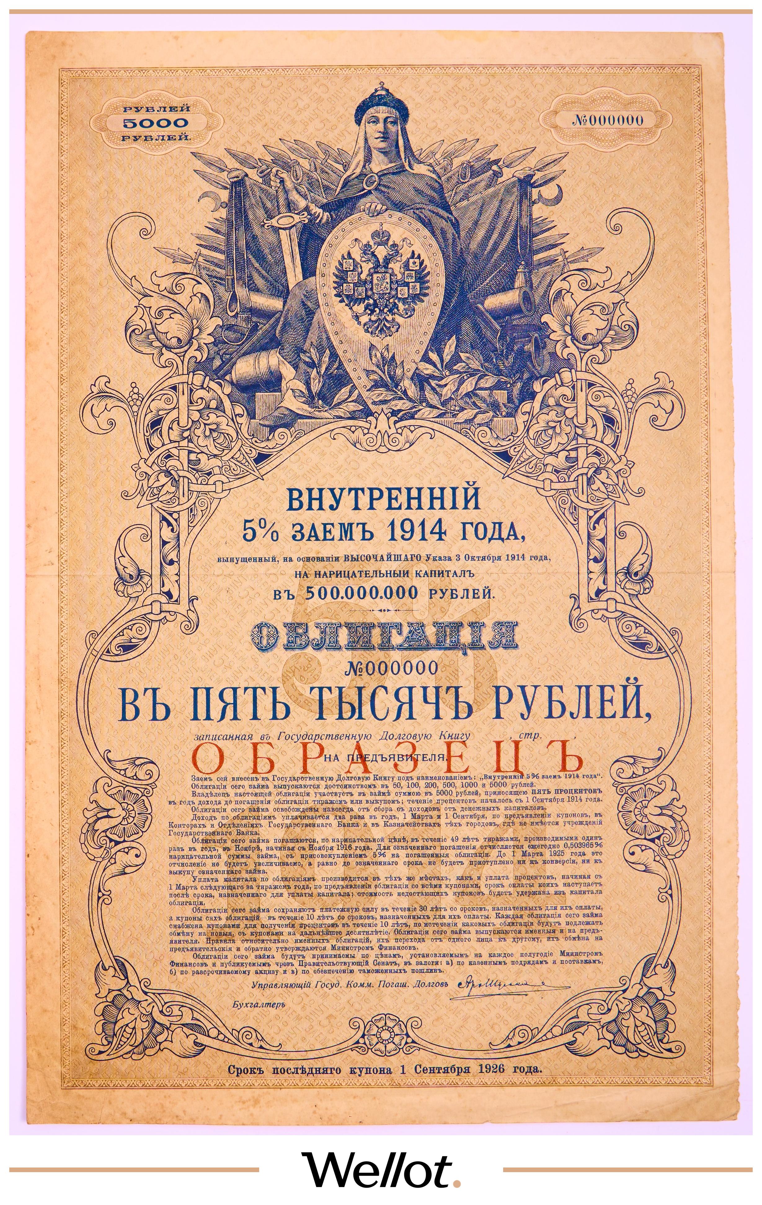 5000 Рублей 1914 Российская Империя Внутренний 5% Заем Образец