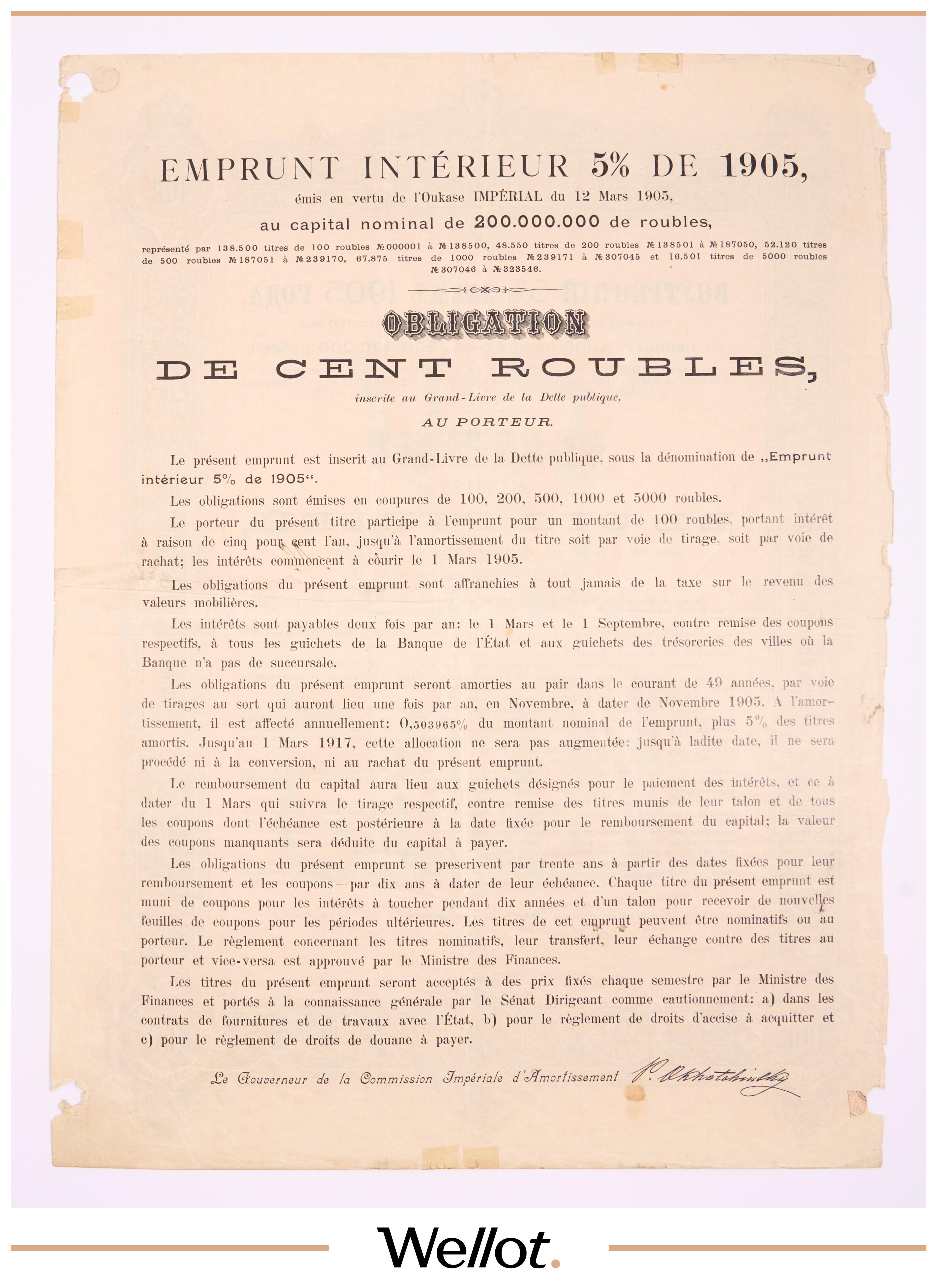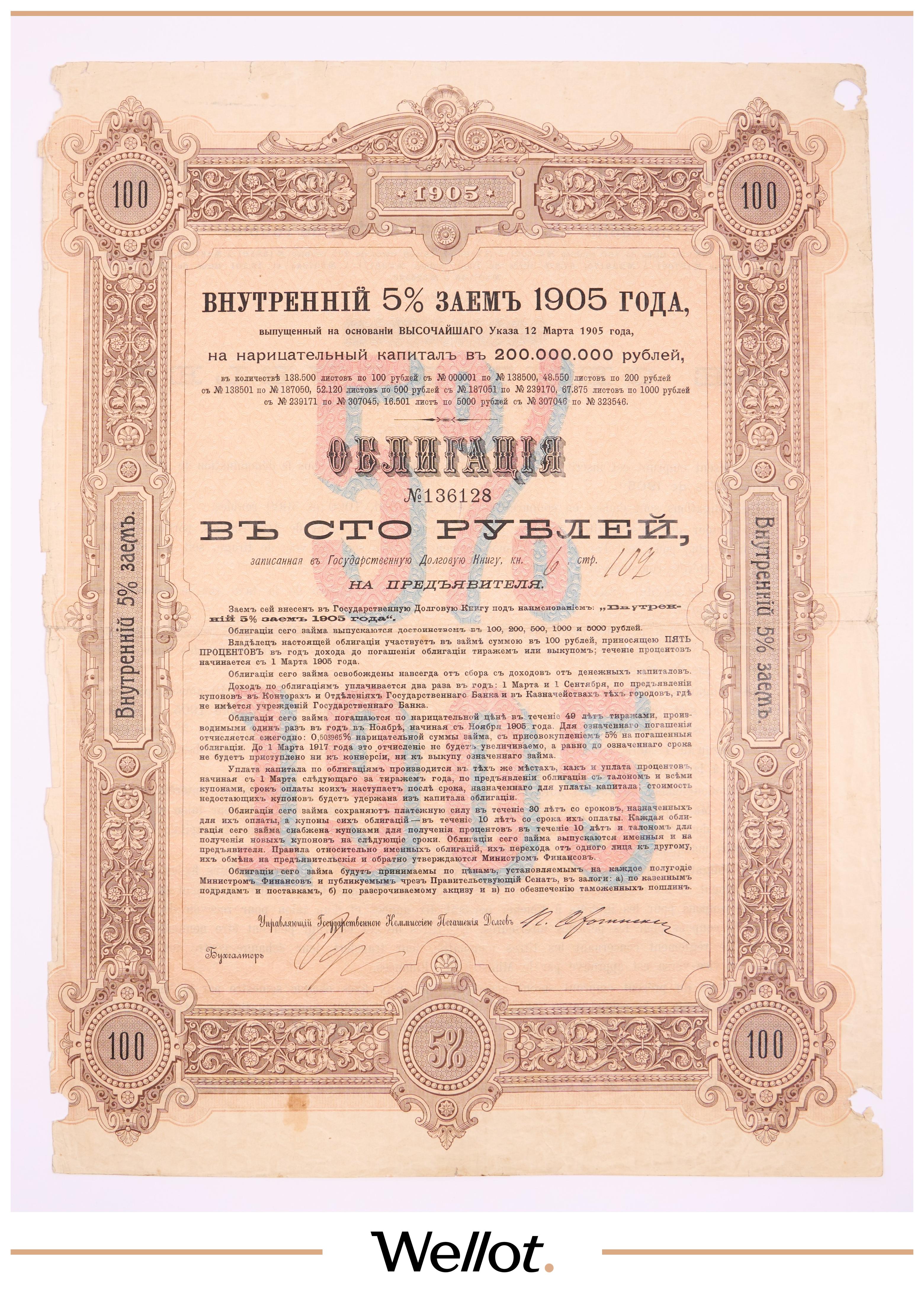 100 Рублей 1905 Российская Империя Внутренний 5% Заем