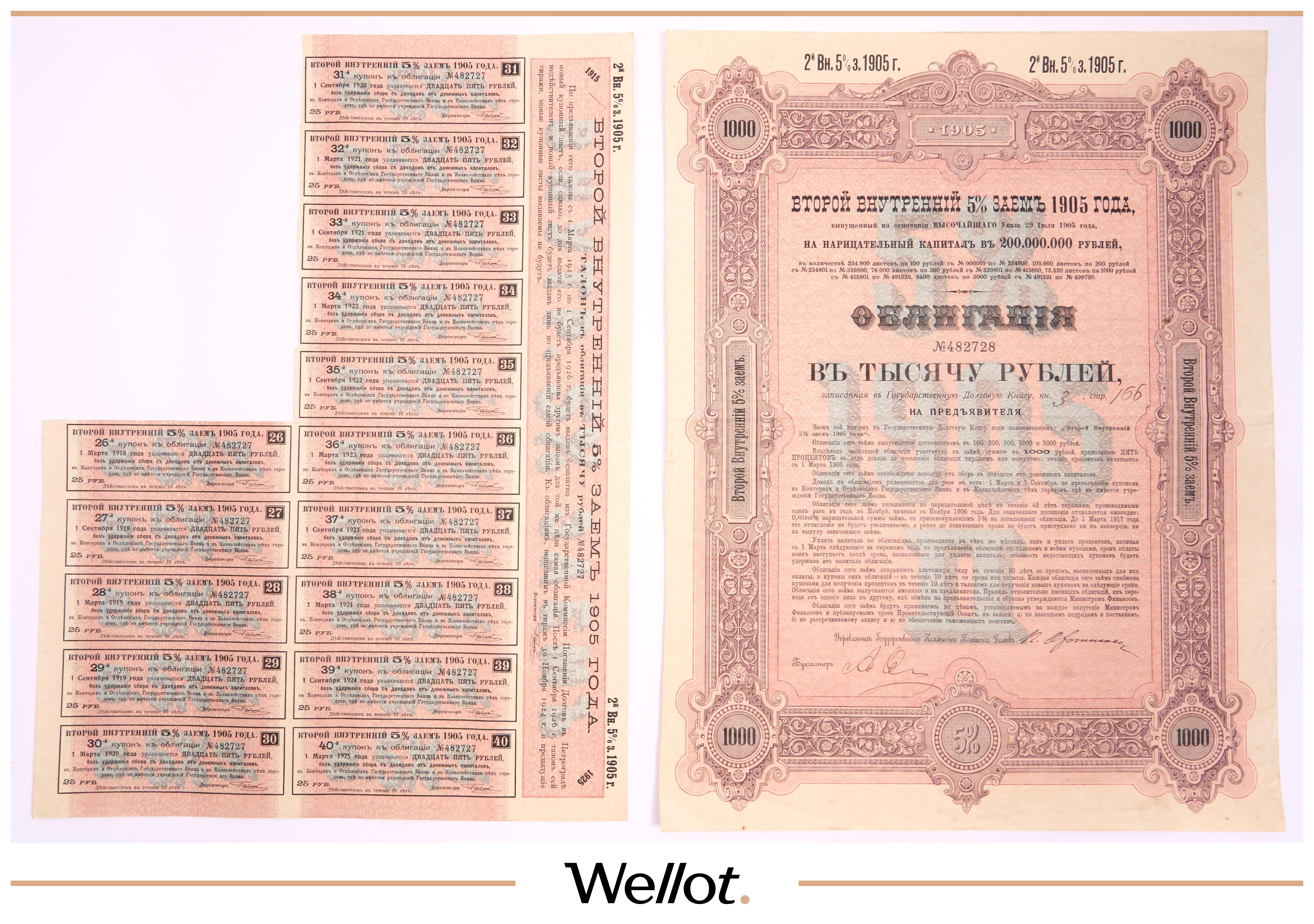 1000 Рублей 1905 Российская Империя Второй Внутренний 5% Заем