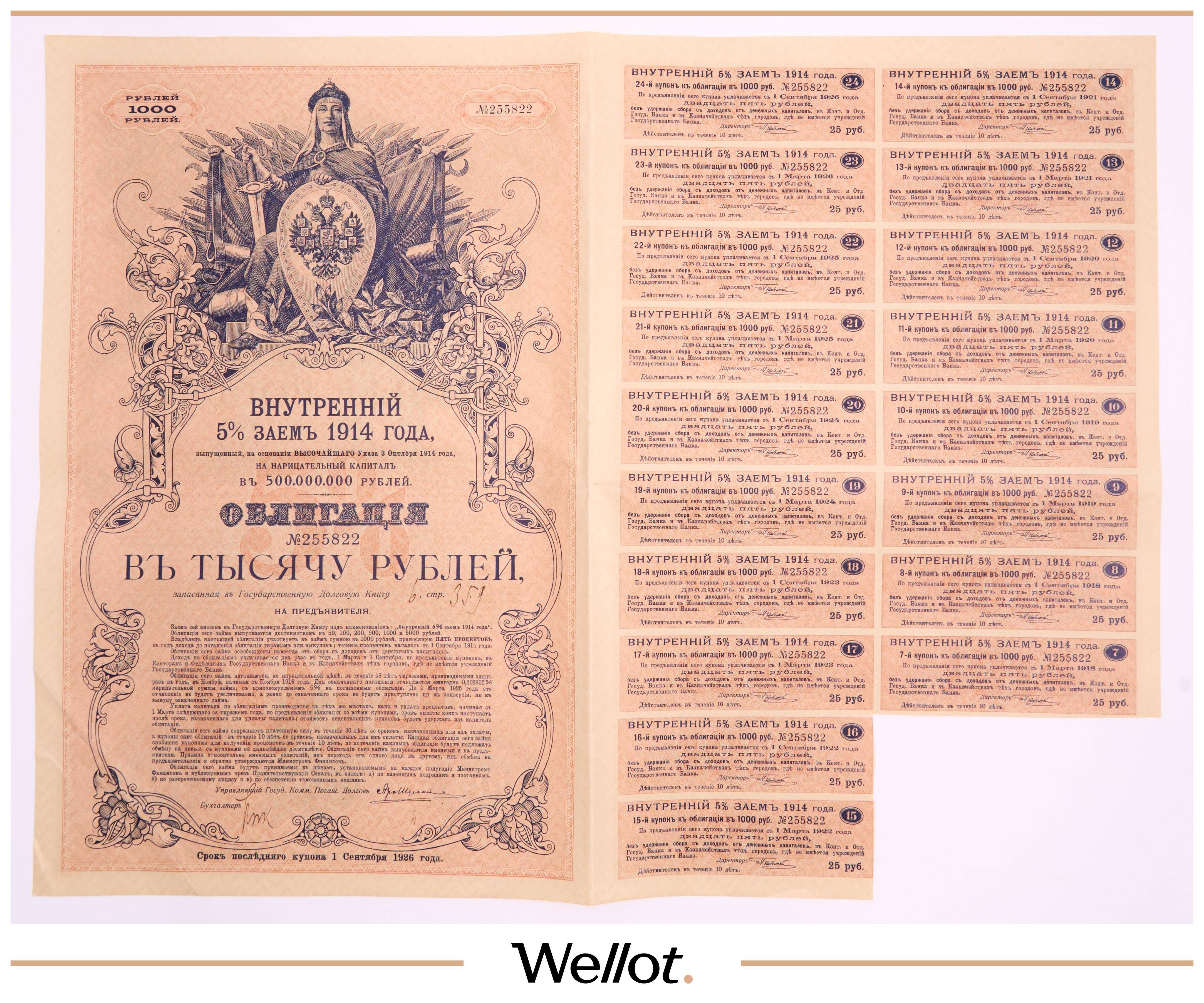 1000 Рублей 1914 Российская Империя Внутренний 5% Заем